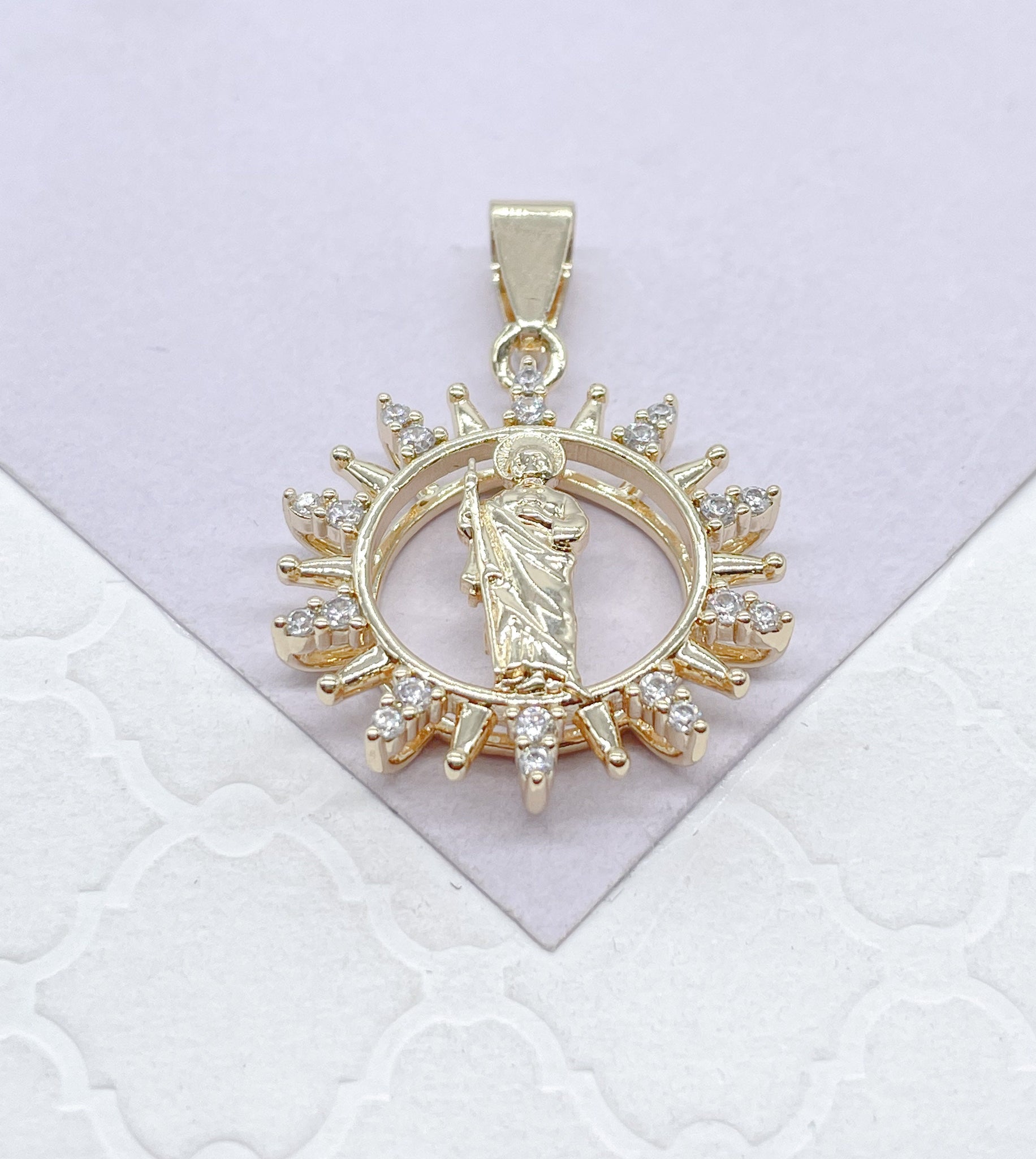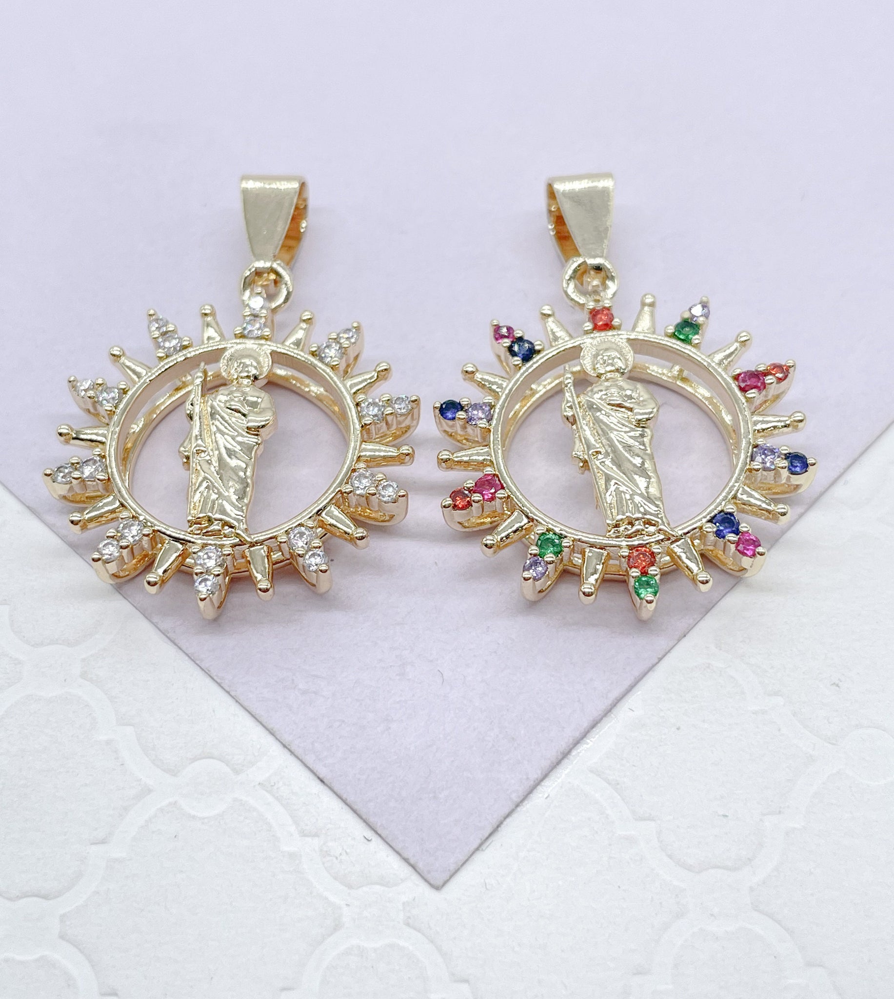 18k Colorful St Jude Pendant Crowned with Multi-Color and White CZ Stones