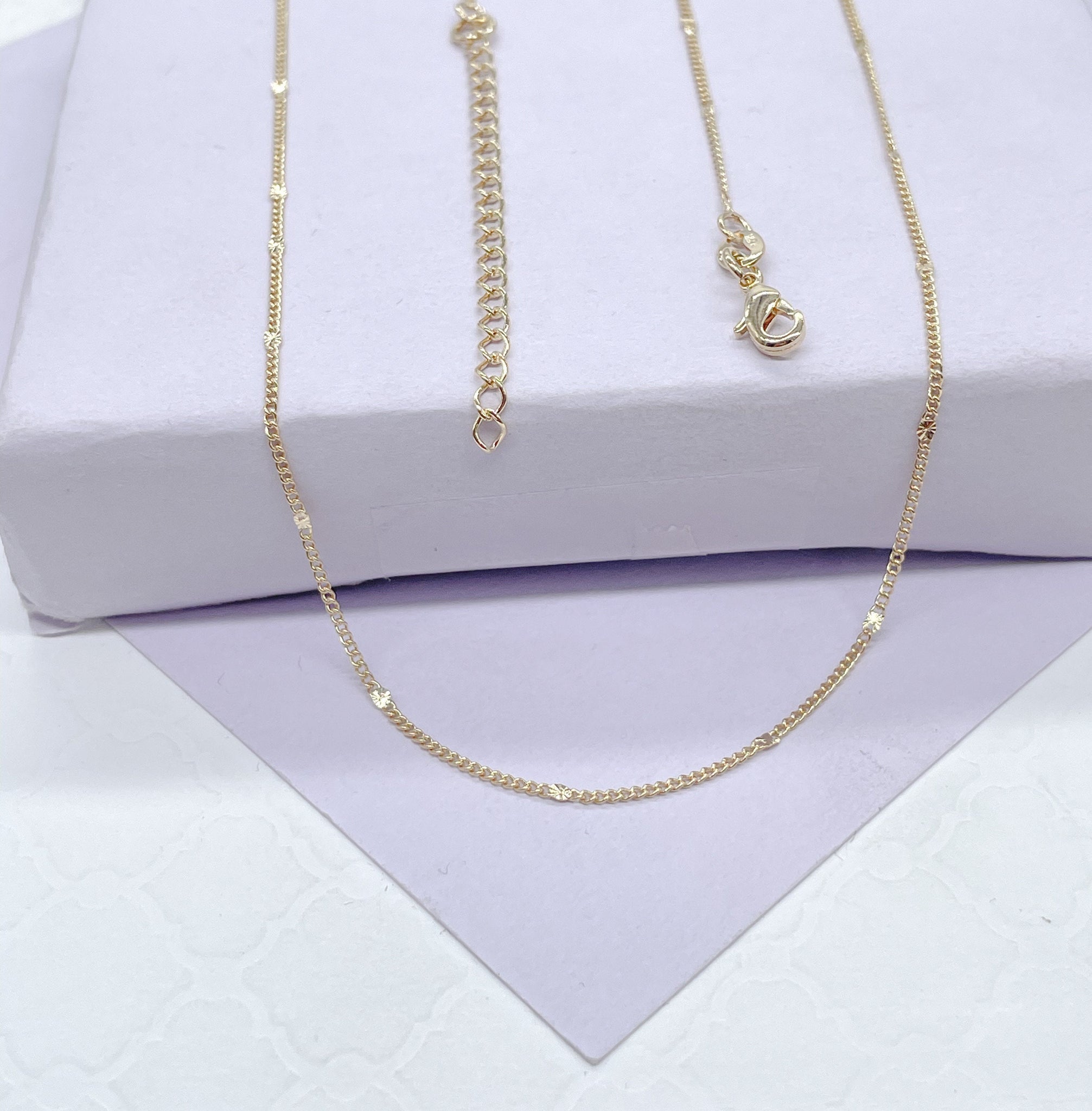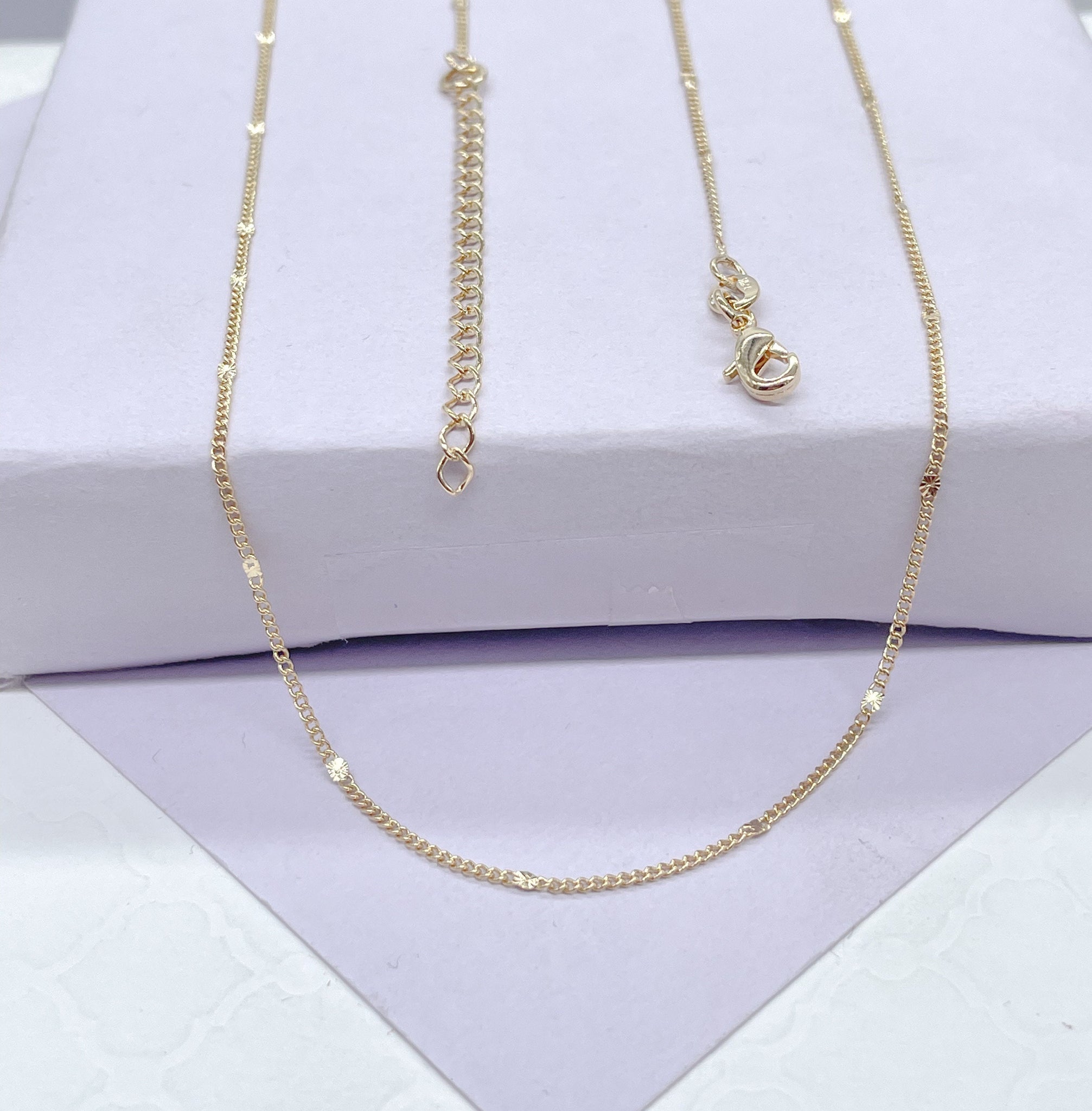 18k Gold Filled 16 Inch, 1mm Flat Sunburst-Stamped Sequin Satellite Curb Chain Necklace For Wholesale, Dainty Jewlery, Layering Necklace,