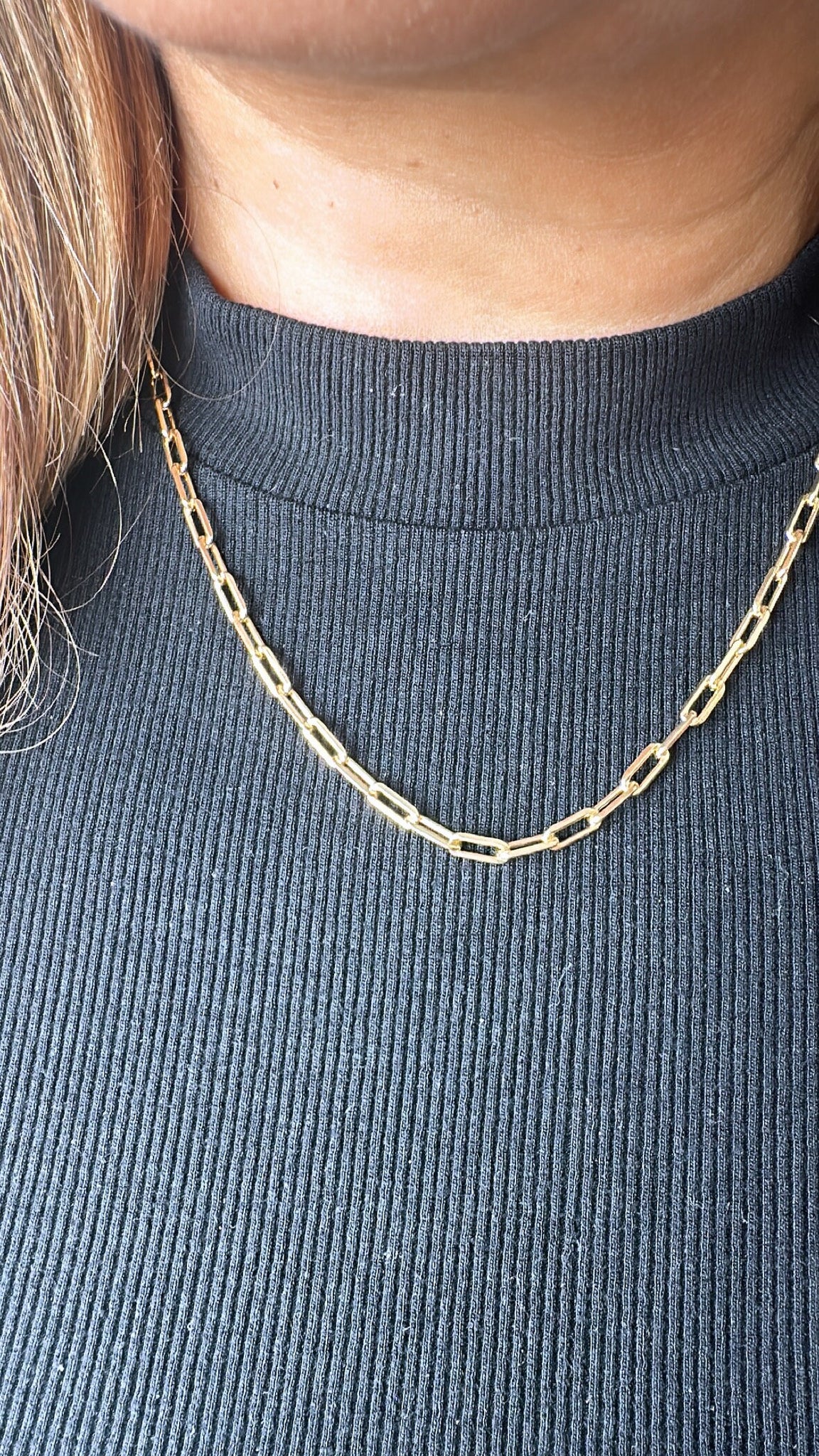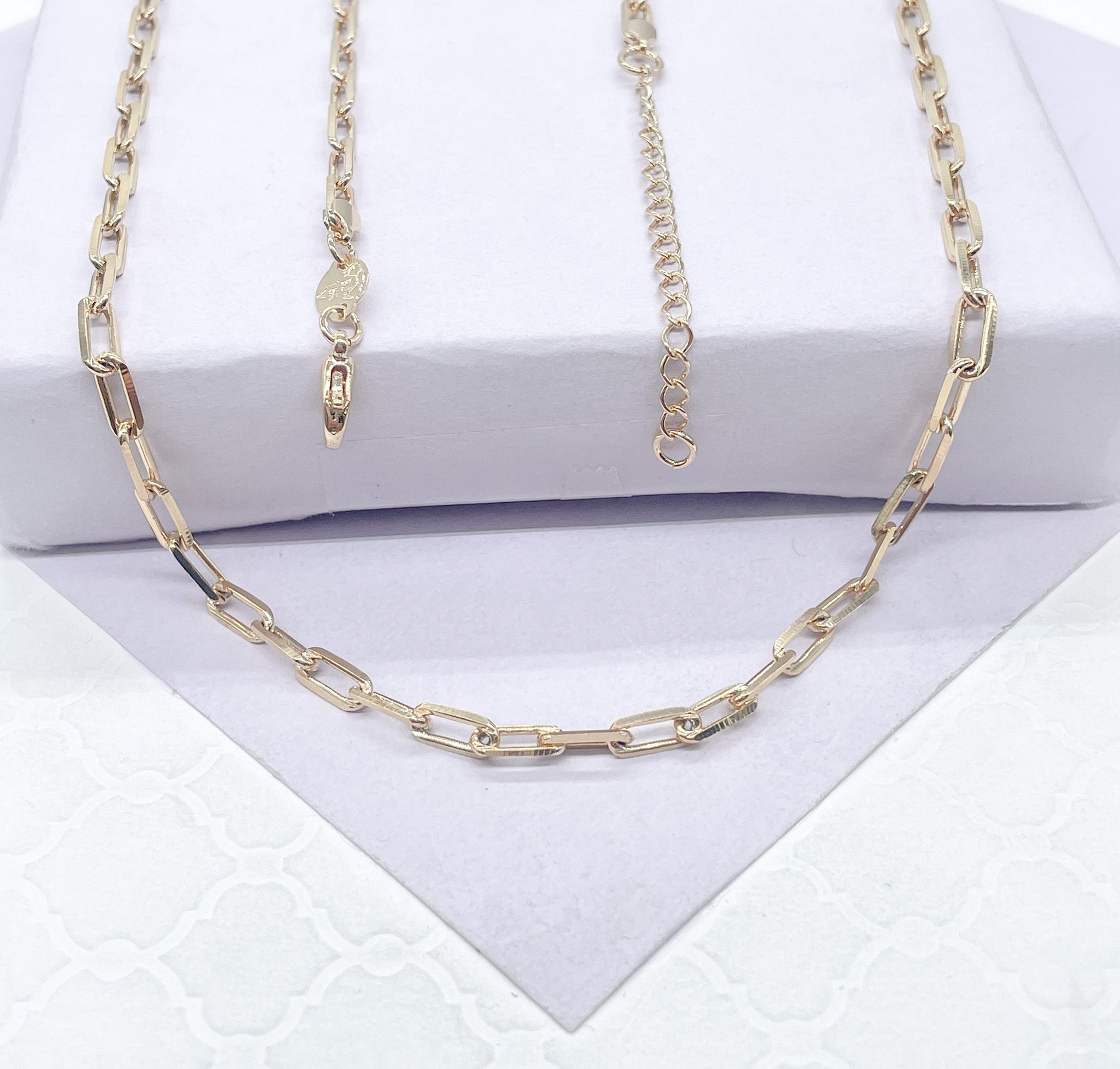 18k Gold Filled 16 Inch 3.5mm Dainty Paper Clip Chain Necklace for Wholesale Jewelry Making Supplies for Designers