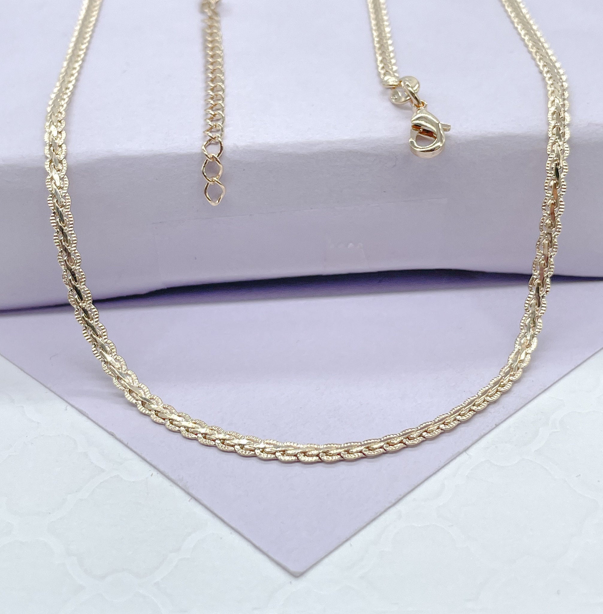 18k Gold Filled 2mm 16 Inch Flat Braid Snake Textured Chain, Necklace For Wholesale, Gift Ideas, Dainty Jewlery, Layering Necklace