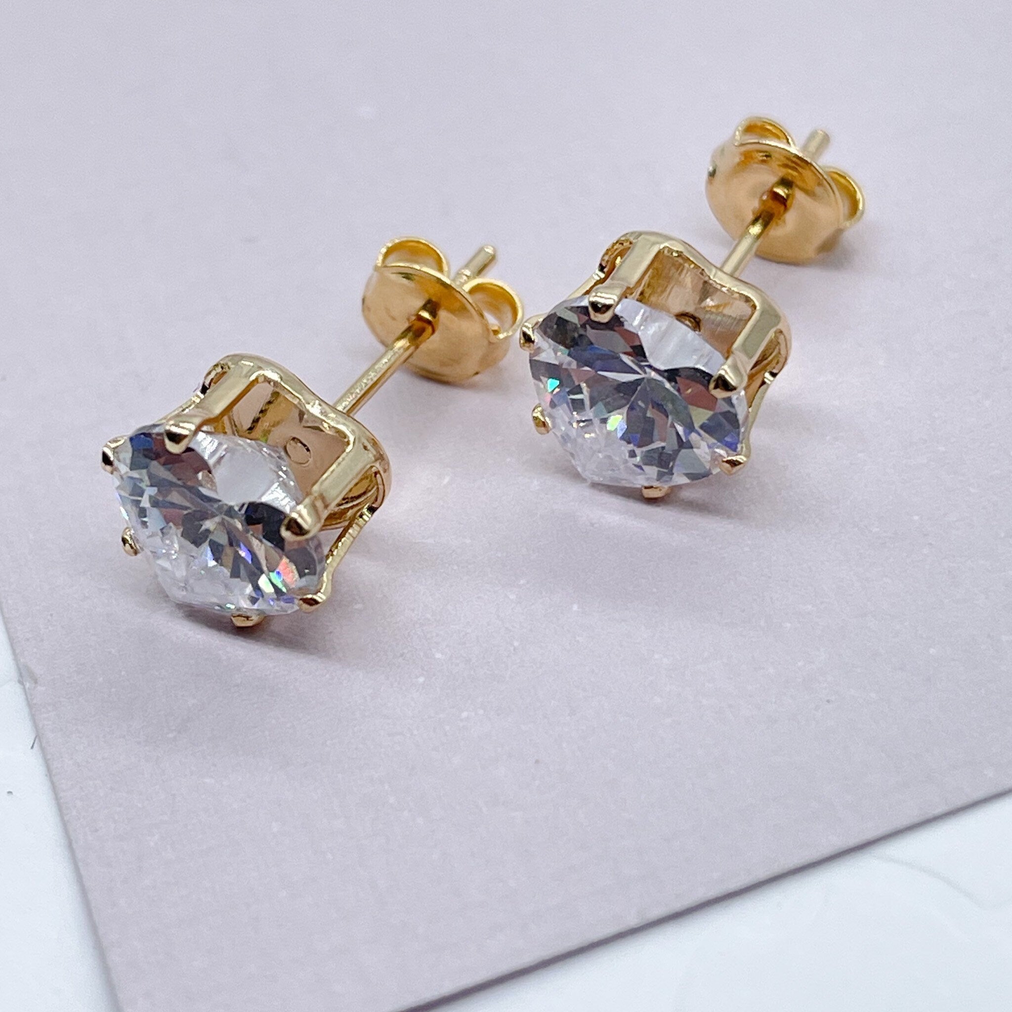 18k Gold Filled 8mm Cubic Zirconia Heart Stud Earring