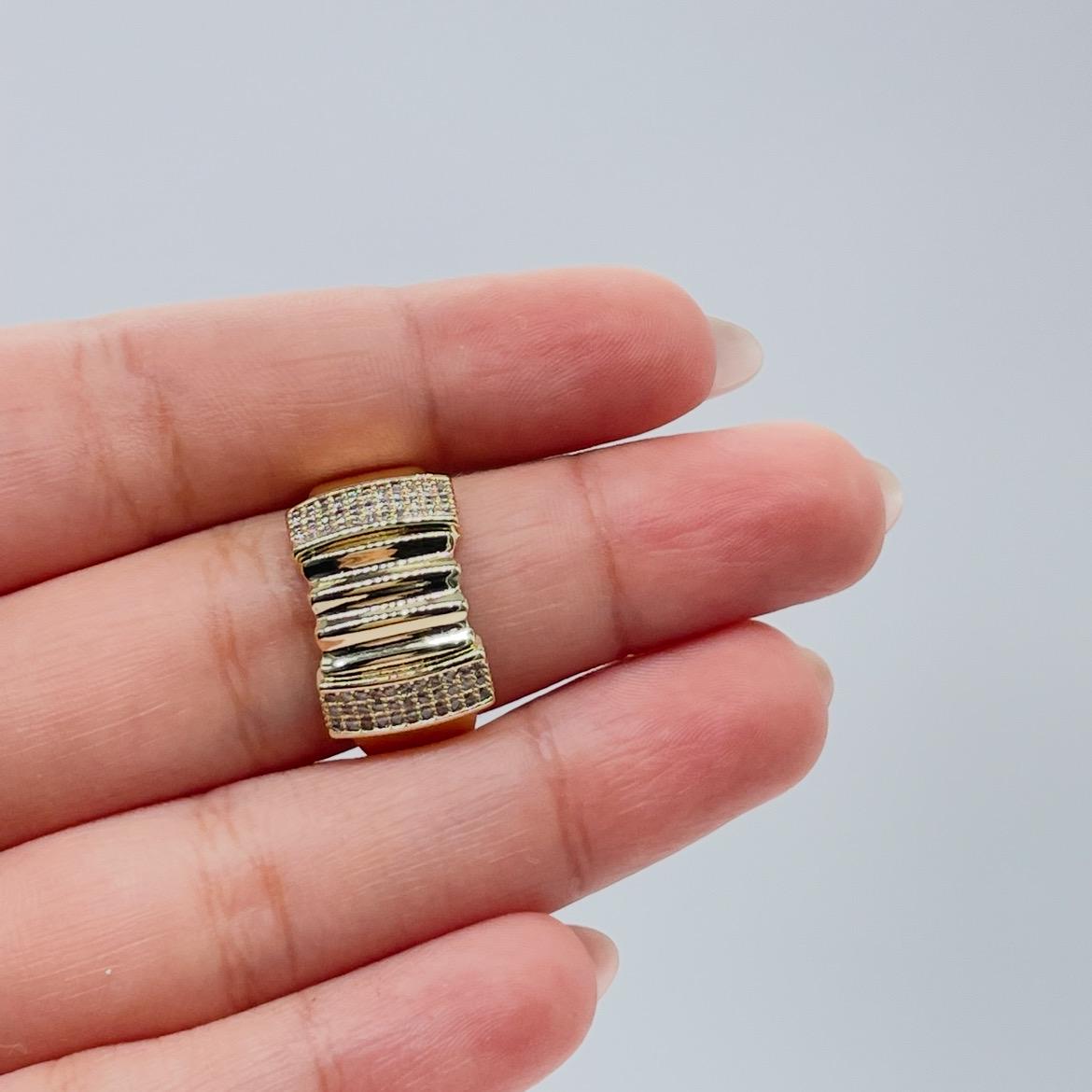 18k Gold Filled Adjustable Ring with Rowed Pattern and Round Pave CZ