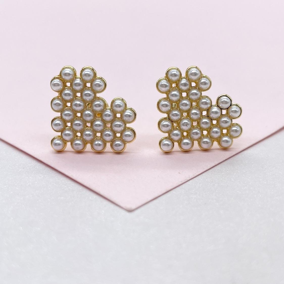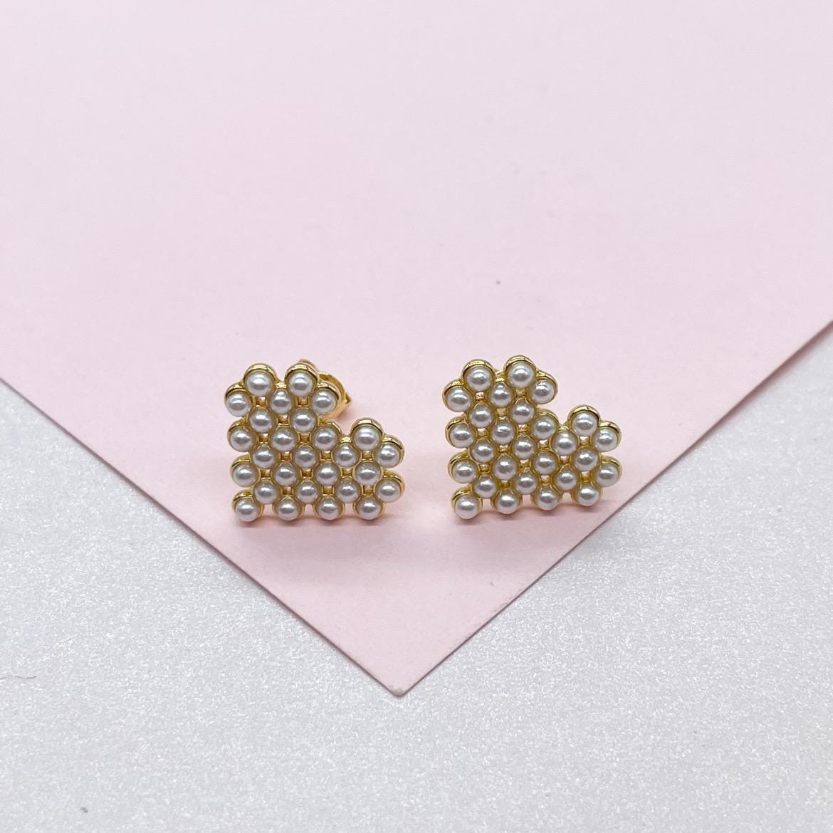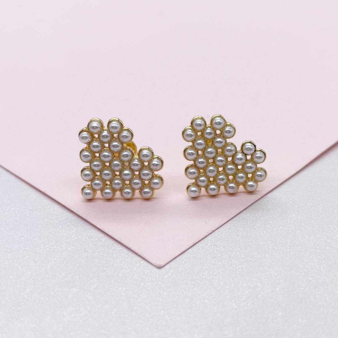 18k Gold Filled Bead Heart Shaped Stud Earrings