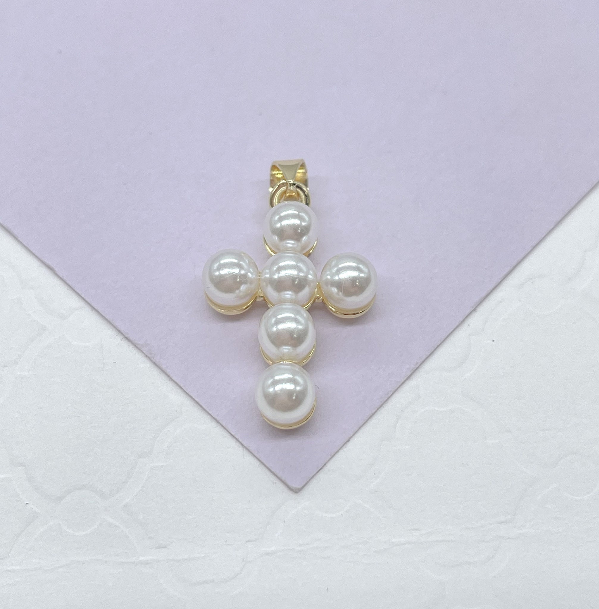 18k Gold Filled Beaded Faux Pearl Cross, Available In 2 Sizes
