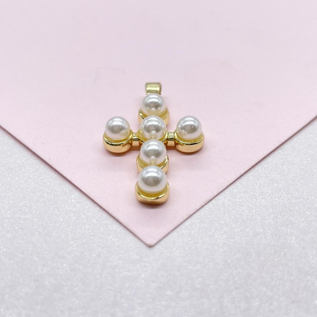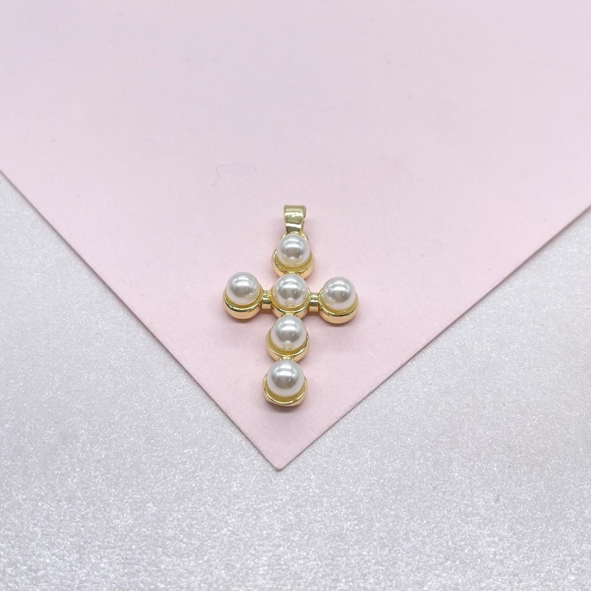 18k Gold Filled Faux all around Pearl Style Cross Pendant