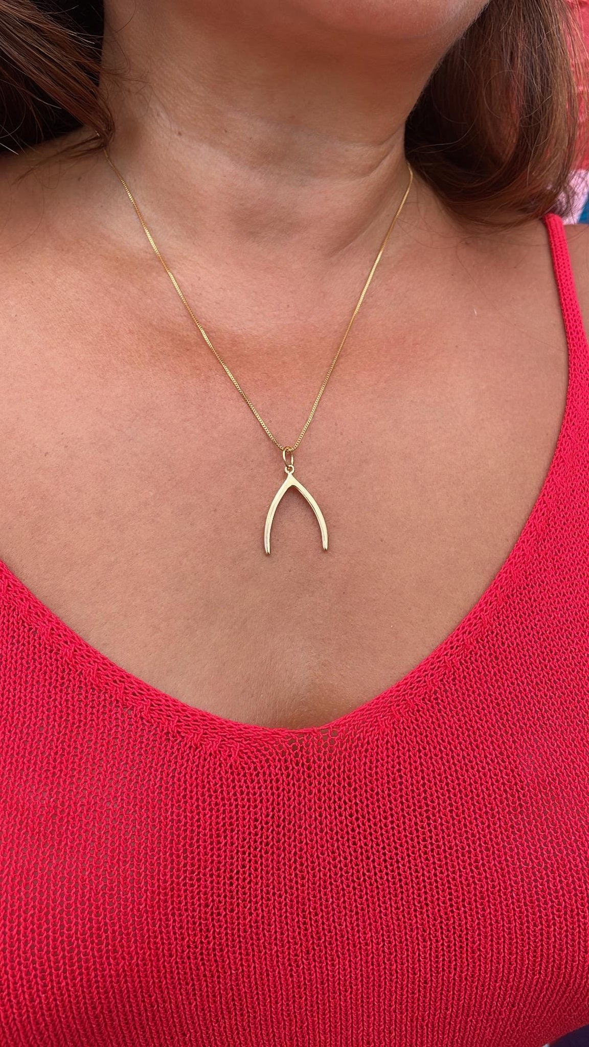 18k Gold Filled Box Chain Necklace With Minimalistic Luck Bone Pendant Design, Wishbone