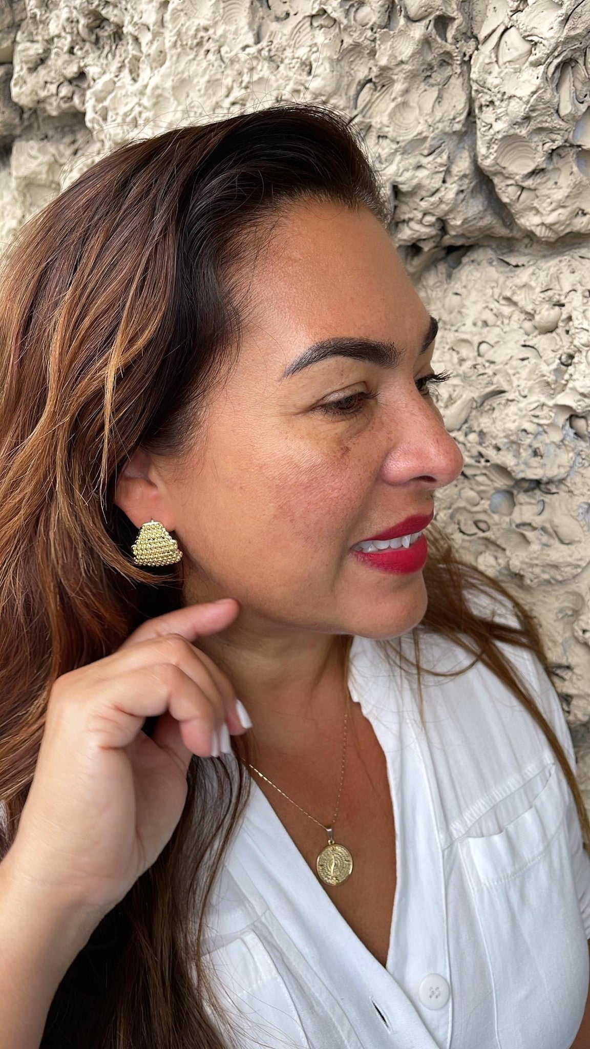 • Load image into Gallery viewer, 18k Gold Filled Chunky Puffy C-Hoops with Baby Gold Beads Engraved