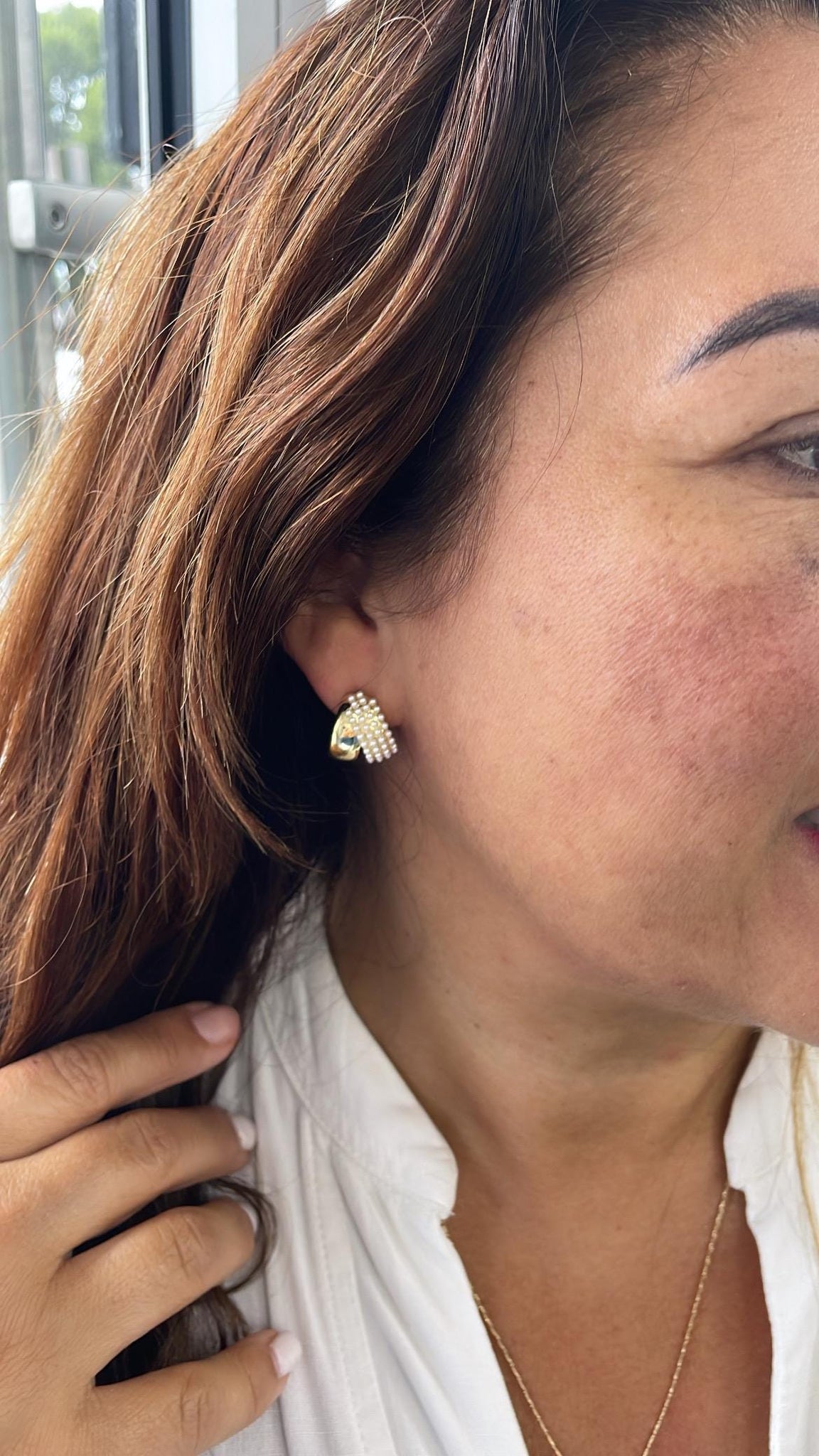 18k Gold Filled Chunky Puffy C-Hoops with Baby Pearls Engraved