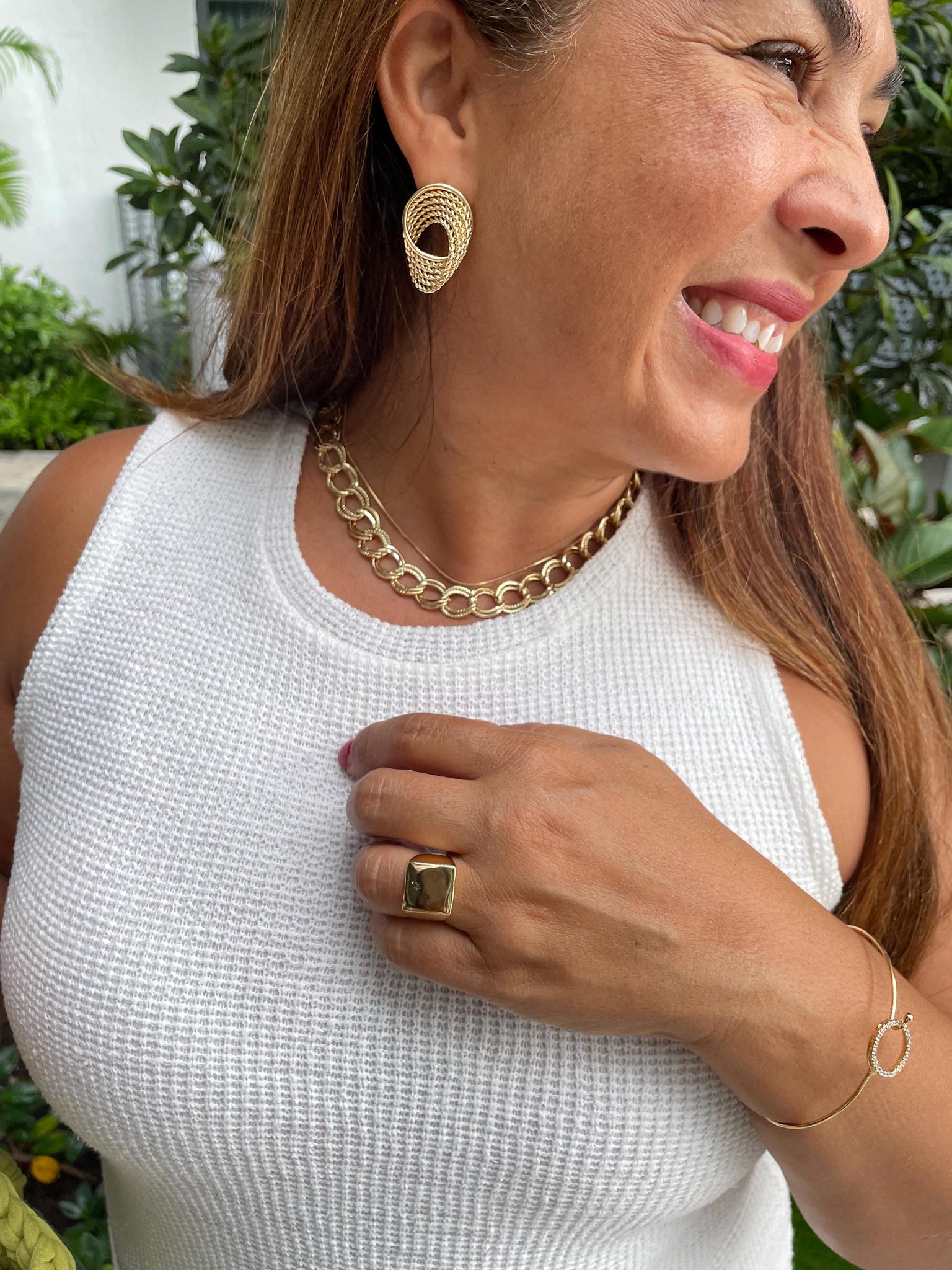 18k Gold filled Chunky Sqaure Signet Ring. Designed to create the most exquisite and luxurious stack, this ring adds a touch of glamour to any outfit. Elevate your look and make a statement with our stunning eternity band.18k Gold filled Chunky Sqaure Signet Ring