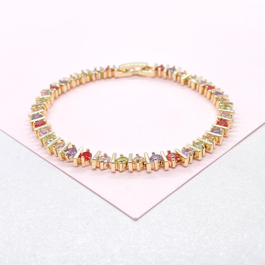 18k Gold Filled Colorful Round Stone Bracelet Patterned with Gold Bars