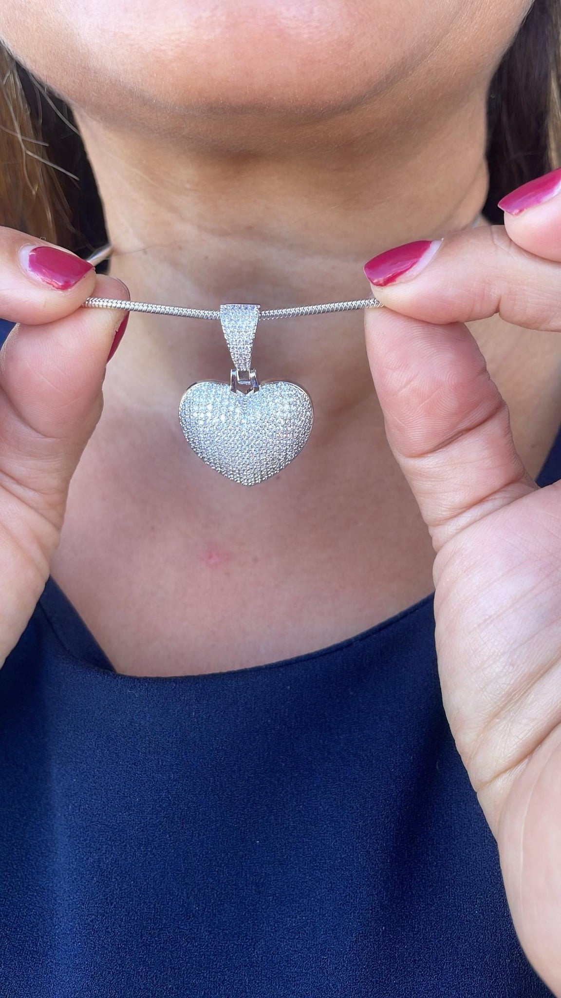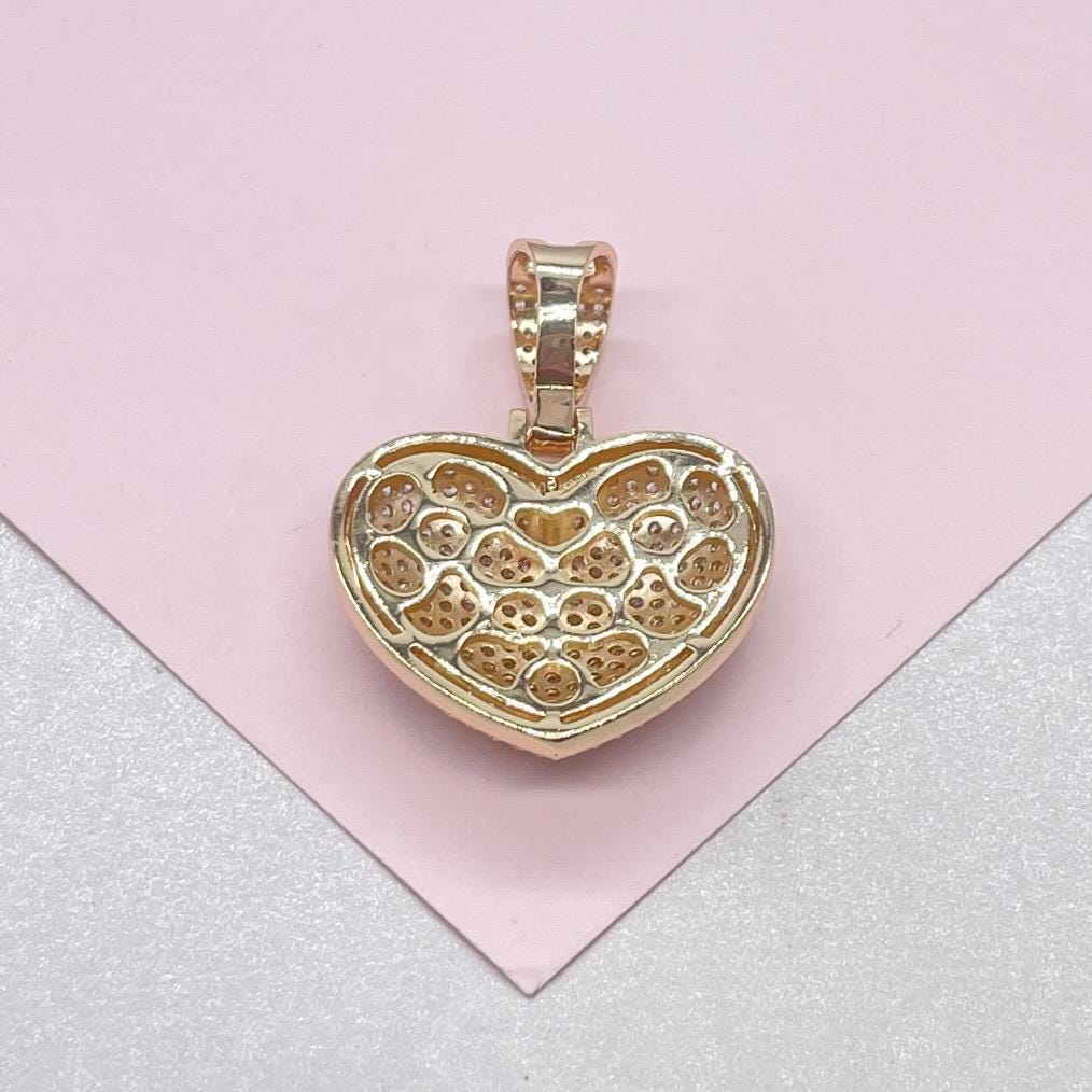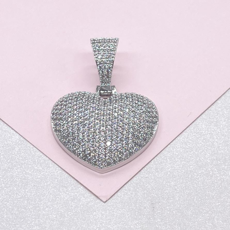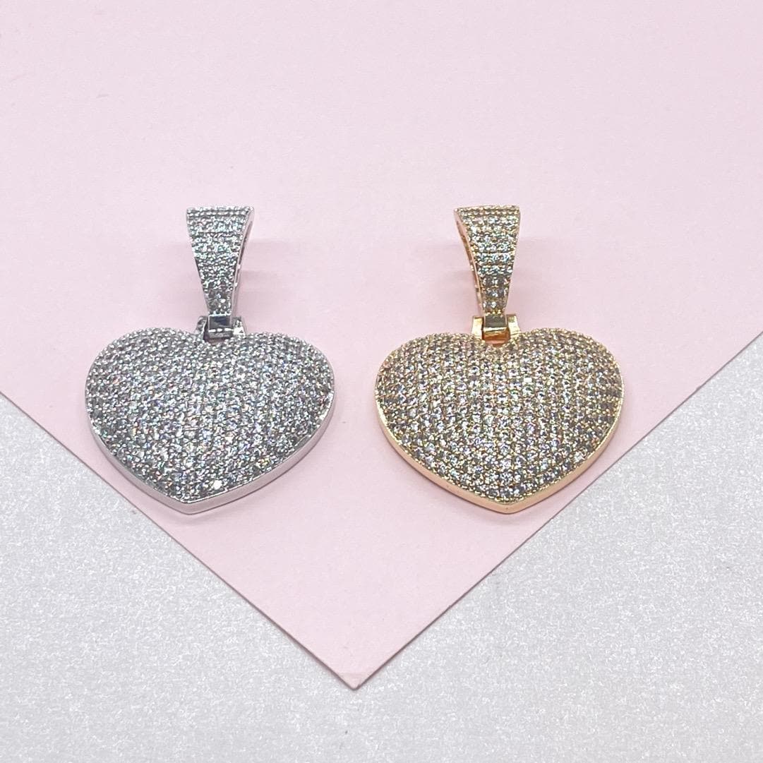 18k Gold Filled CZ Pave Large Puffy Heart Charm Pendant, does not include chain.