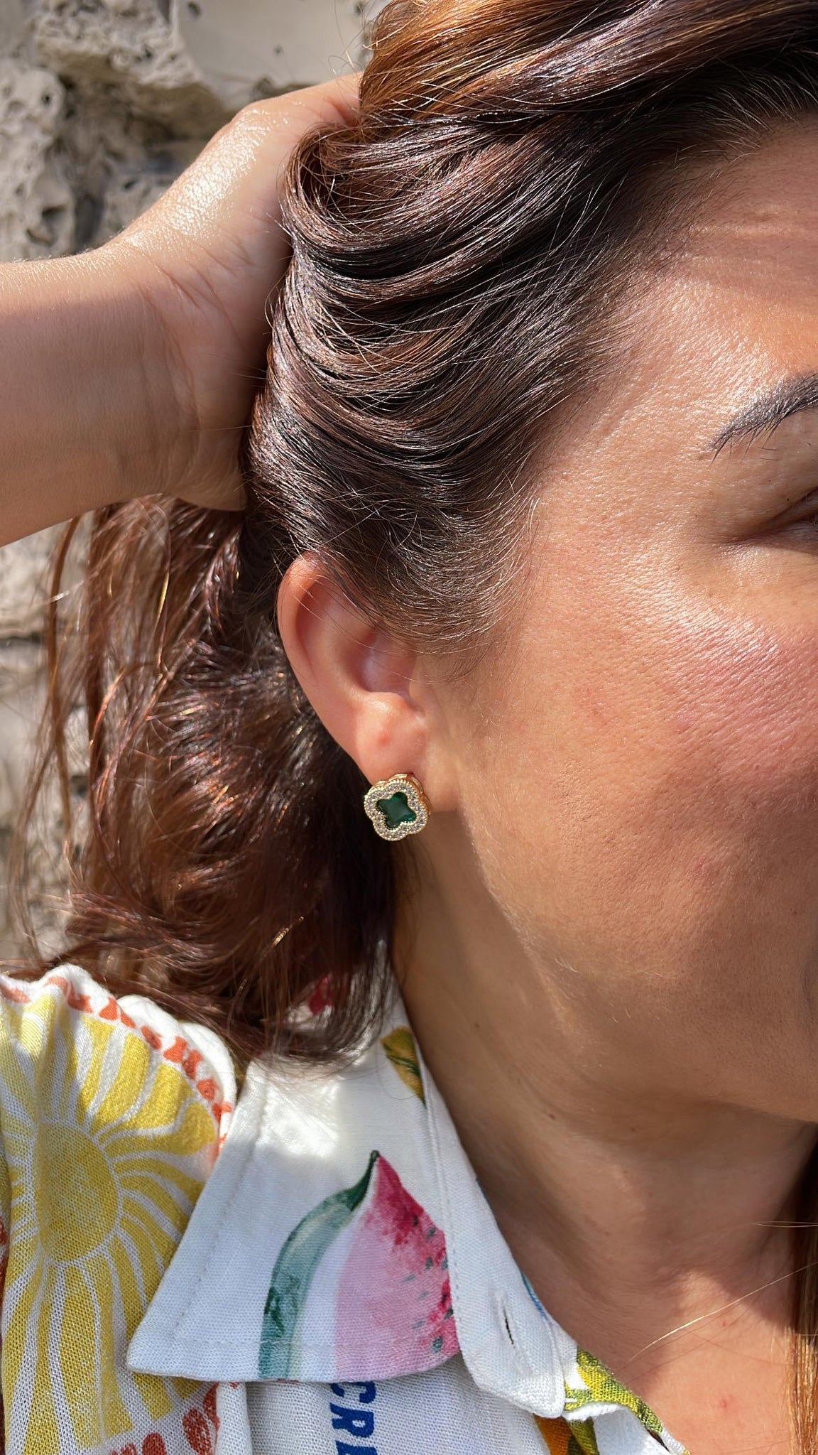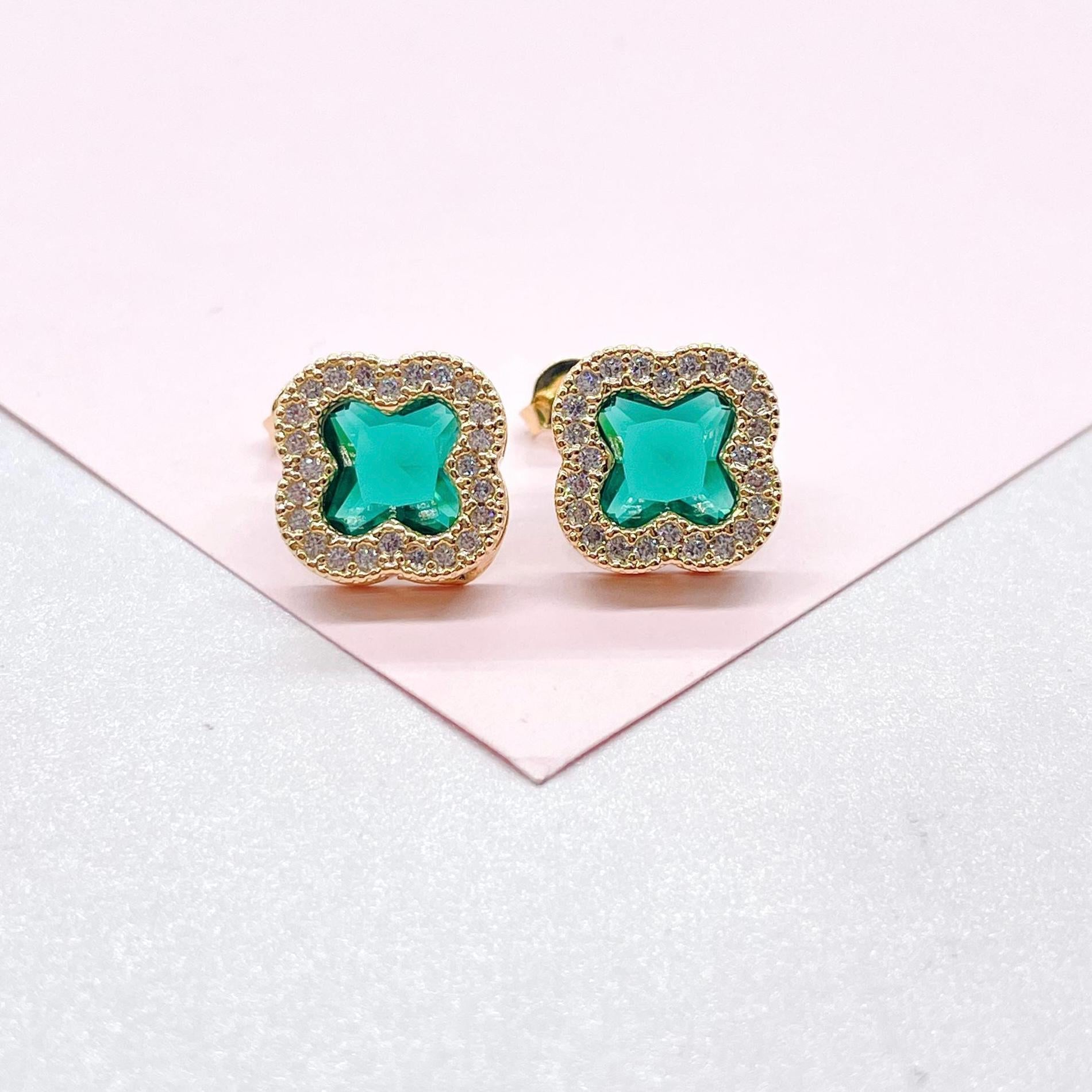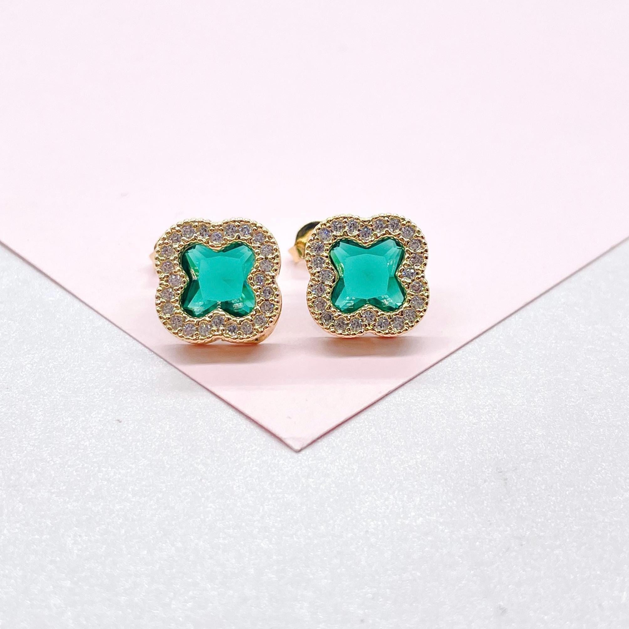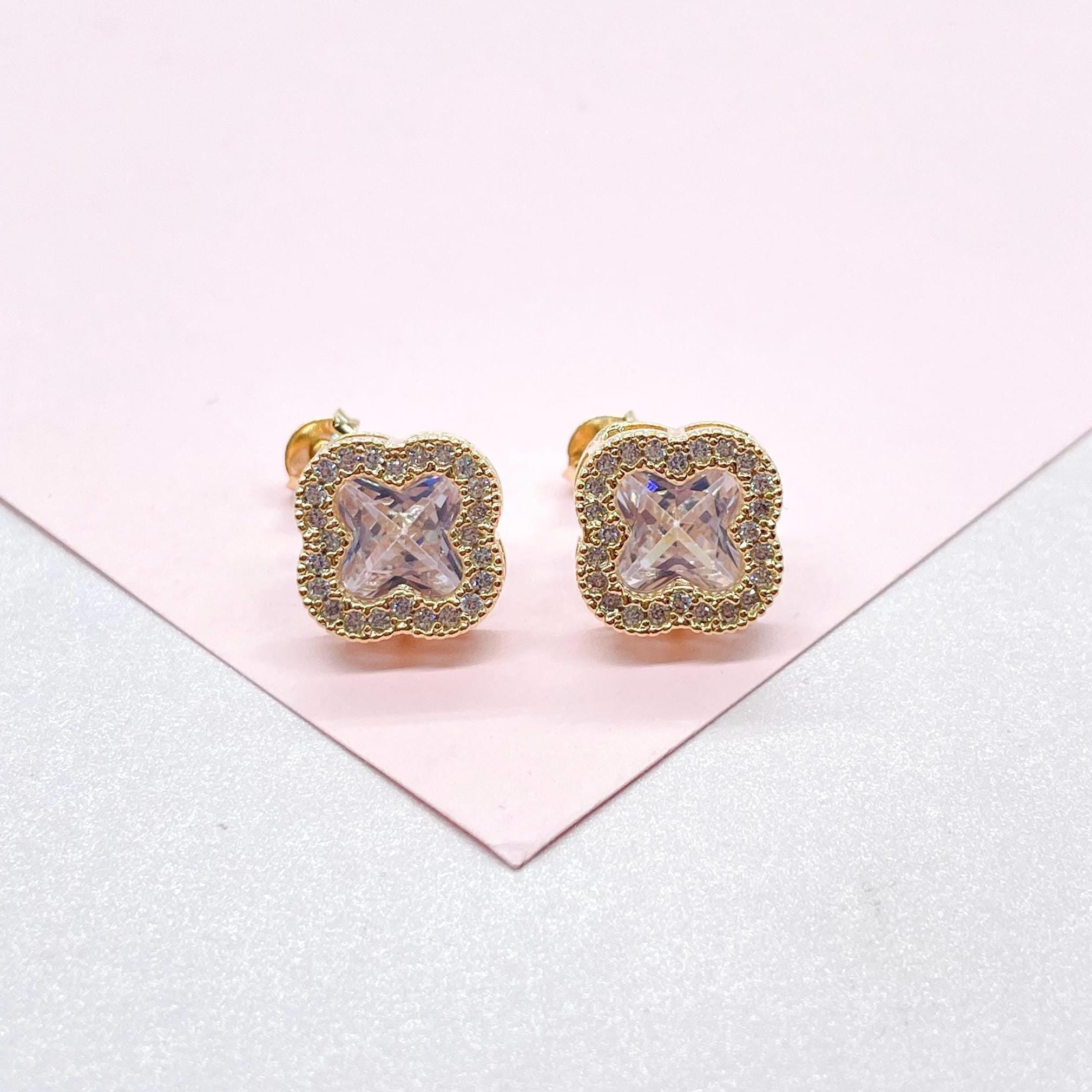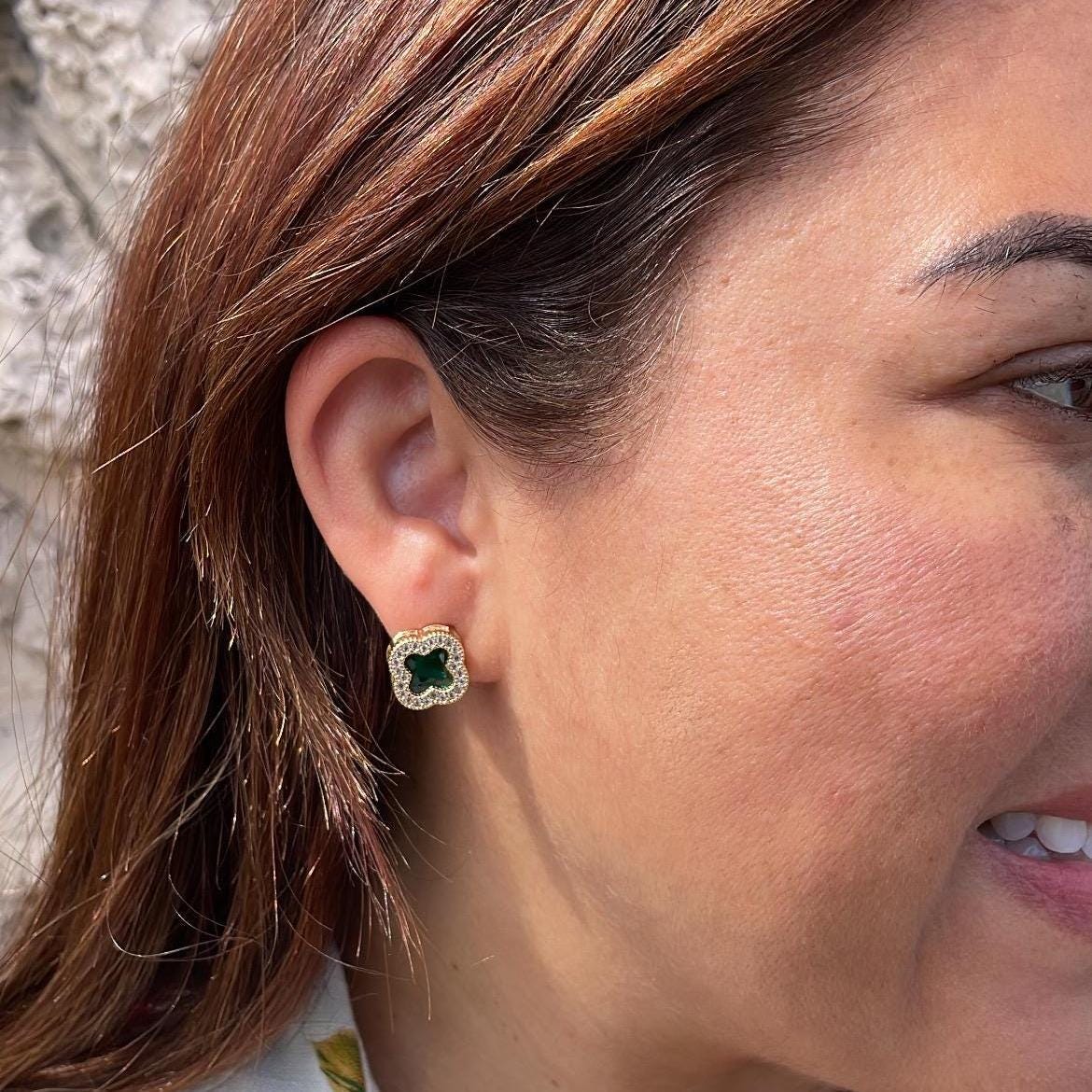 18k Gold Filled CZ Clover Stud Earrings Available in 2 Colors