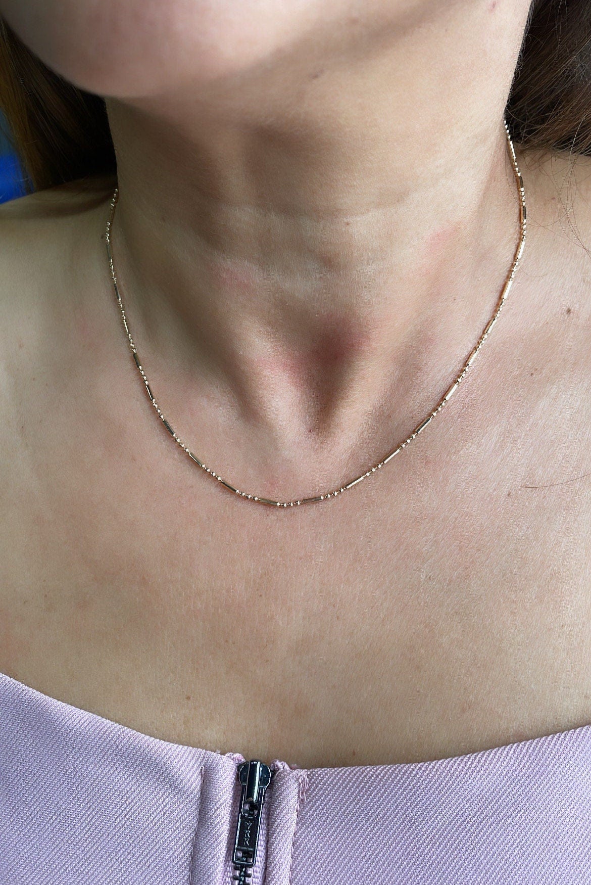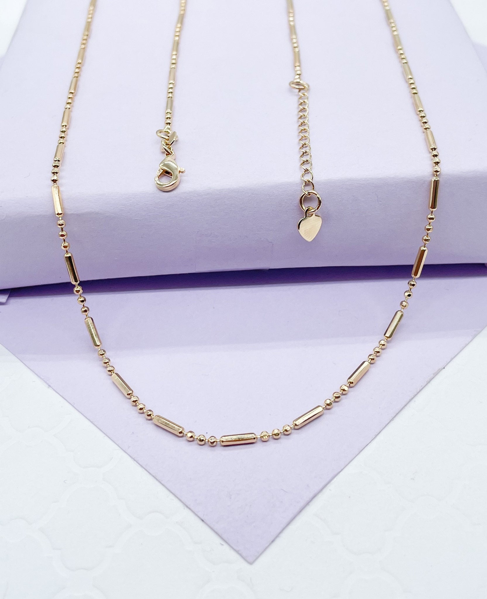 18k Gold Filled Dainty 3-Bead patterned Dash Dot Chain