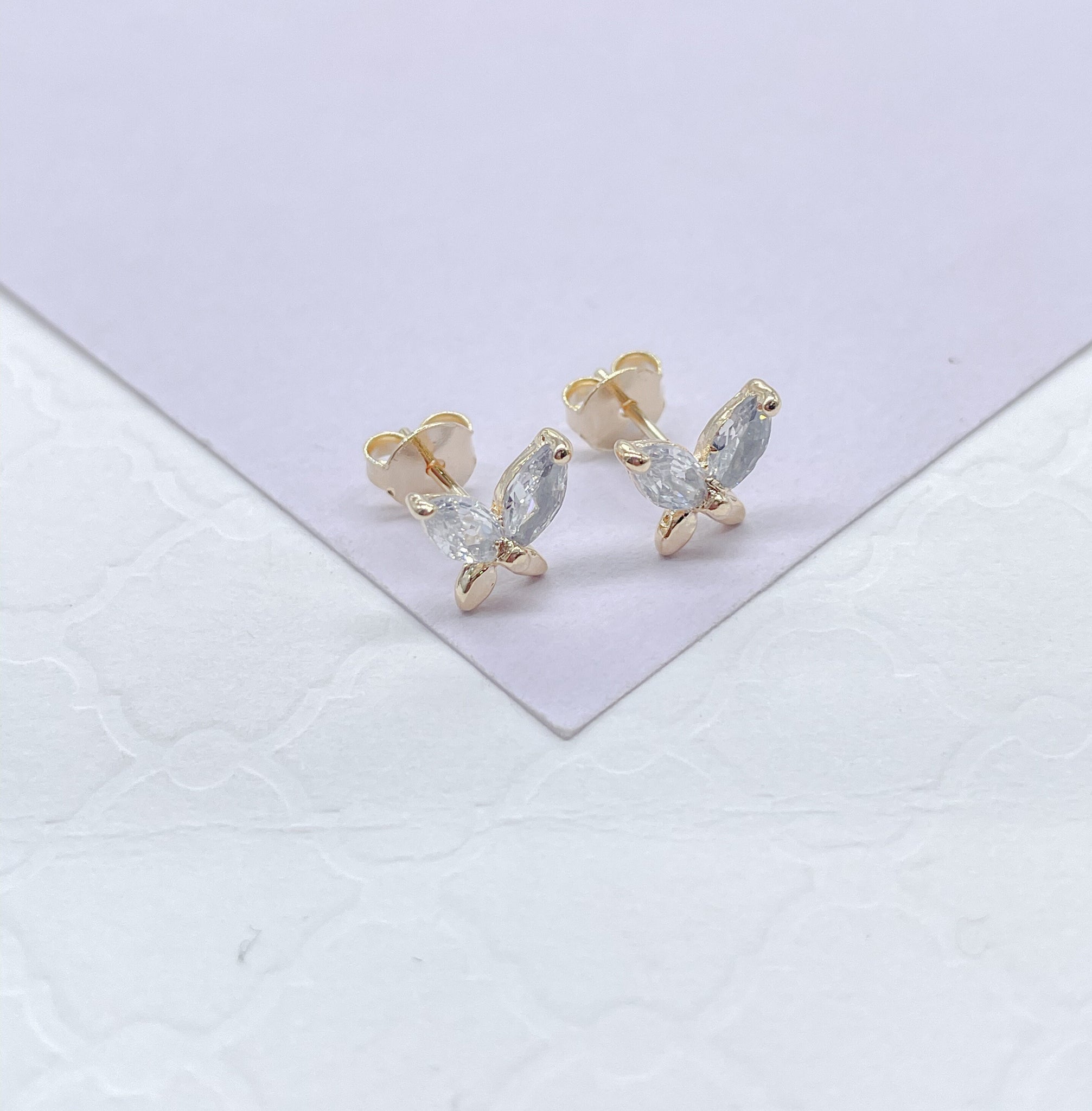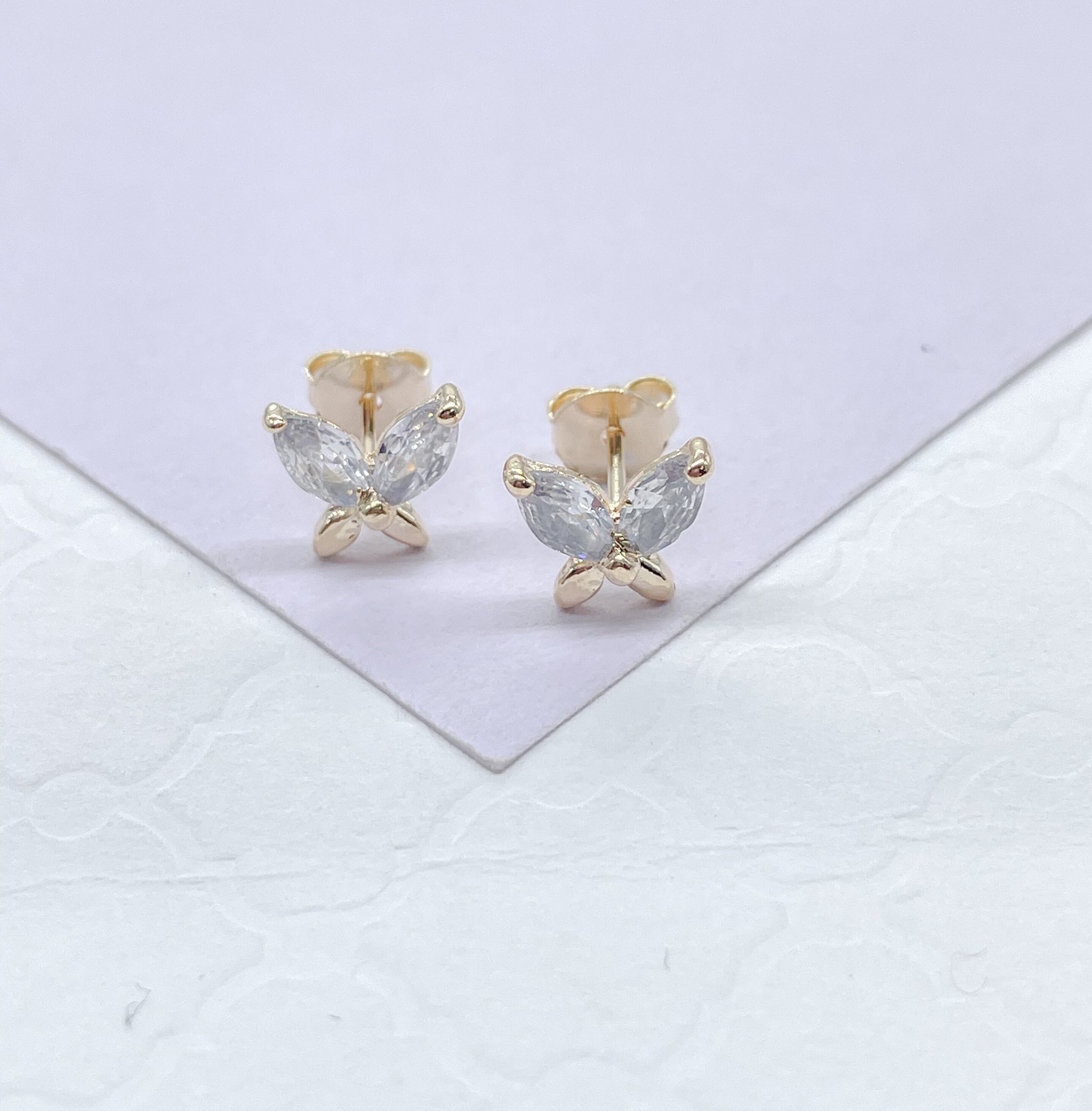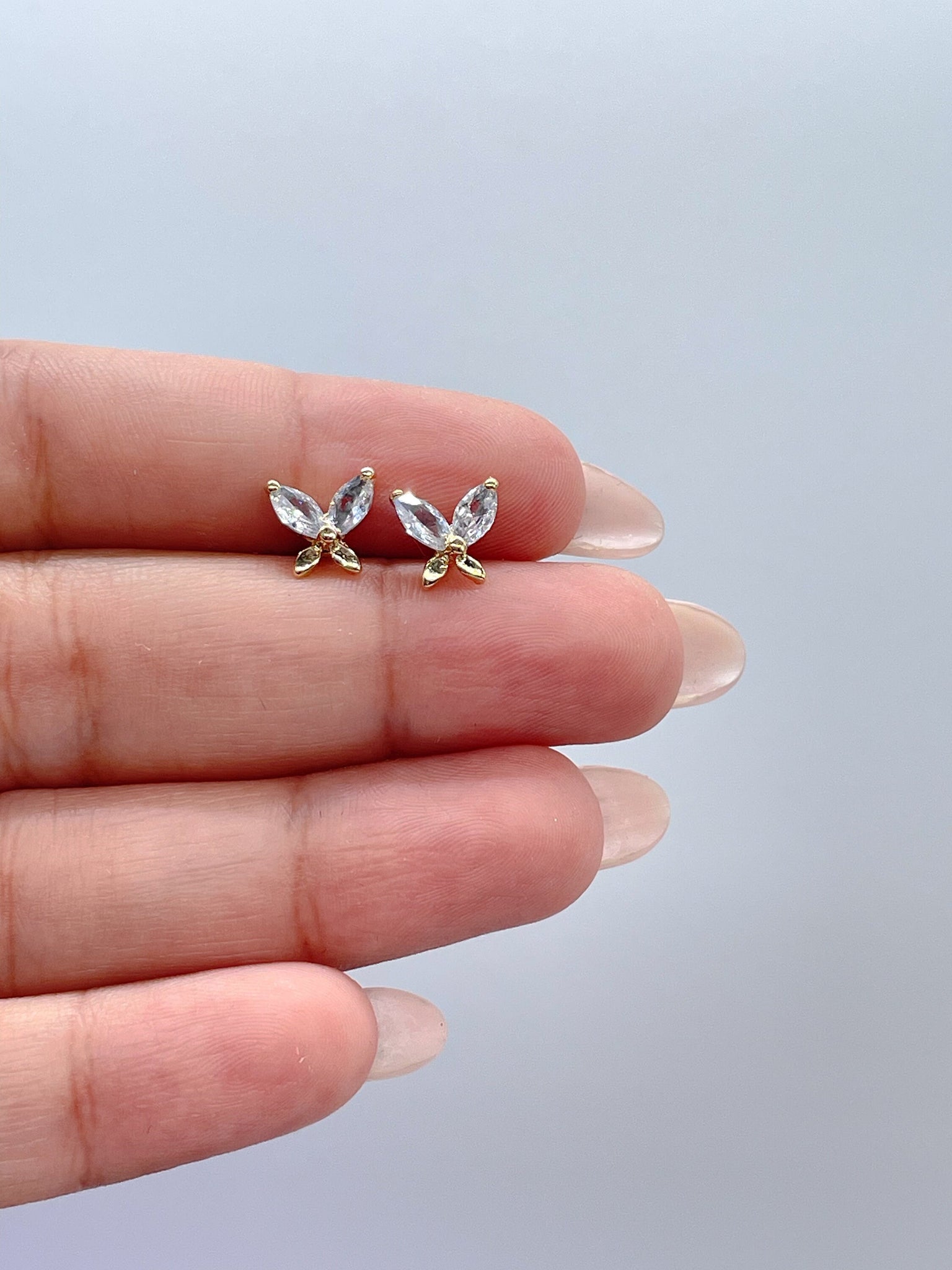 18k Gold Filled Dainty Butterly Stud Earrings With Top Marquise Cut Stone Earrings, Butterfly Studs, Dainty Stud,