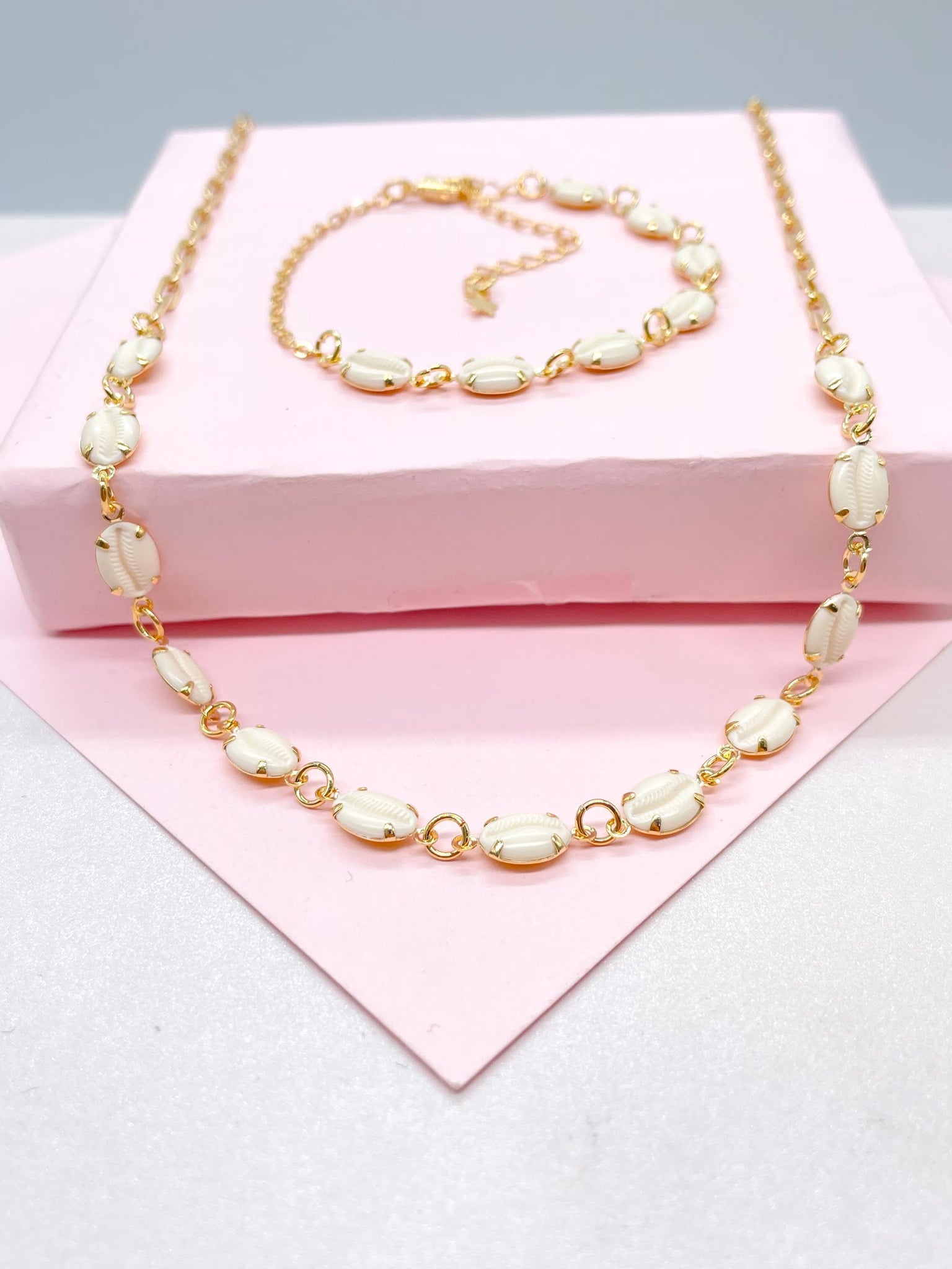 18k Gold Filled Dainty Choker Chain and Bracelet with Cowrie Puka Shell Charms