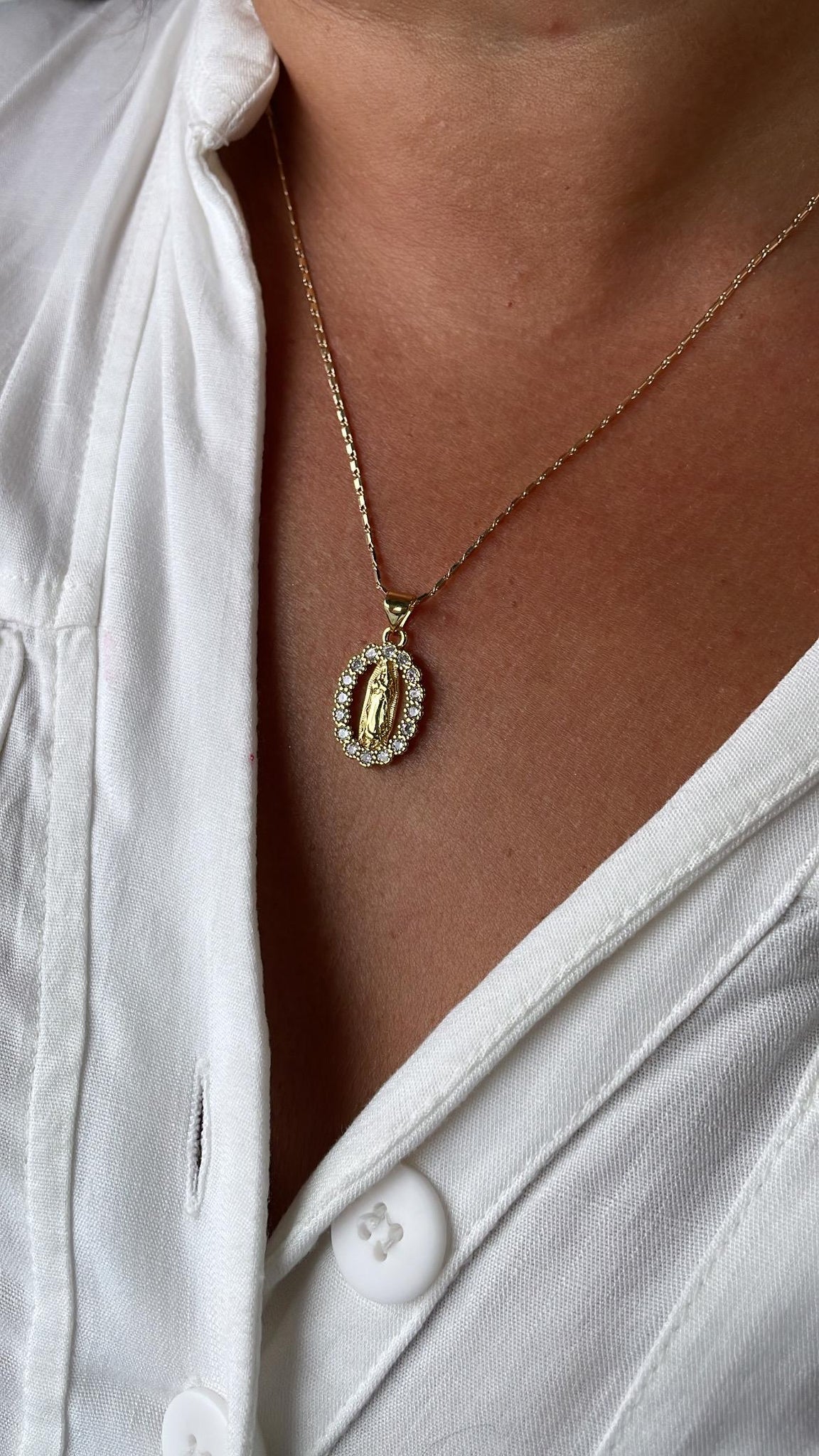 18k Gold Filled Engraved Virgin of Mary Charm with Mother of Pearl