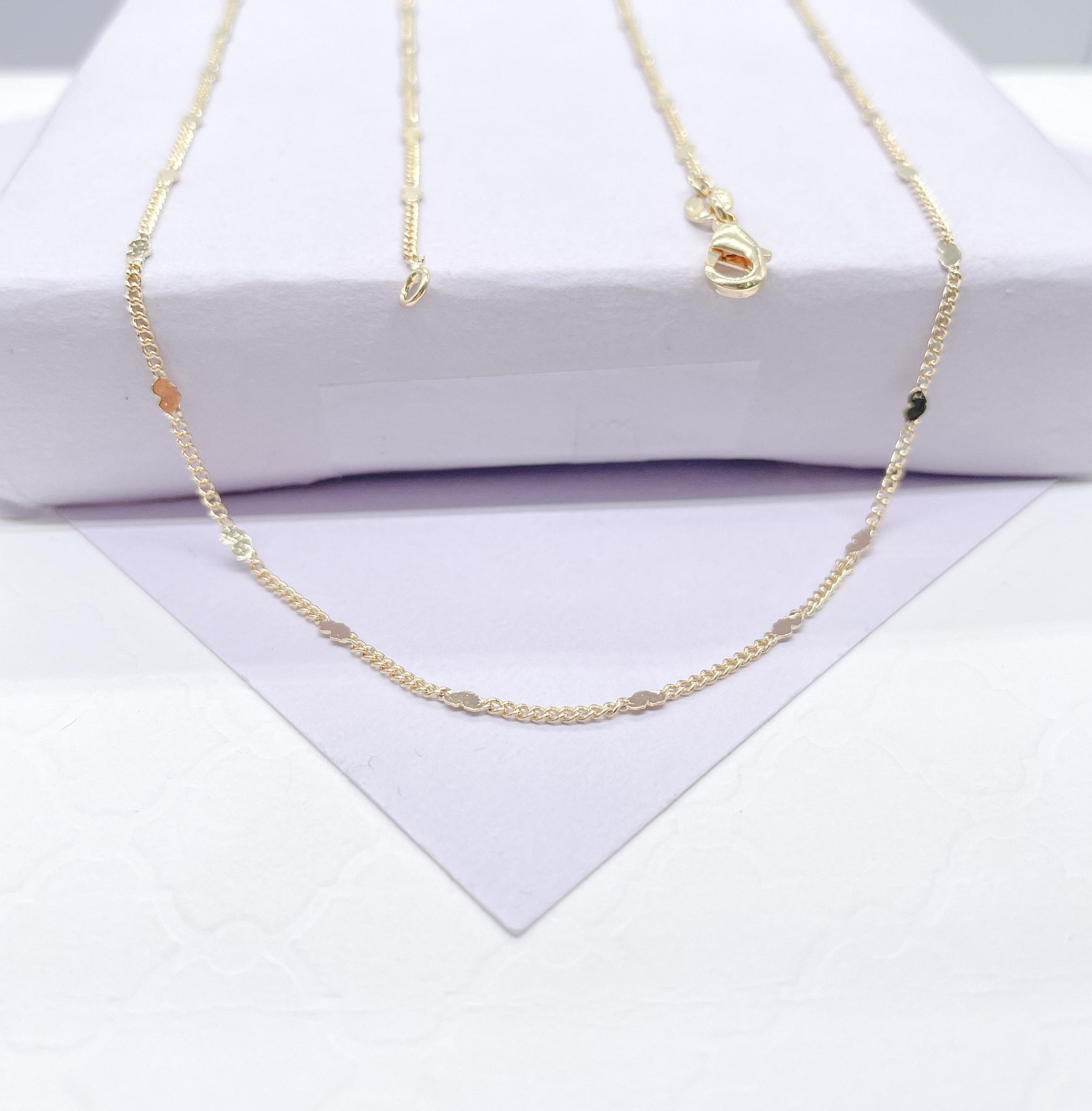 18k Gold Filled Flat Fancy Heart Sequin Curb Link Chain, Available in 16 Inches