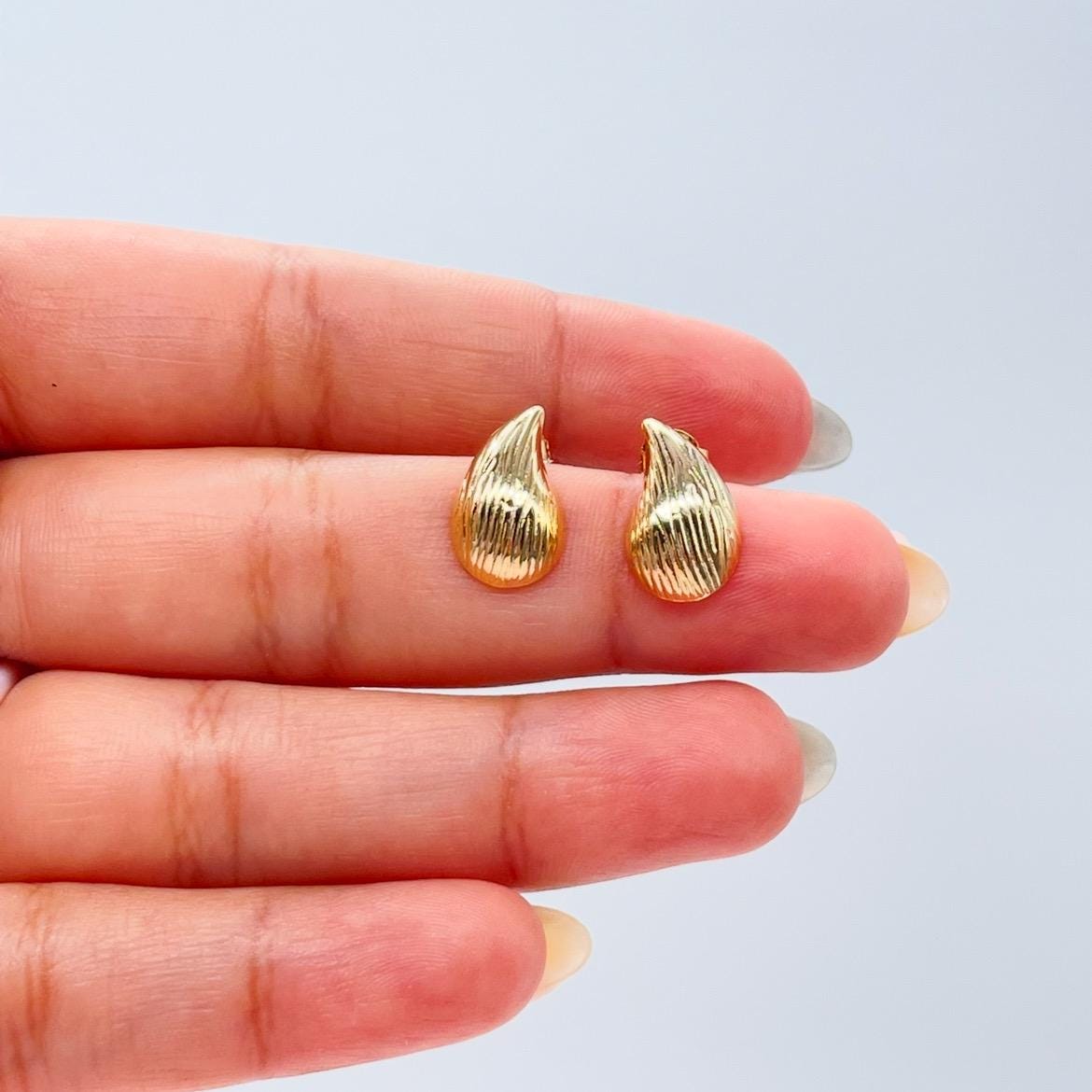 18k Gold Filled Tear-Drop Earring With Textured Patterns