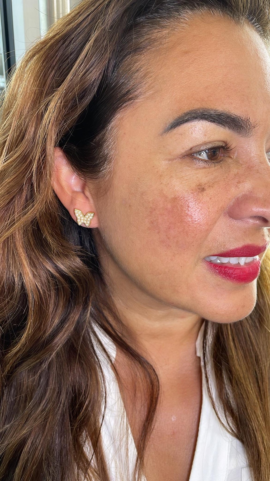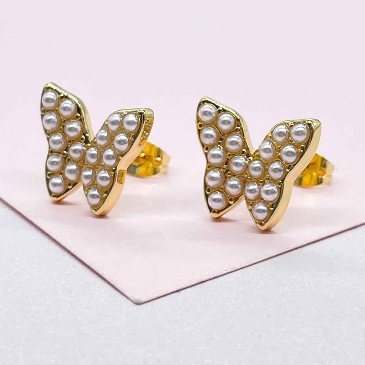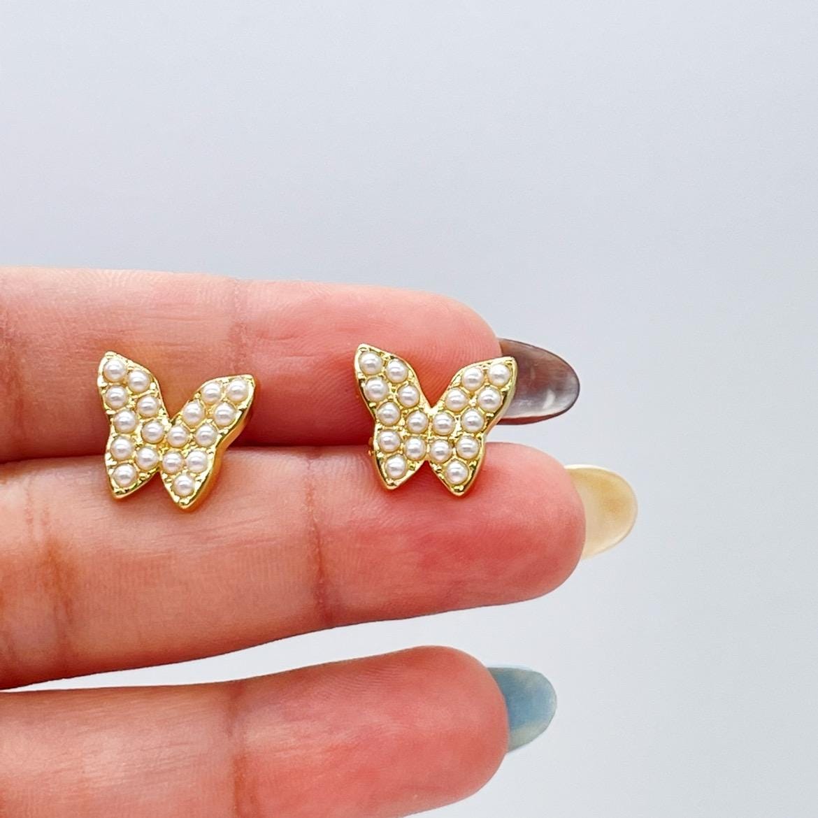 18k Gold Filled Pearl Beaded Butterfly Stud Earrings