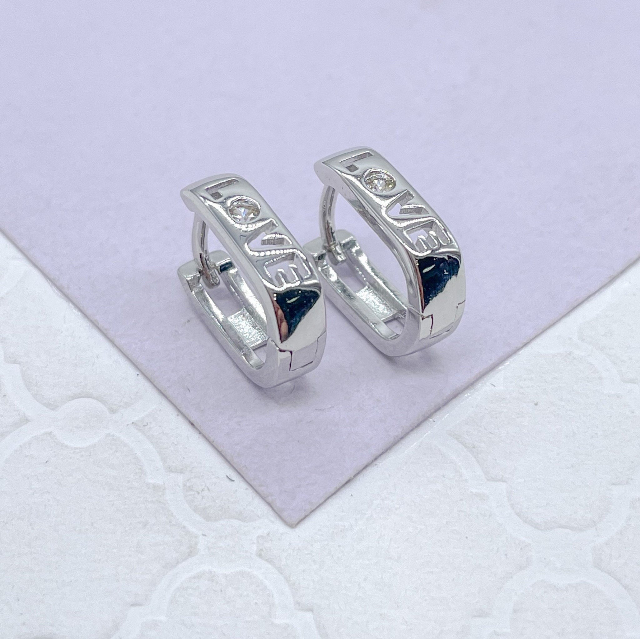 18k Gold Filled & Silver Filled Small “Love” Square Hoop