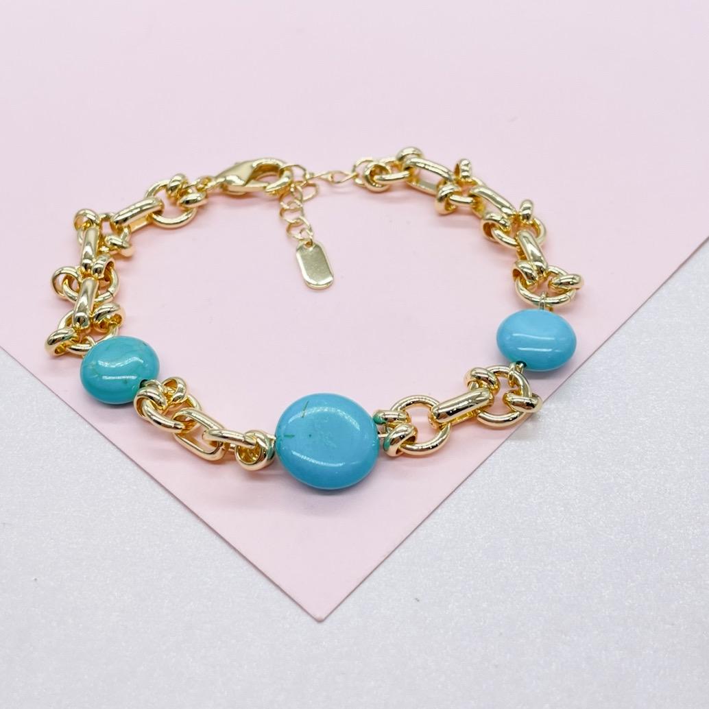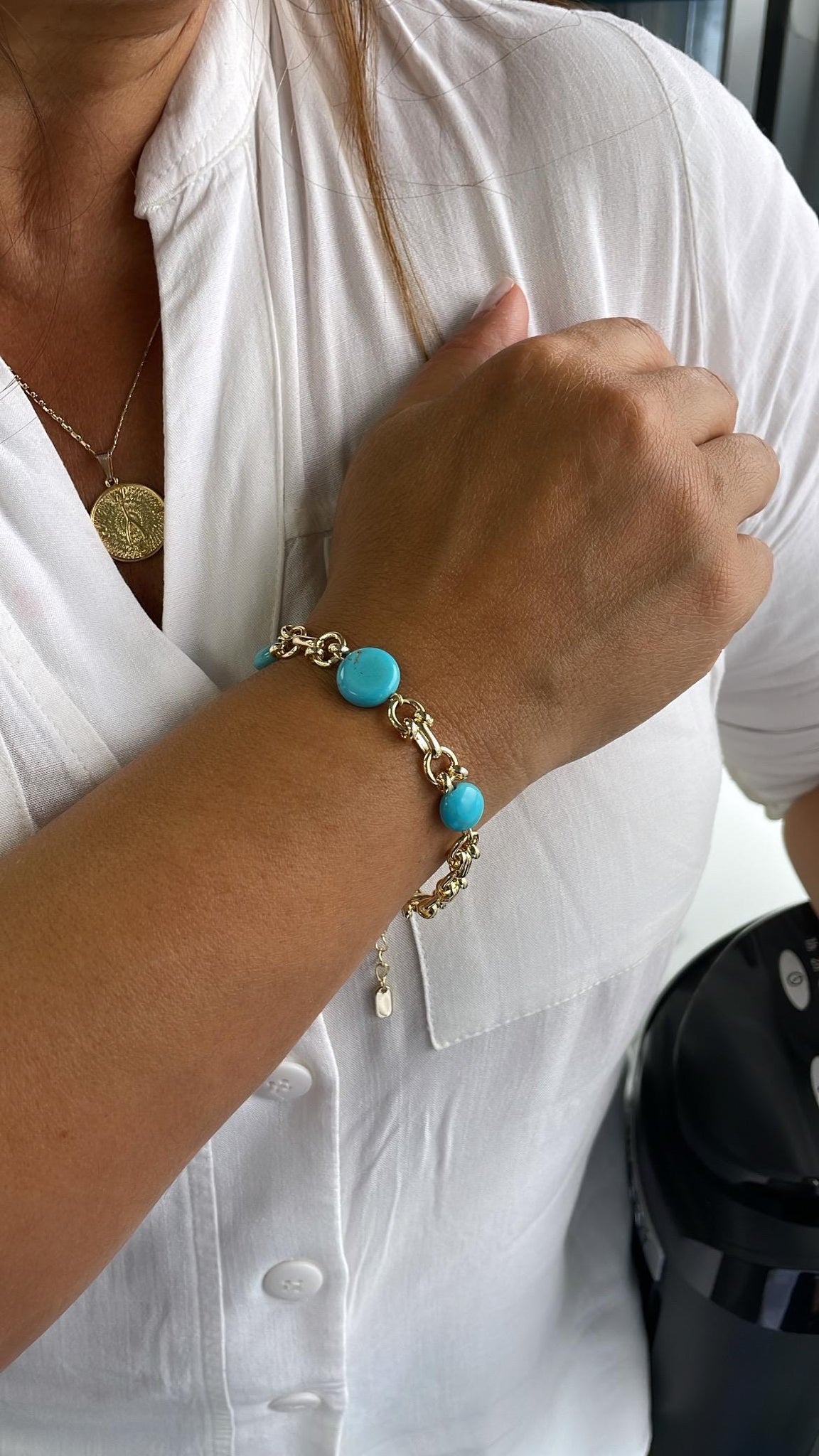 18k Gold Filled Specialty Link Bracelet with Turquoise Disks