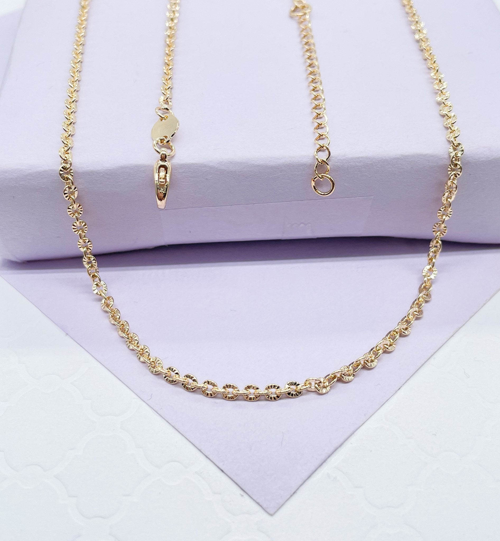 18k Gold Filled Thin Crushed Style Chunky Curb Layer Chain