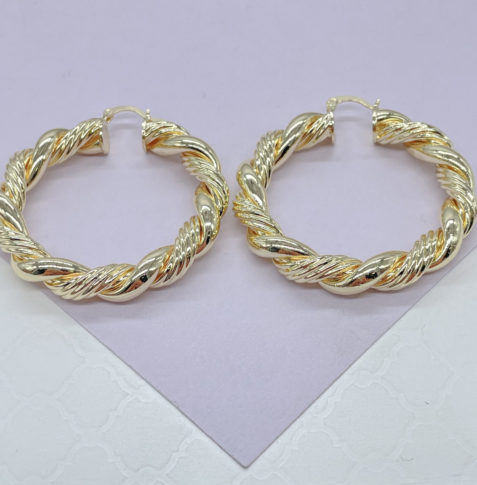 18k Gold Filled XL Style Smooth Plain Twisted Hoop Earrings Available in 3 Sizes