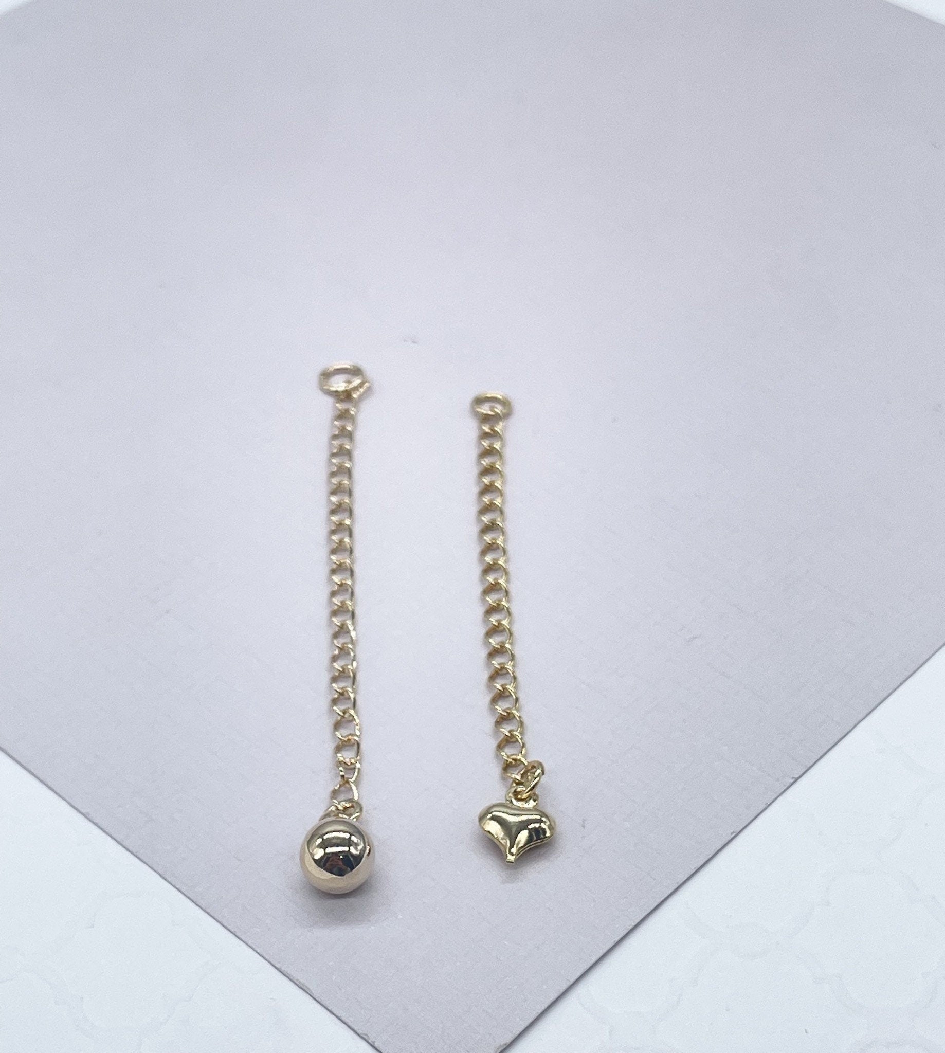 18k Good Filled Chubby Ball and Heart 2” Extenders for Chains, Necklaces, Anklets