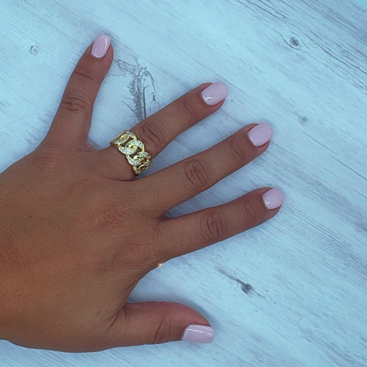 "Transform your style with our 18k Gold Filled Chunky CZ Eternity Band Ring. Designed to create the most exquisite and luxurious stack, this ring adds a touch of glamour to any outfit. Elevate your look and make a statement with our stunning rings."Gorgeous Adjustable 18k Gold Filled Thick Chain Ring With Micro Pavè Cubic Zirconia.