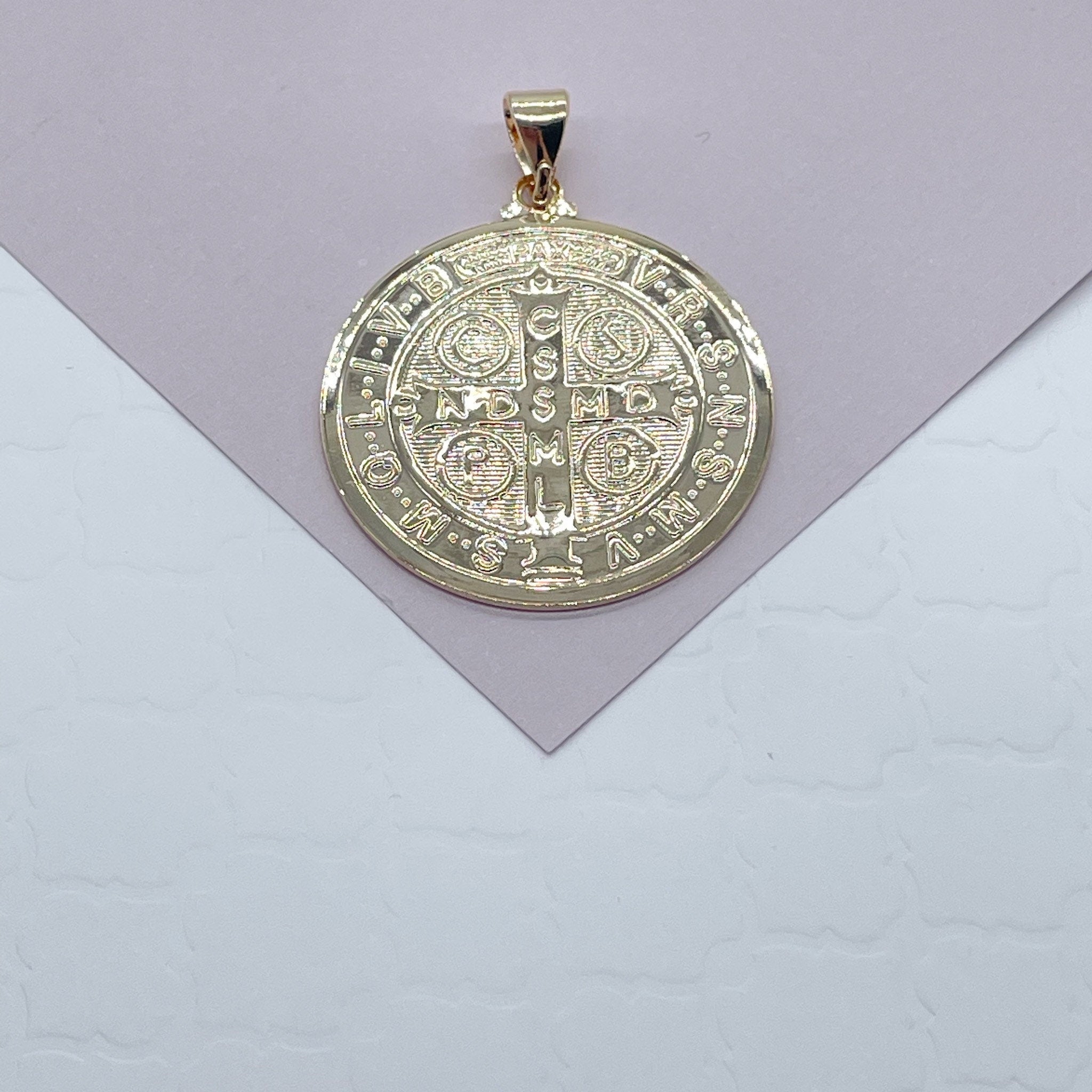Catholics carry or wear the St. Benedict medal to symbolize a prayer that asks for God’s blessings, the guidance of Jesus and for strength during temptation. On the medal, St. Benedict holds a cross in his right hand; in his left, he holds a copy of his Holy Rule for Monasteries. The cup represents a cup of poison that was given to him, while a raven to his left represents the bird that carried away a loaf of poisoned bread said to have been delivered to the saint.