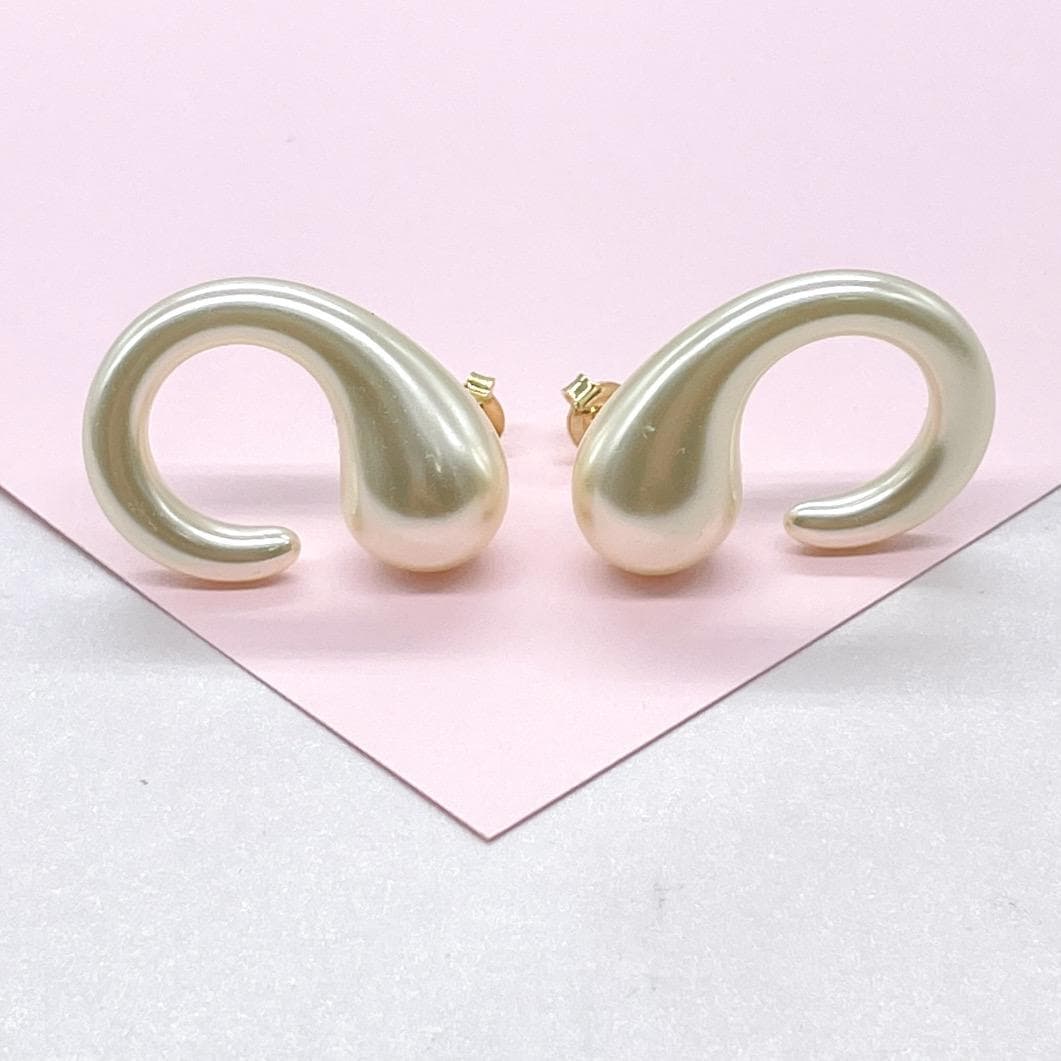 Synthetic Pearl Earring with Semi-Swirl Shape