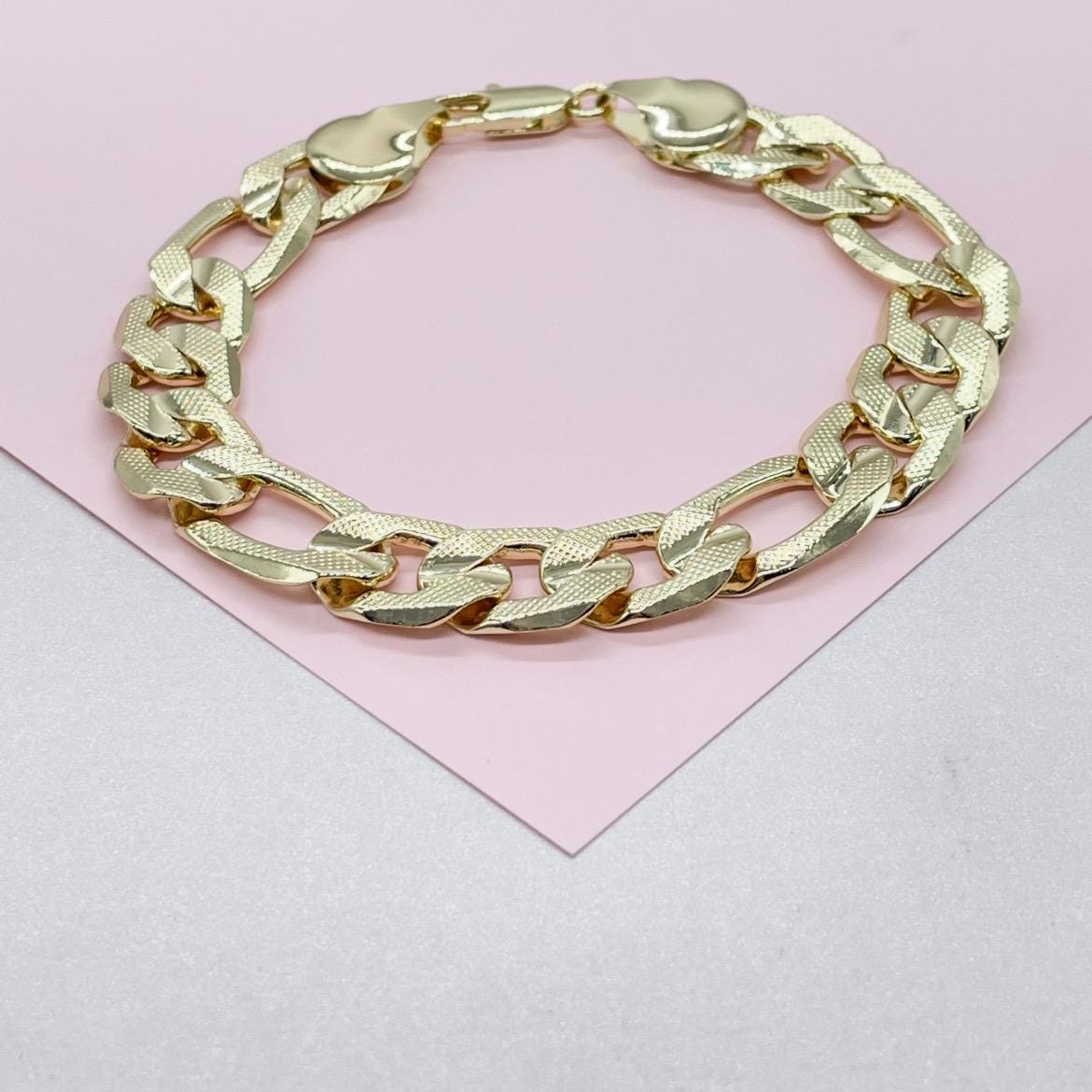 18k Gold Filled 12mm Thick Figaro Bracelet
