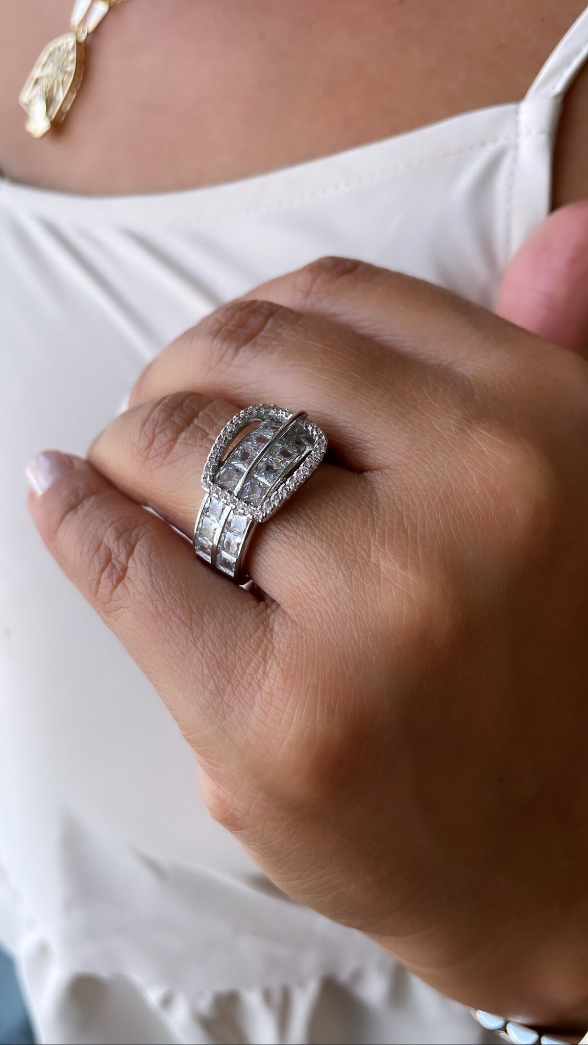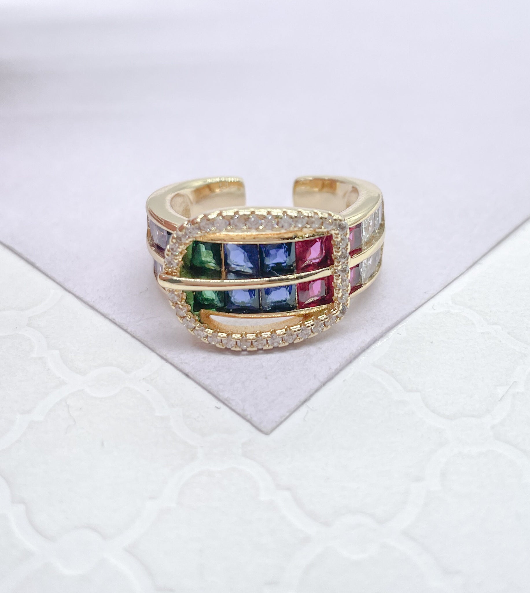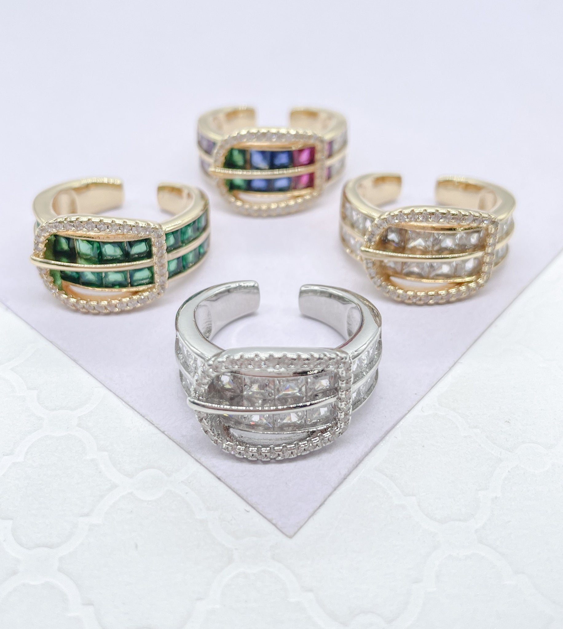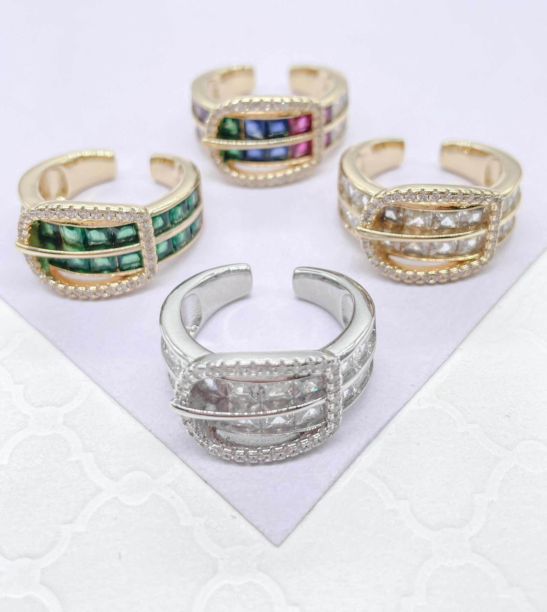 Transform your style with our 18k Gold Filled Belt Style Adjustable Ring. Designed to create the most exquisite and luxurious stack, this ring adds a touch of glamour to any outfit. Elevate your look and make a statement with our stunning rings.