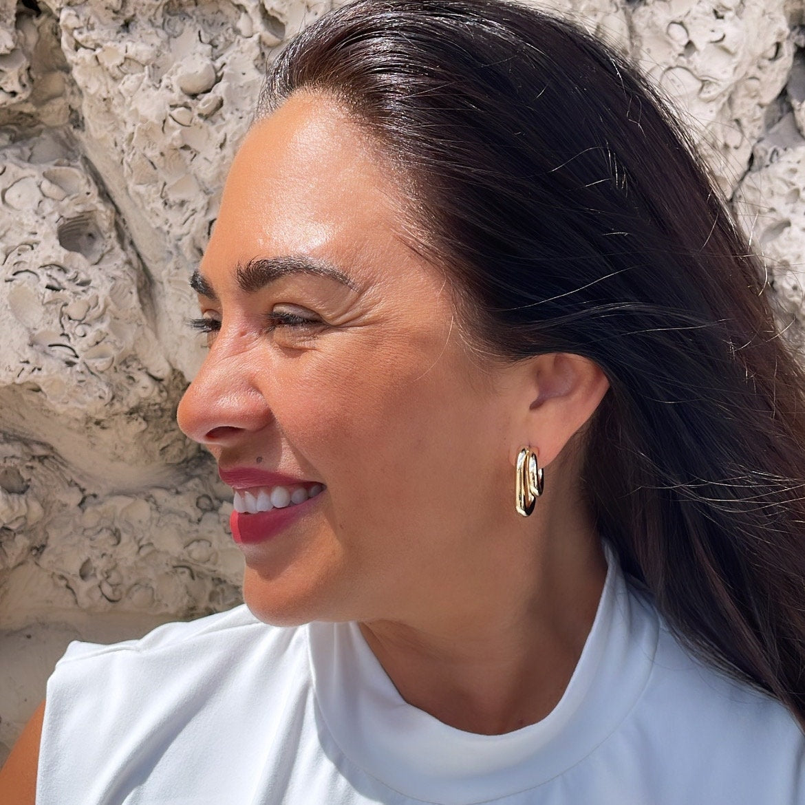 18k Gold Filled Hoop Earrings: Minimalist Double Row Hoops