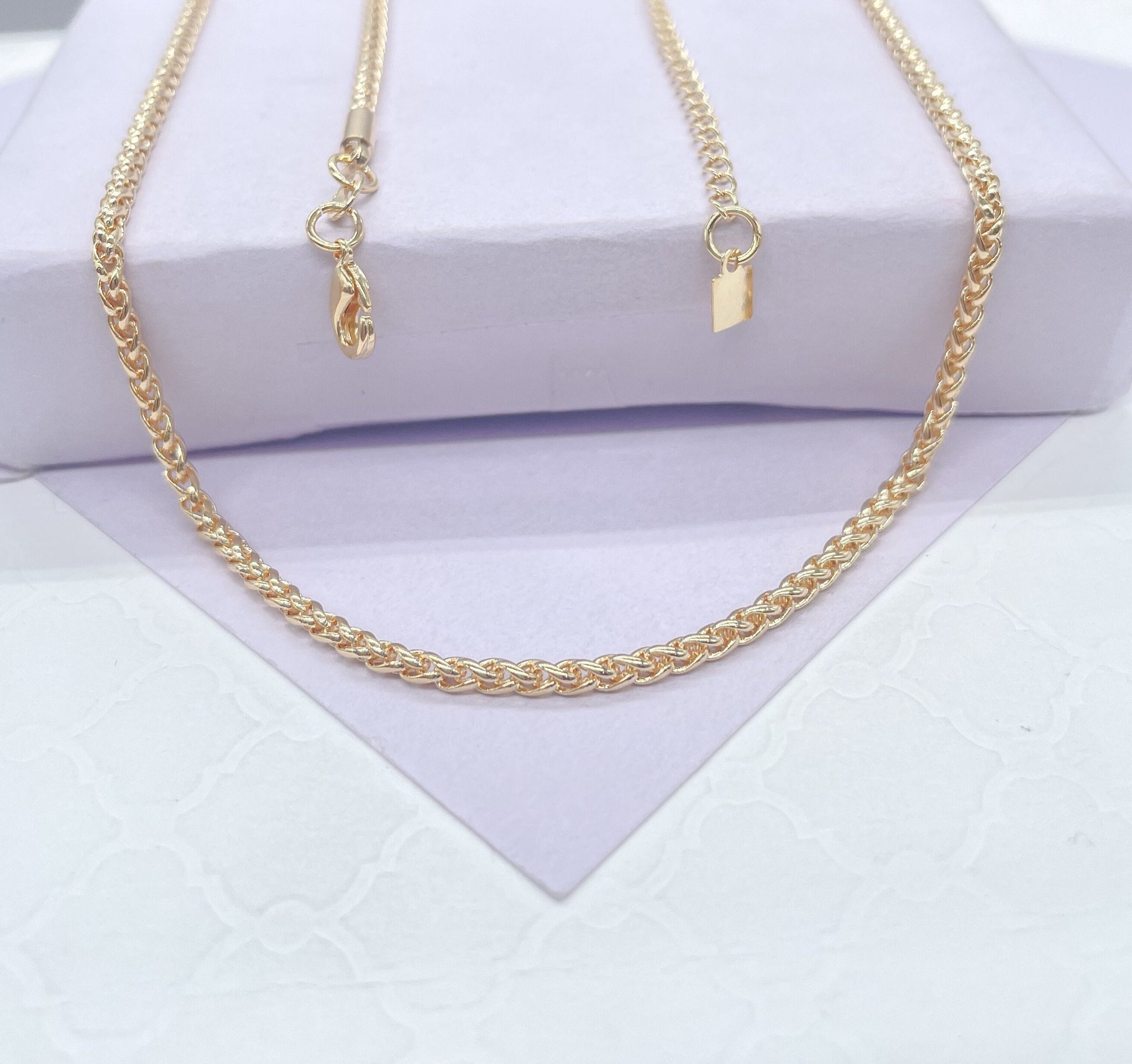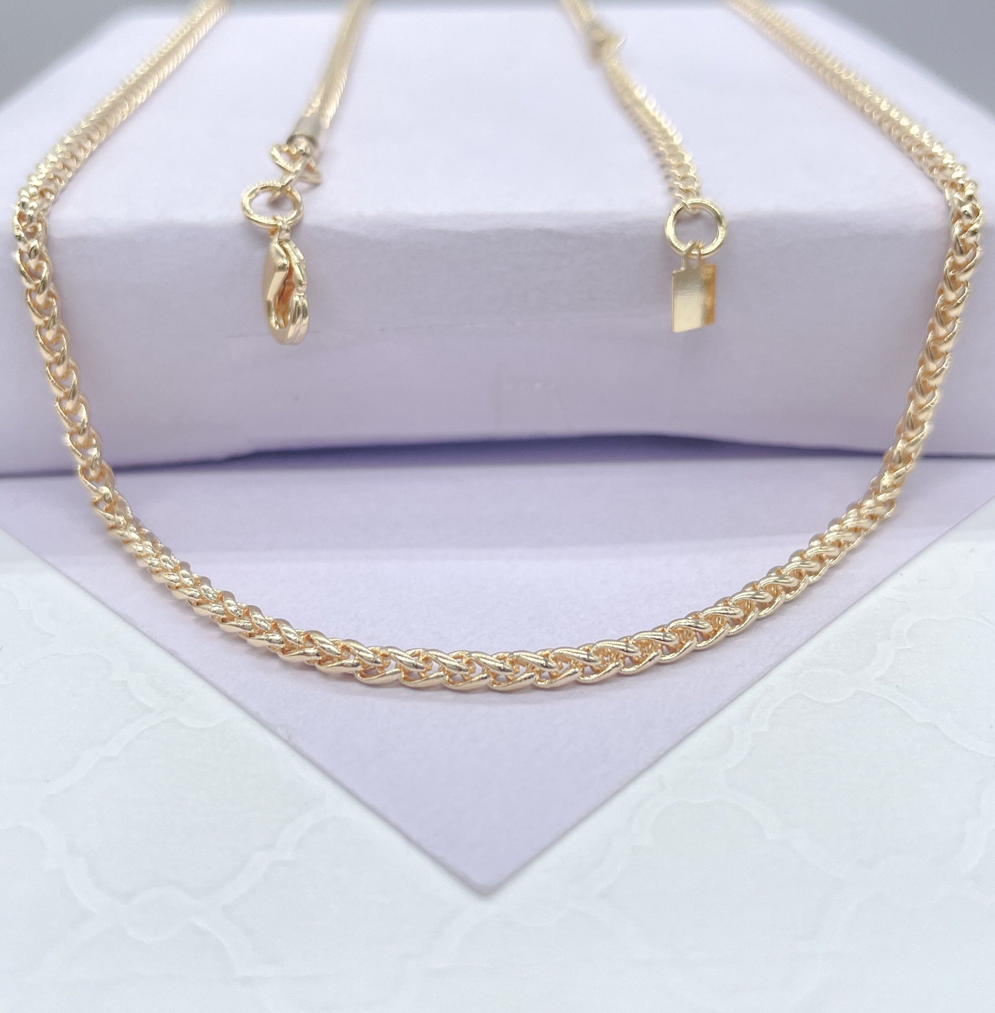 18K Gold Filled 2mm Wheat Link Tube Necklace