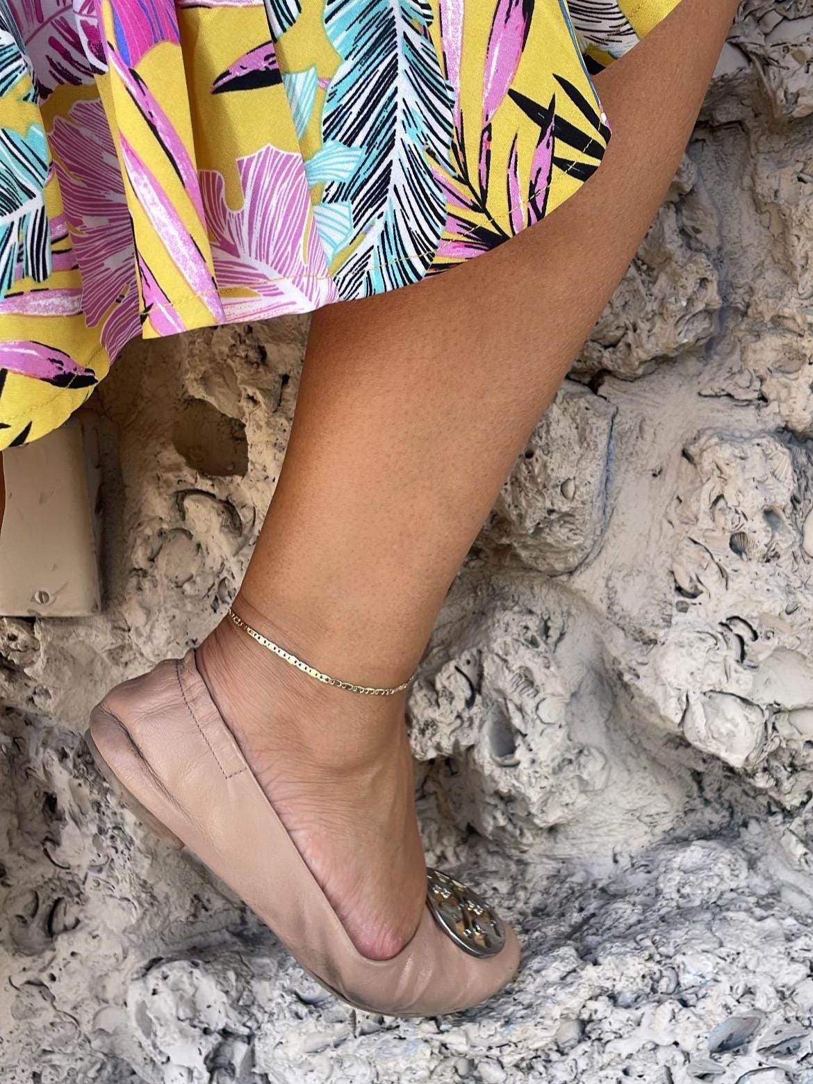 18k Gold Filled 3mm Mariner Link Anklet featuring Starburst Design