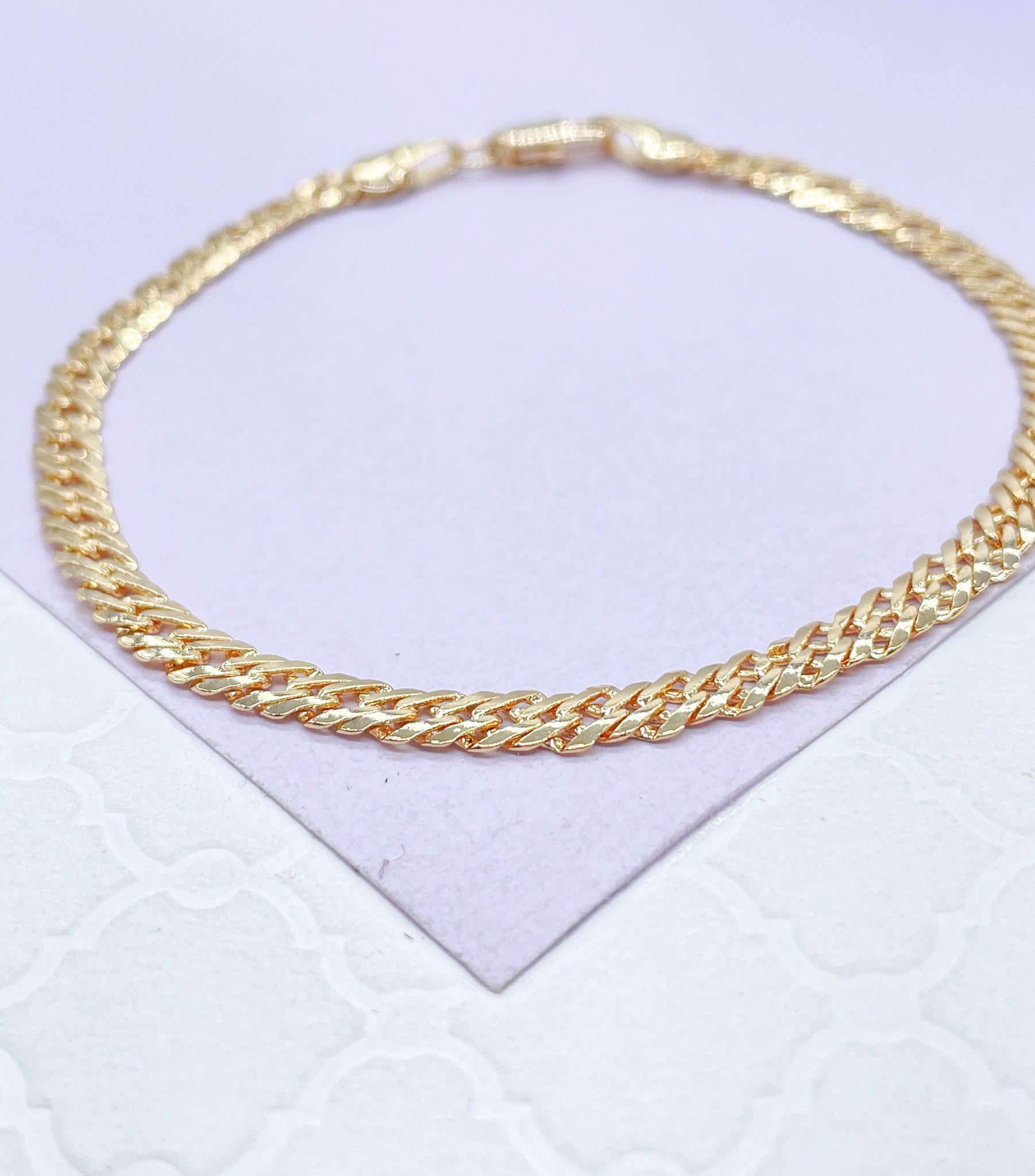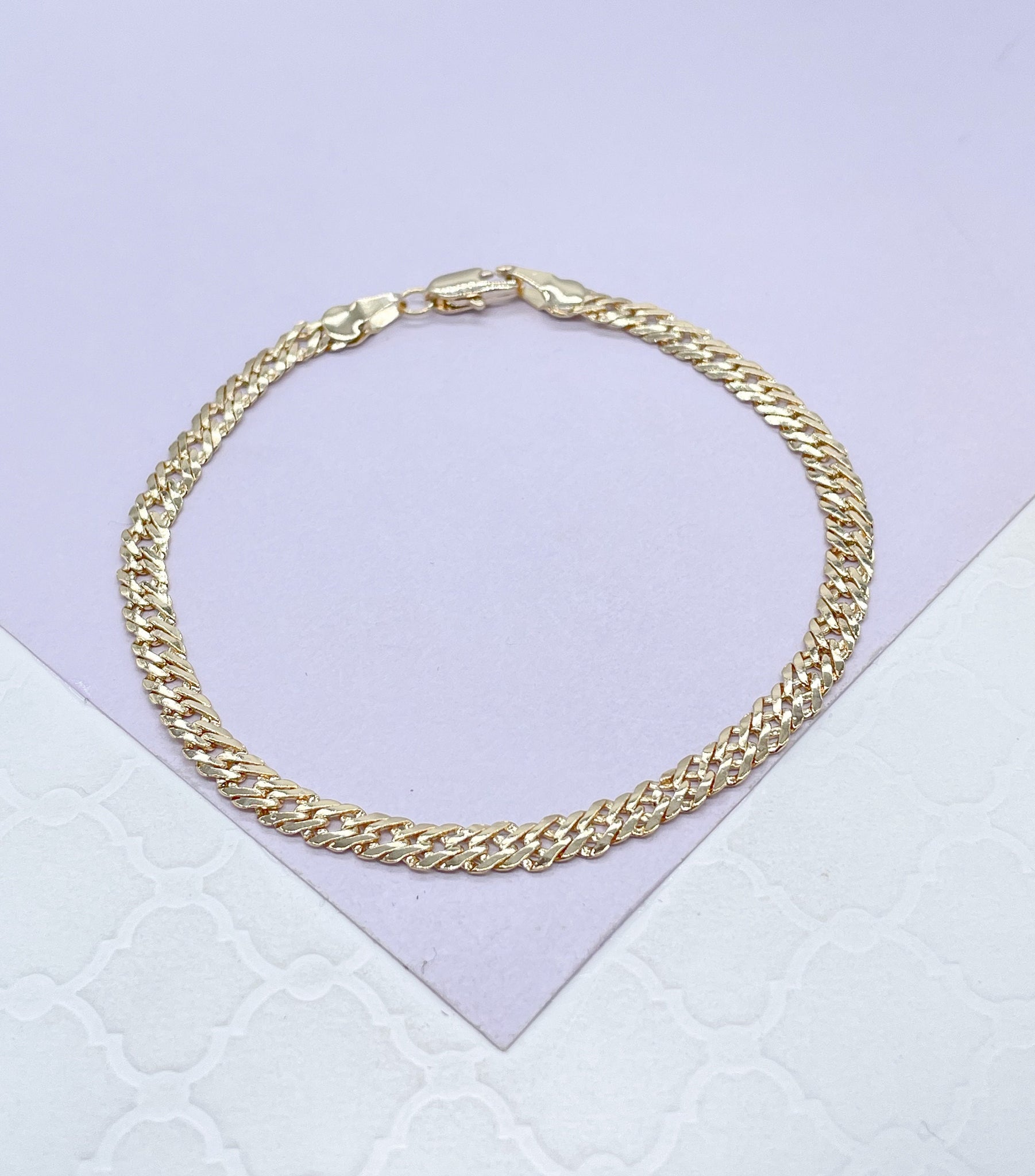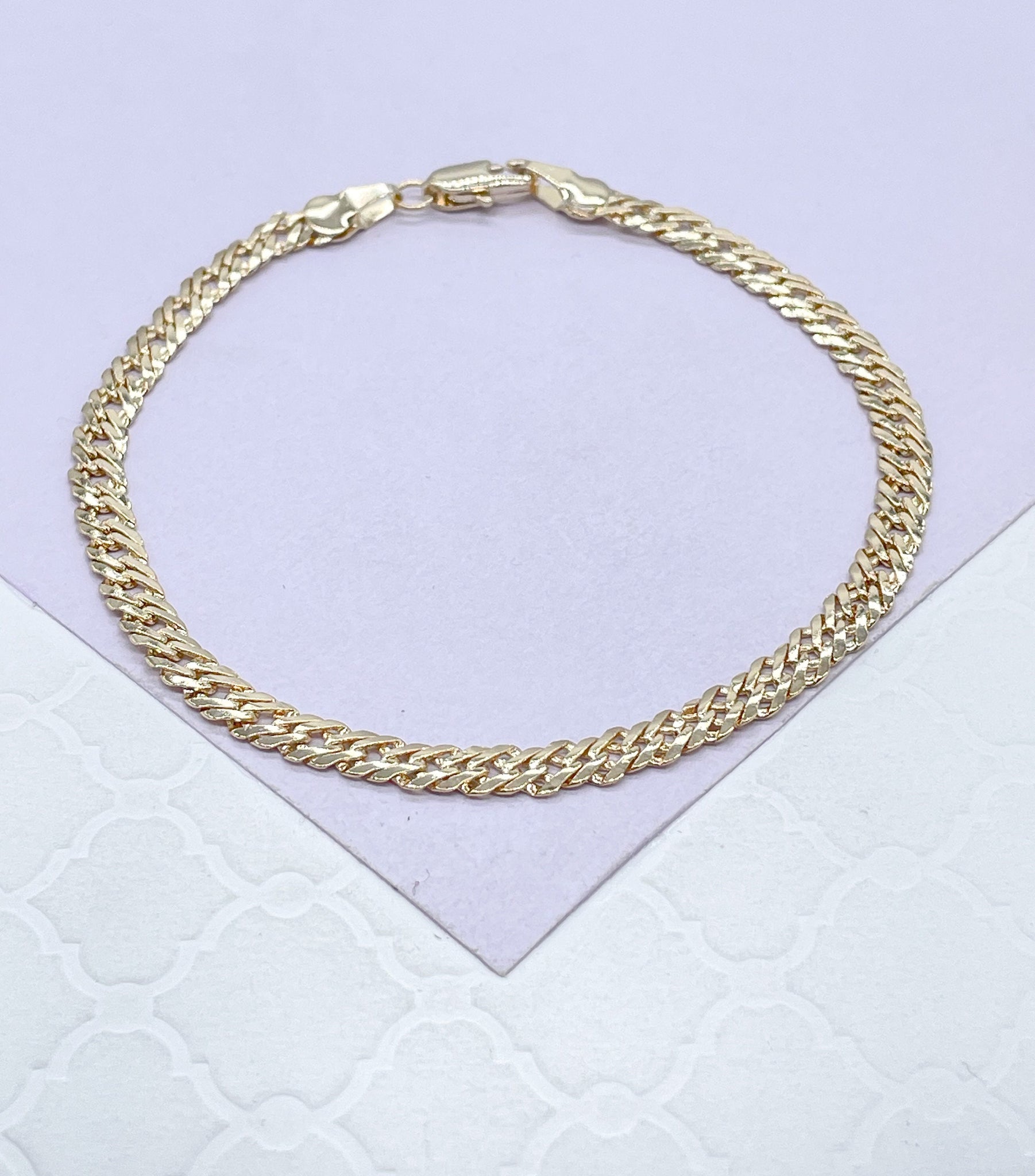 18k Gold Filled 4mm Unisex Smooth Double Cuban Link Bracelet