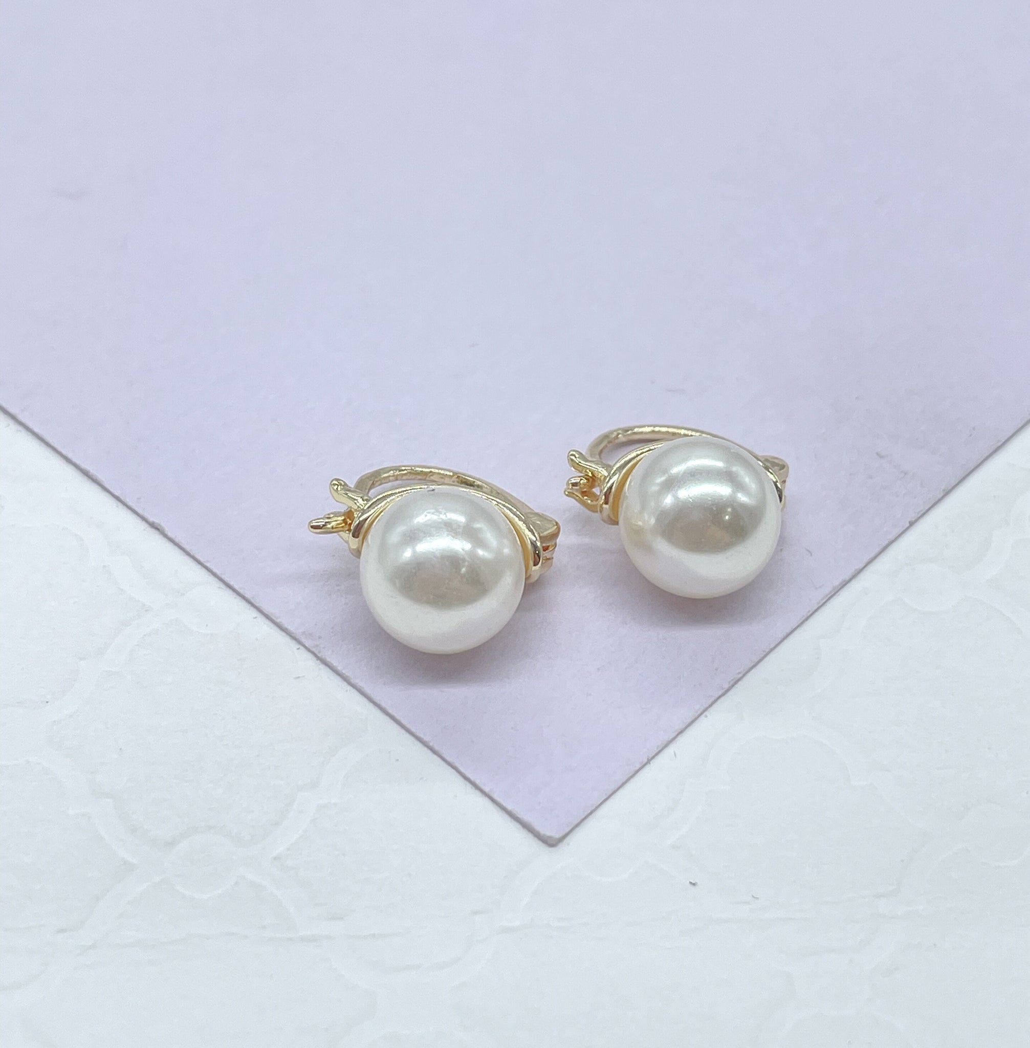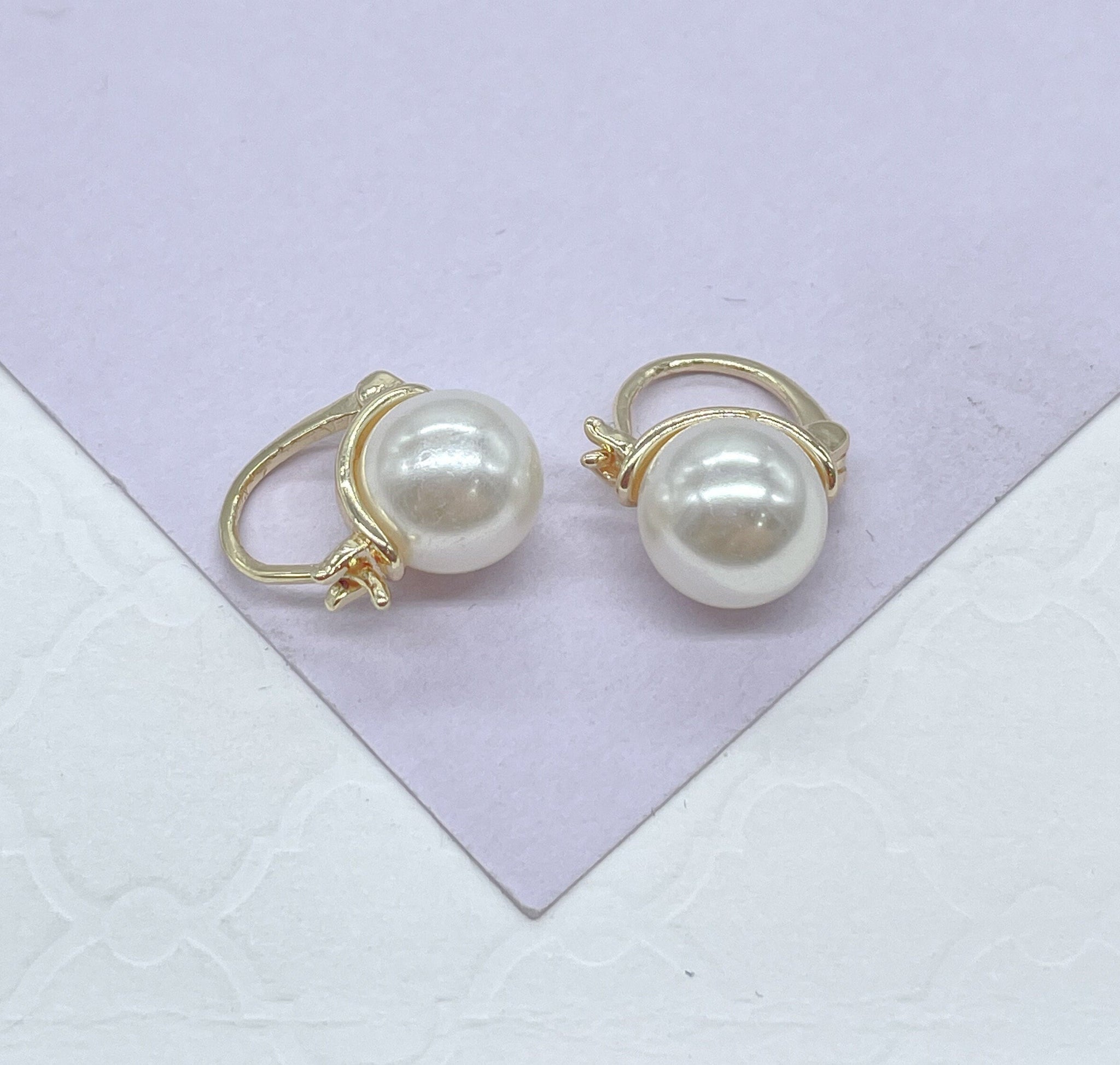 18k Gold Filled Plain Simulated Pearl Stud Earrings Jewelry Making Supplies