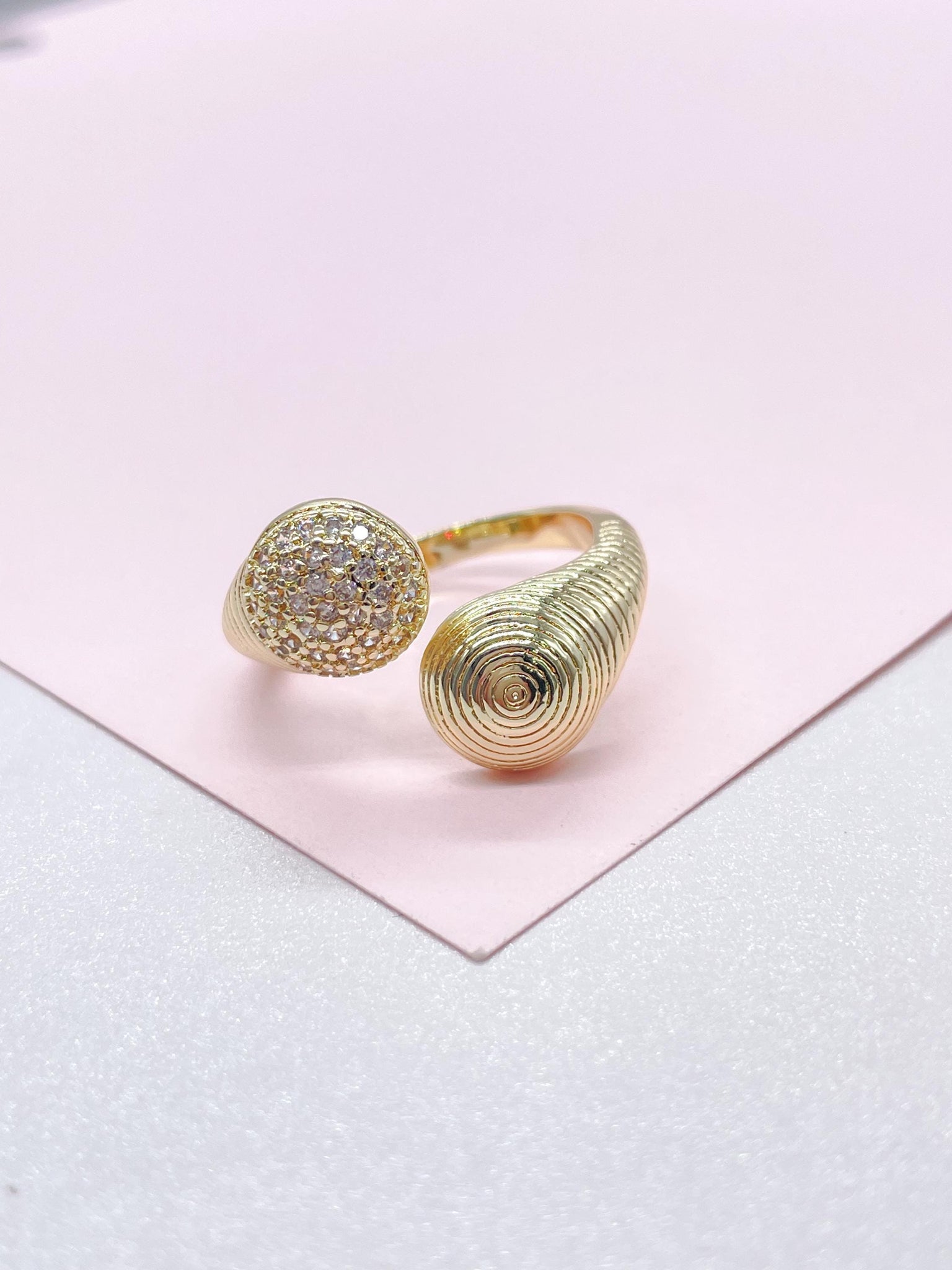 18k Gold-filled Adjustable Dual Wire Textured Ring With CZ Stones. Designed to create the most exquisite and luxurious stack, this ring adds a touch of glamour to any outfit. Elevate your look and make a statement with our stunning rings.
