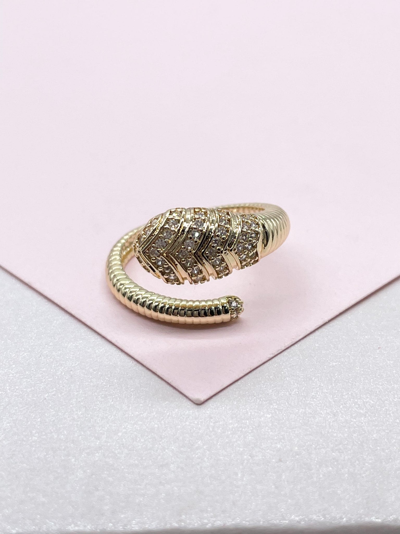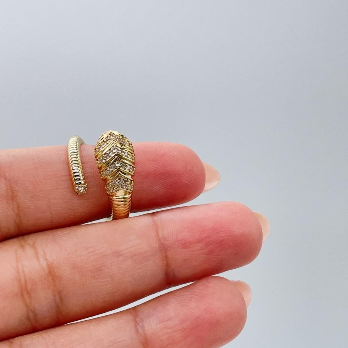 18k Gold-filled Adjustable Serpent Ring with rowed textures and CZ Stones