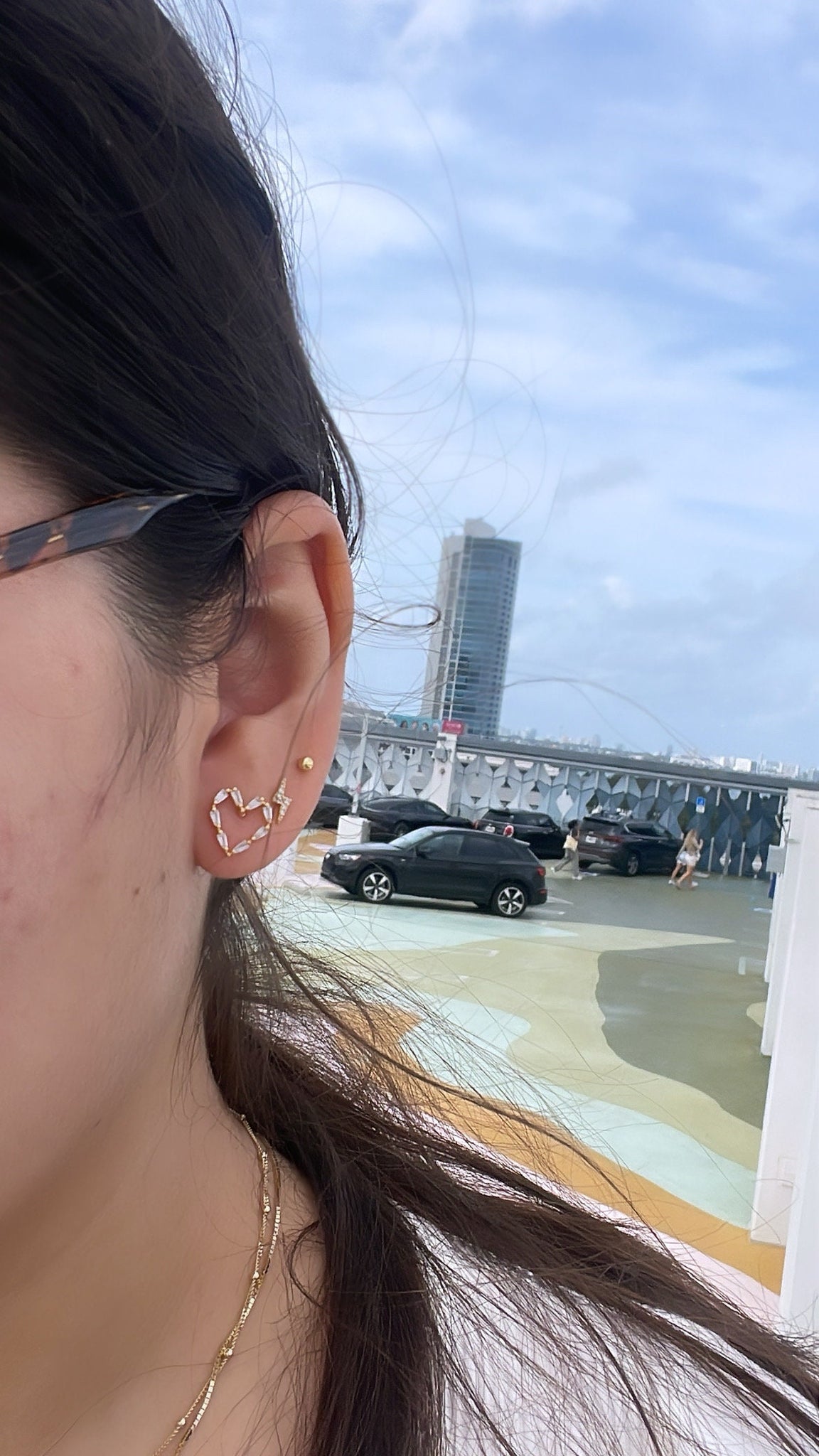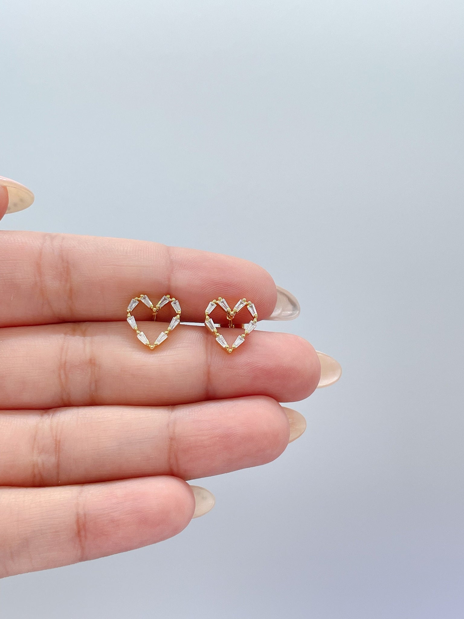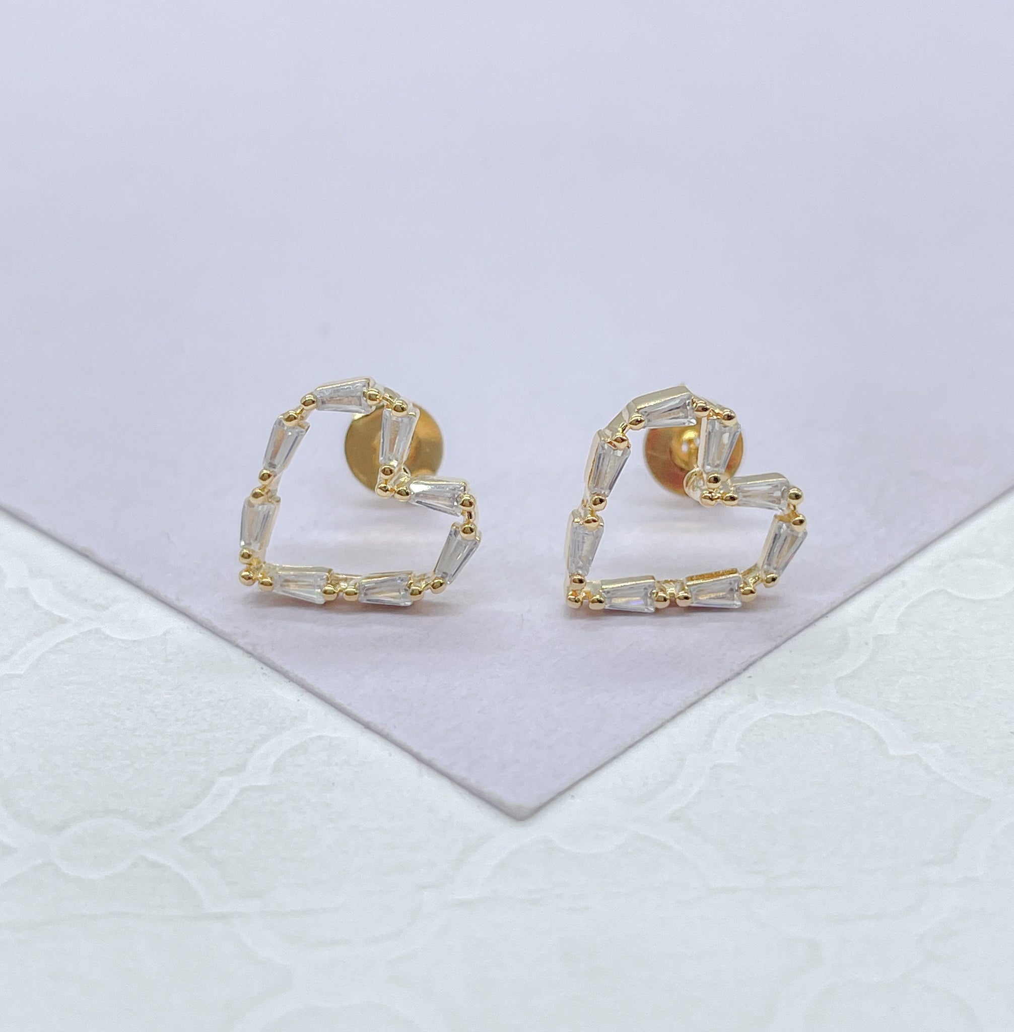 18k Gold Filled Baguette Stone-Patterned Heart Stud Earring
