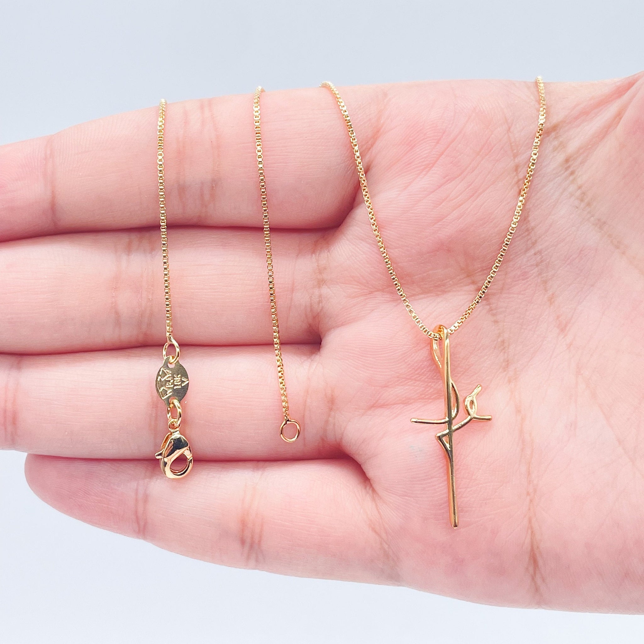 18k Gold Filled Box Chain Necklace With Minimalistic Cross