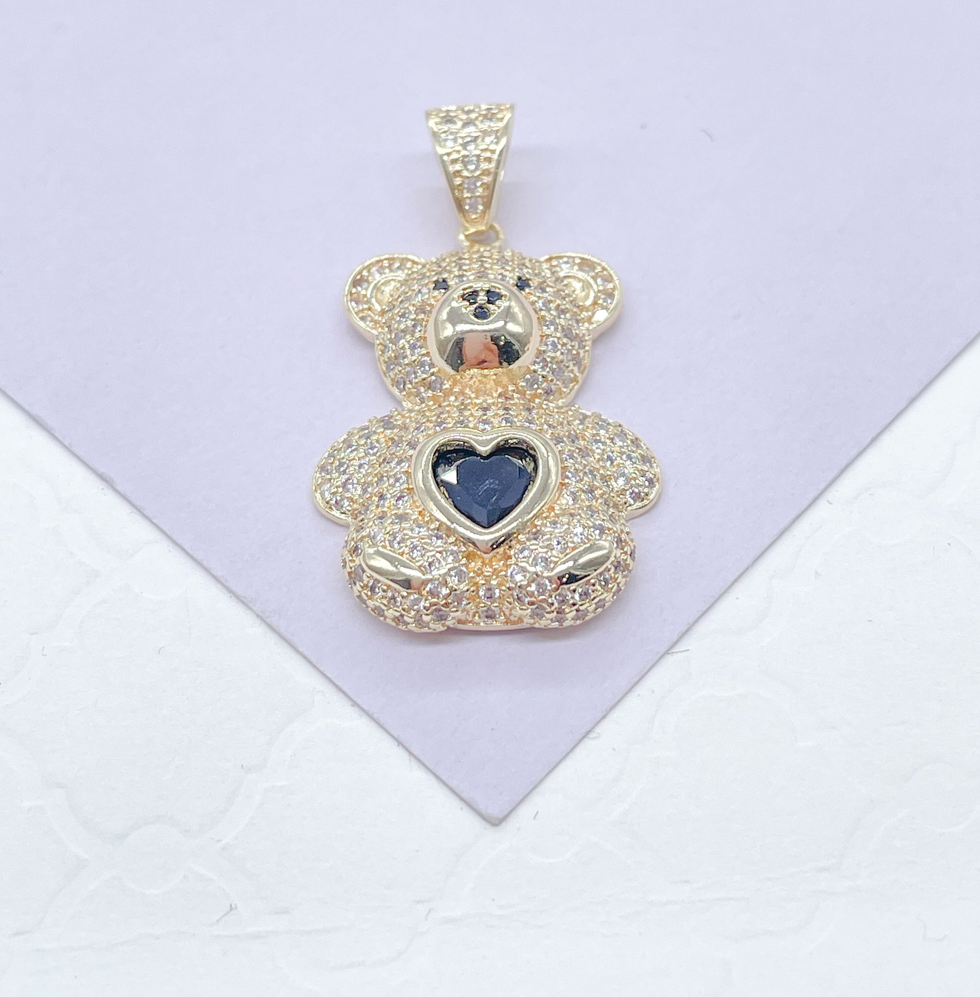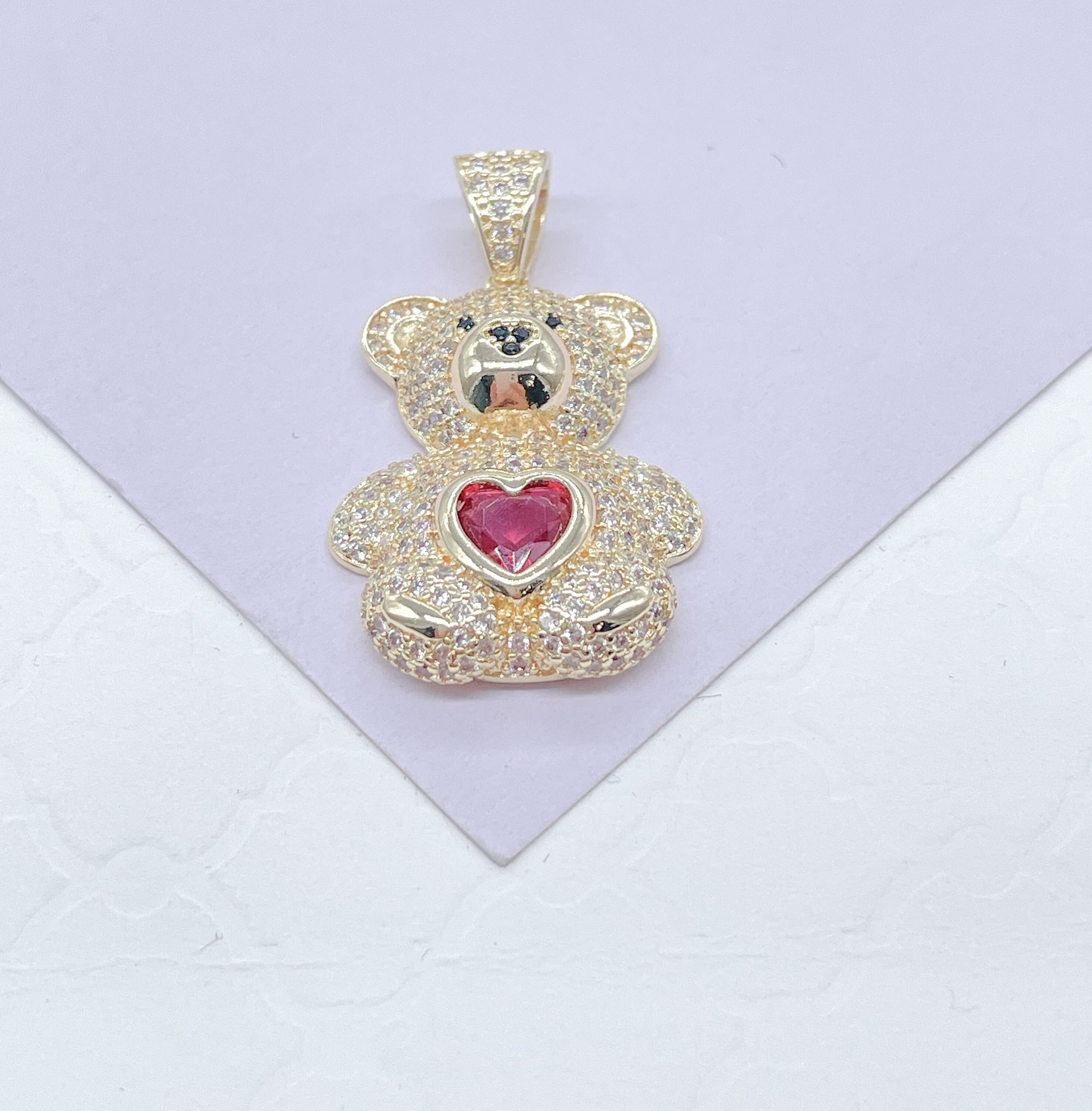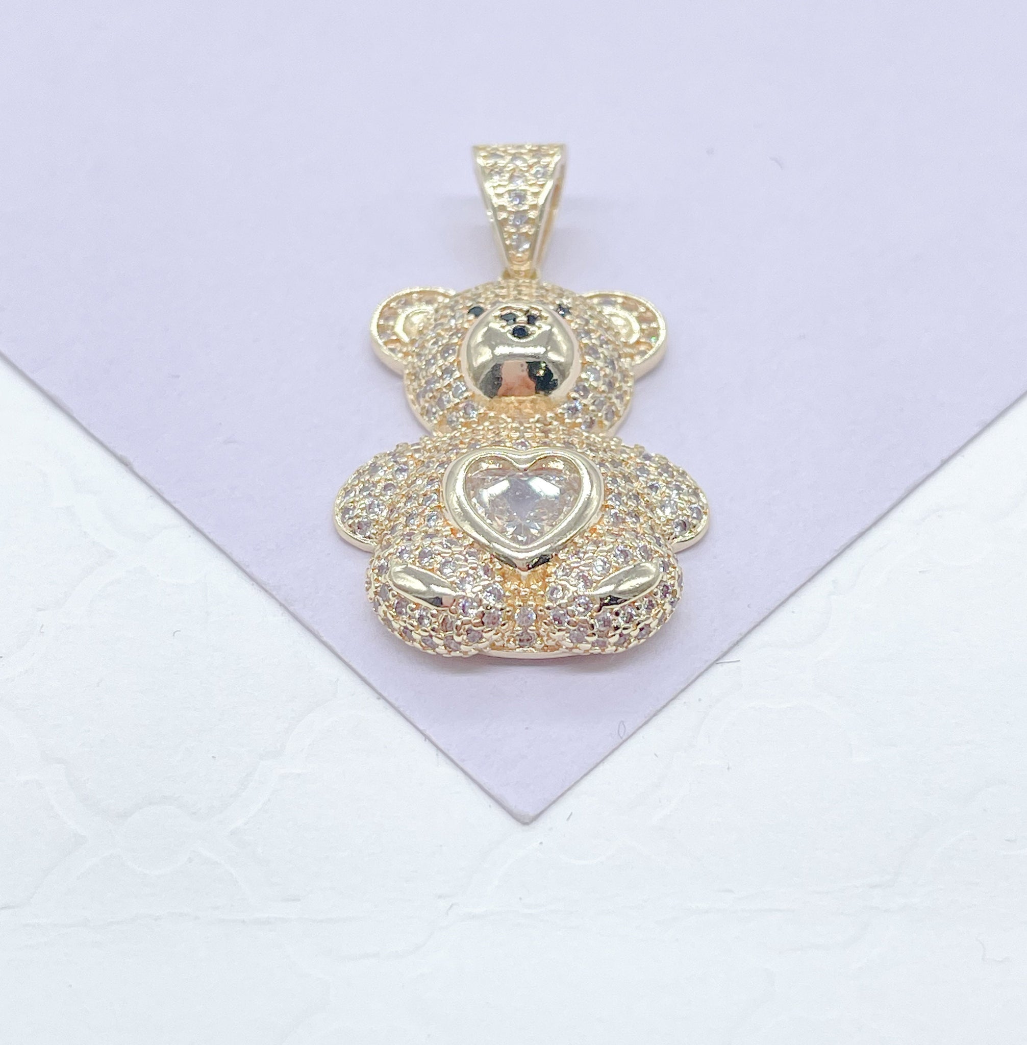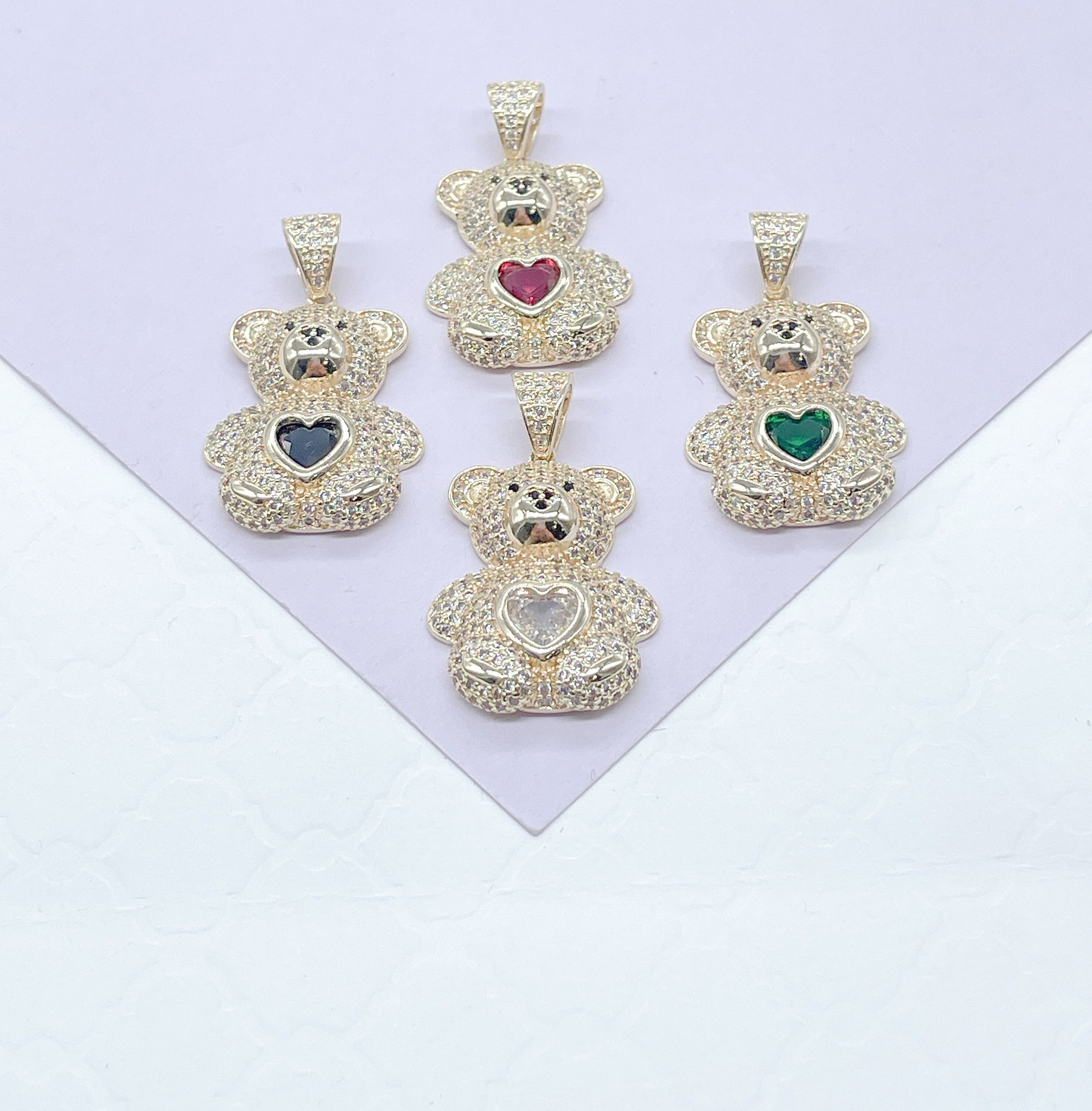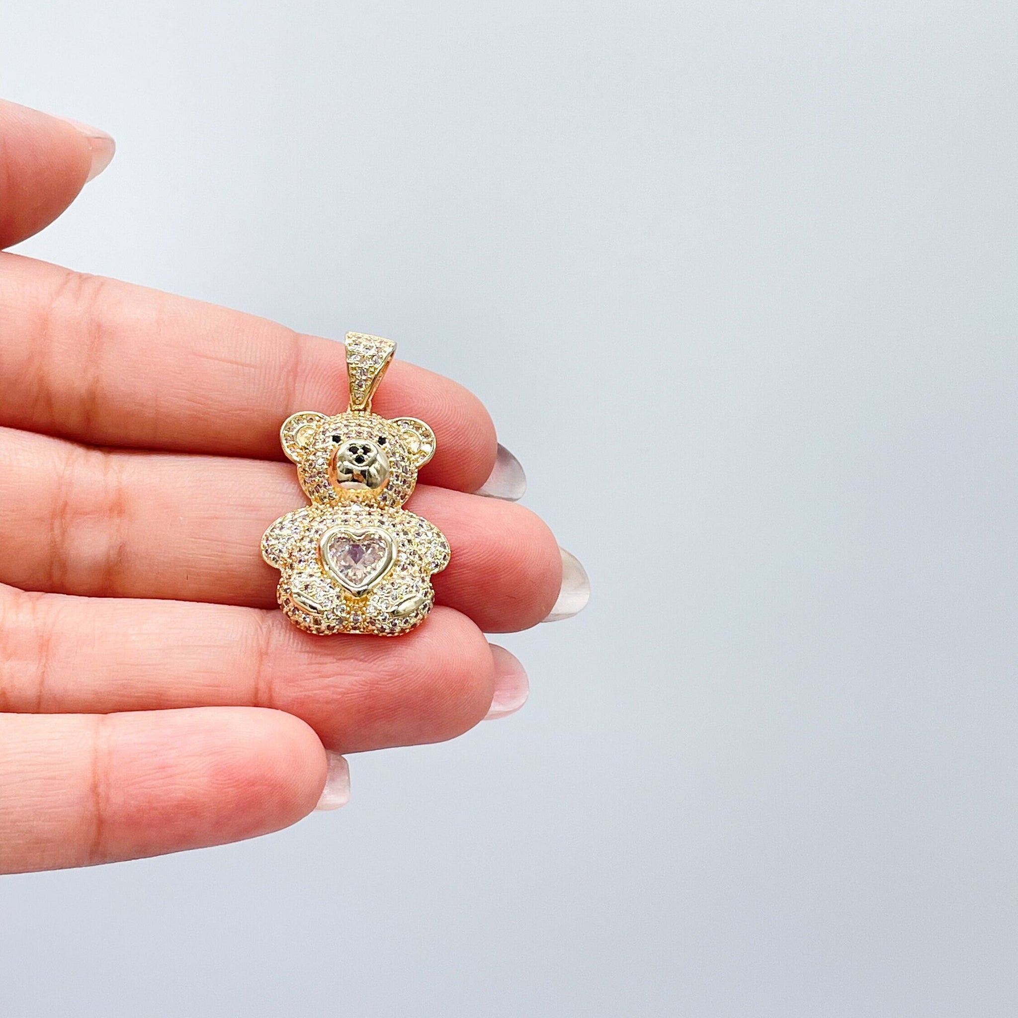 18k Gold Filled Chunky Bear Charm With Colorful Heart Center Piece, Animal Charm, Waterproof Jewlery, Hypoallergenic Jewlery