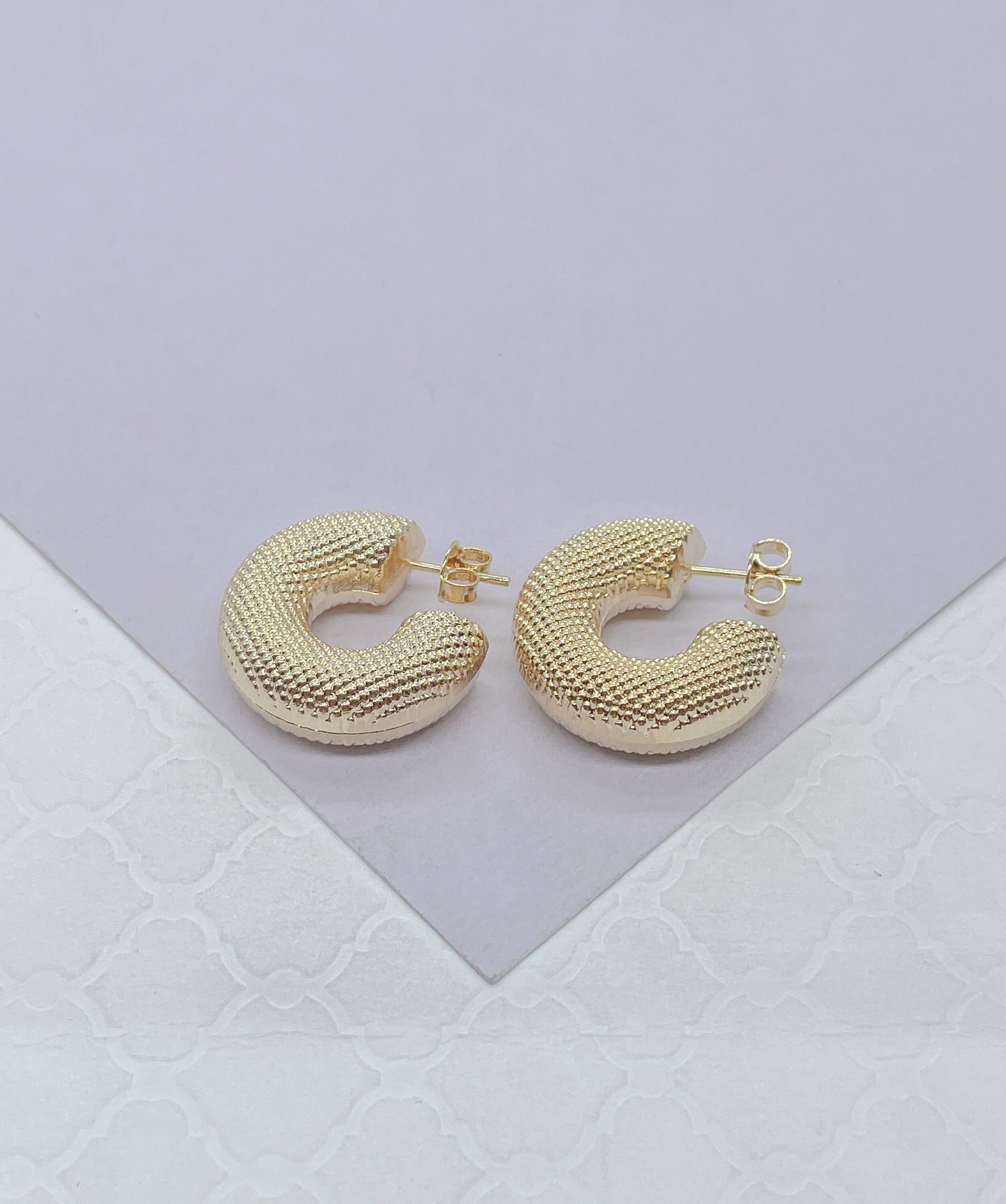 18k Gold Filled Chunky Bubble Grain-Textured 8mm Open Hoop Earring