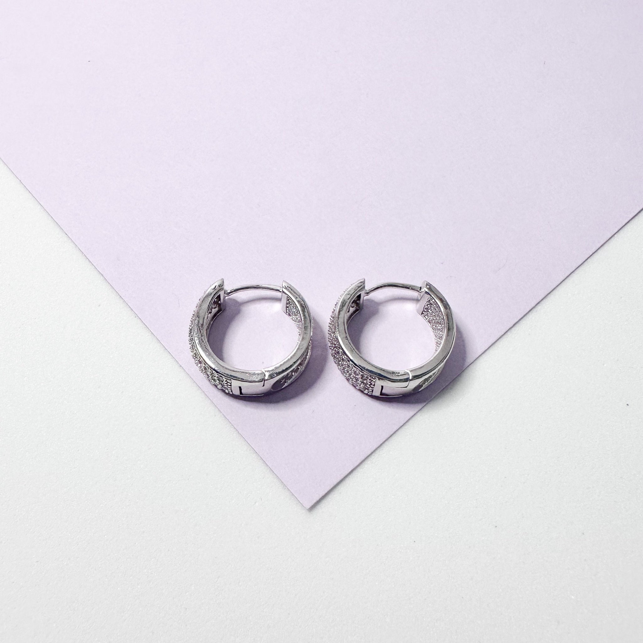 18k Gold Filled Chunky Pave Huggie Hoop Earrings