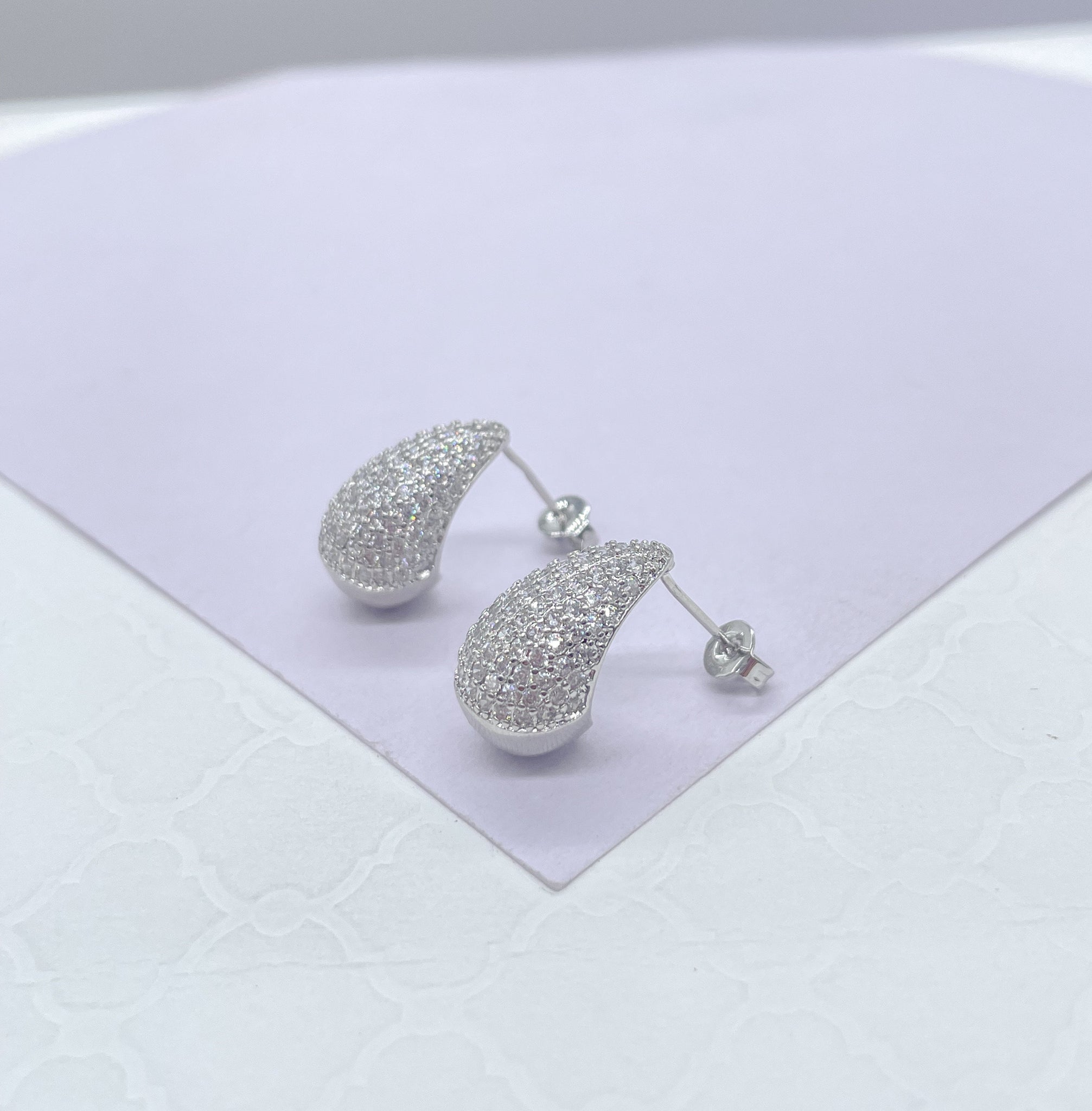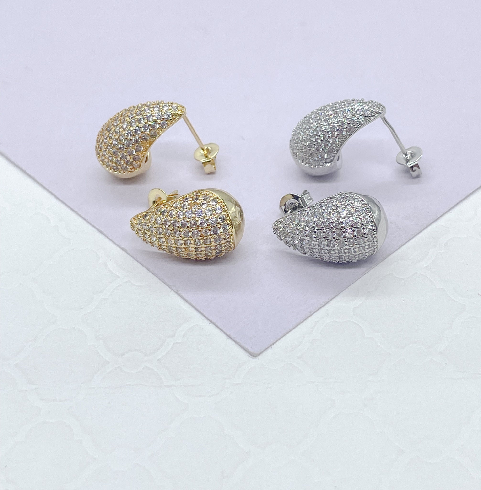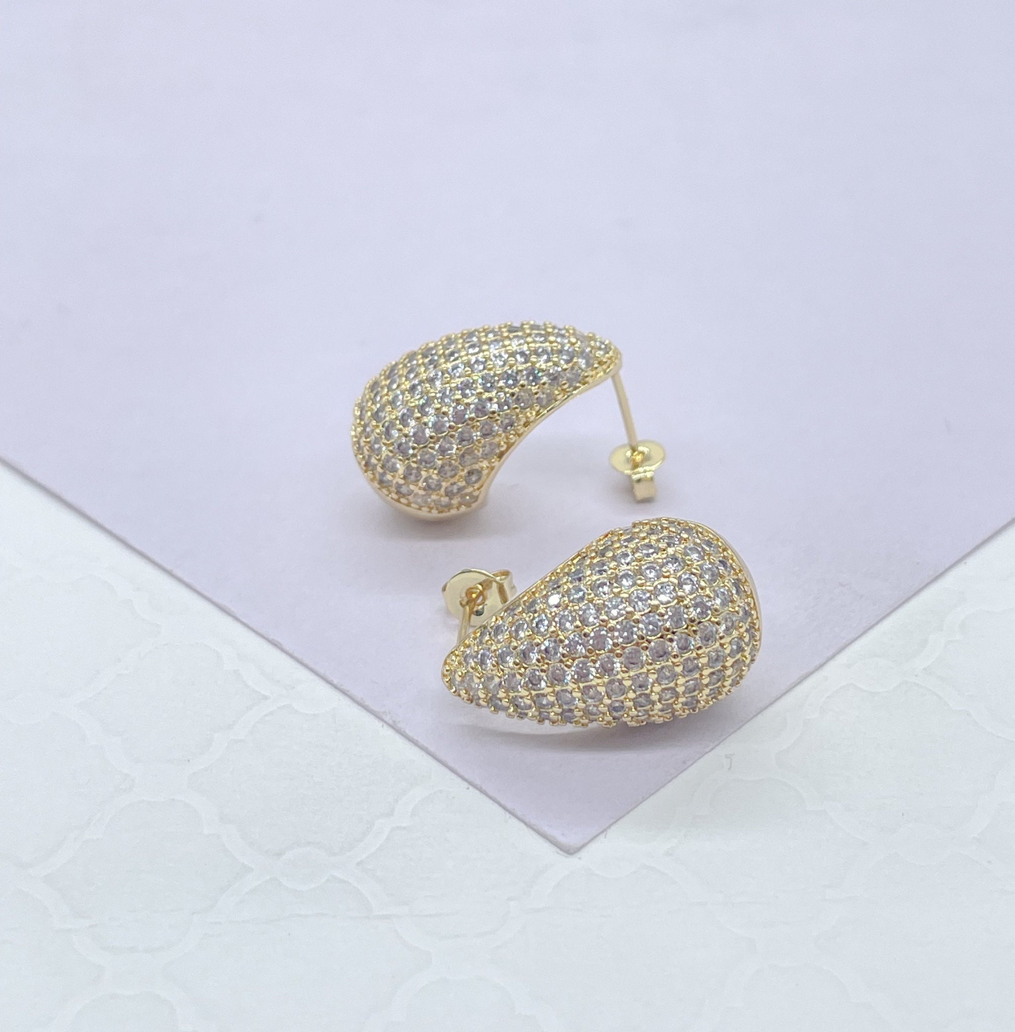18k Gold Filled Chunky Tear Drop Earring Covered in Pave CZ Stones,