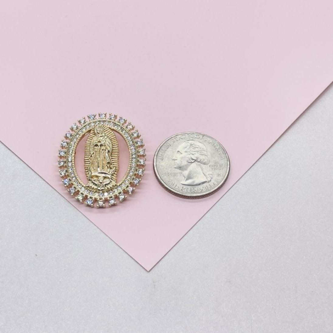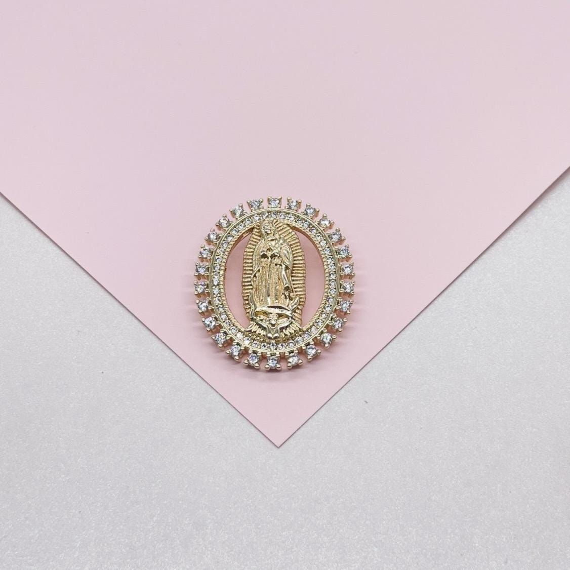 18k Gold Filled Cut Out Virgin Mary Pendant Crowned with CZ Pave