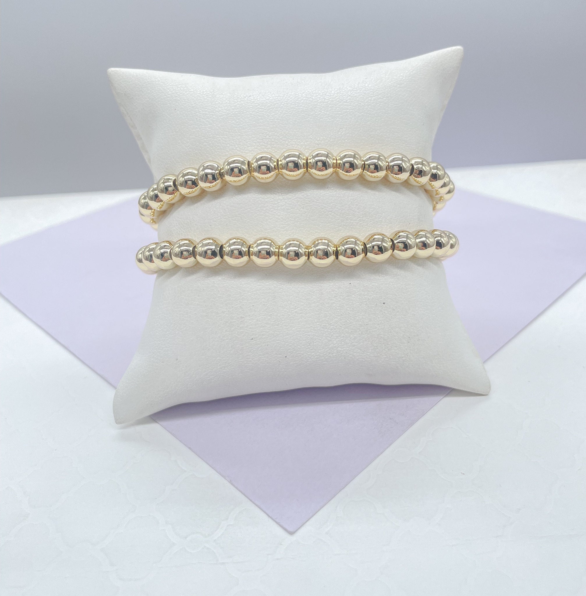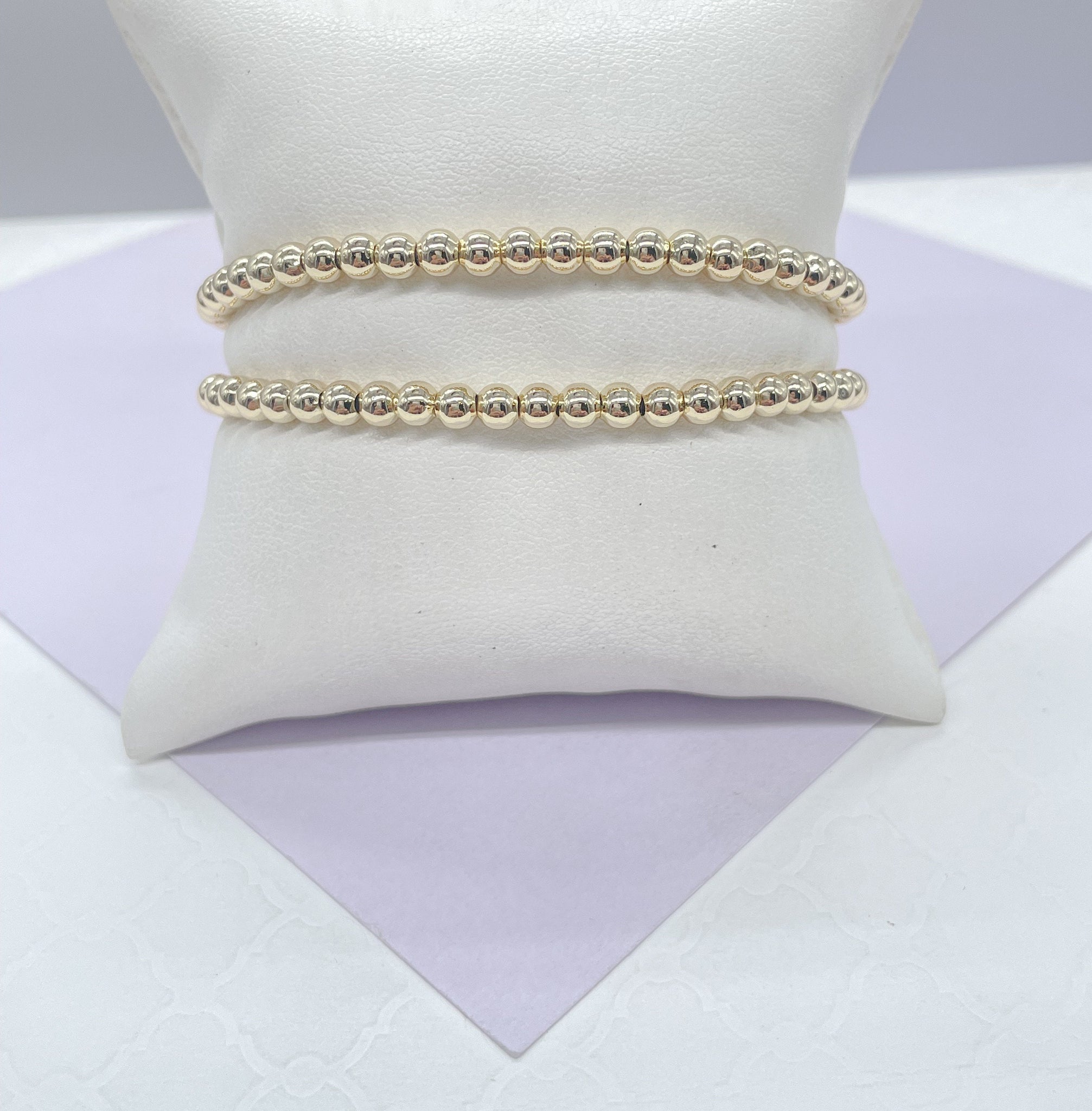 18k Gold Filled Elastic Beaded Bracelet Available in 3 Sizes