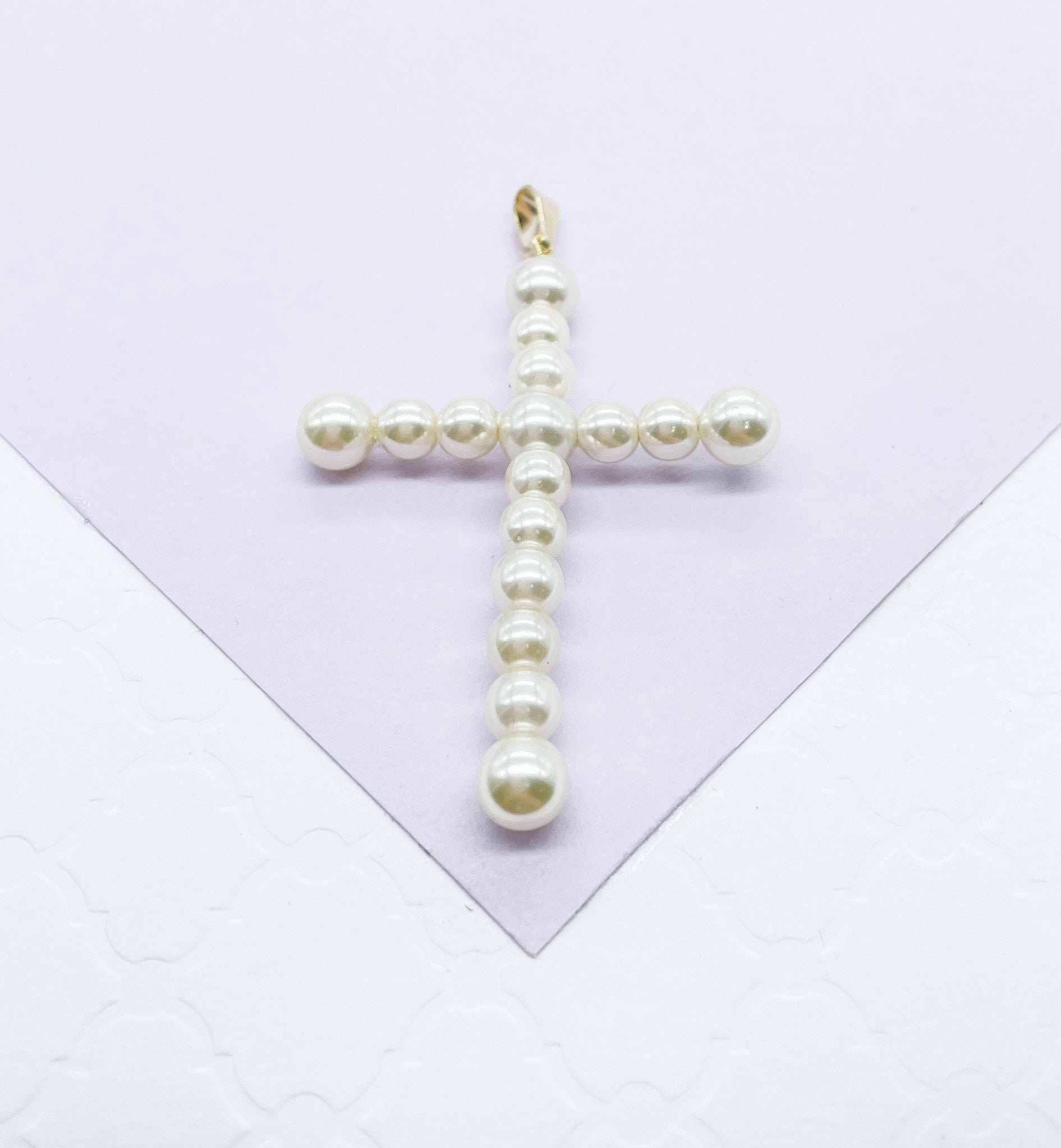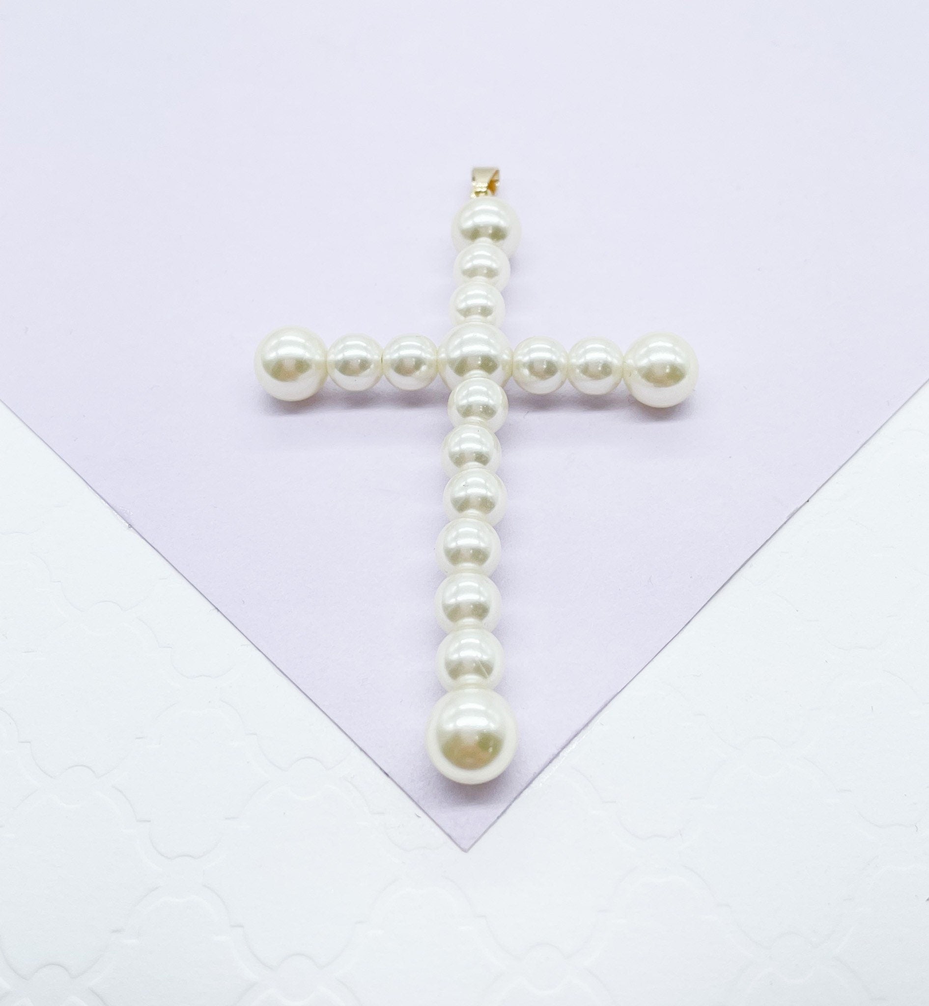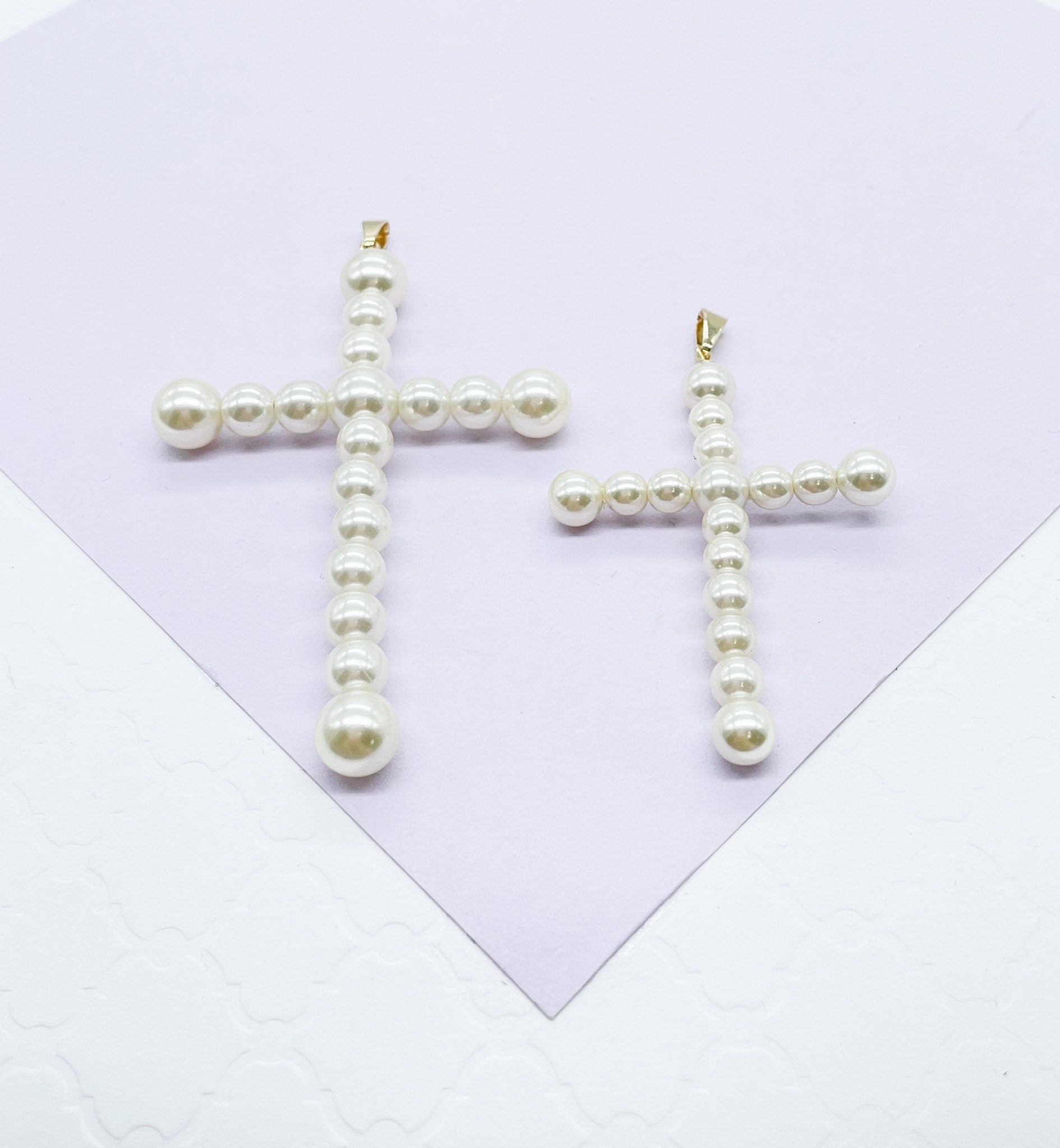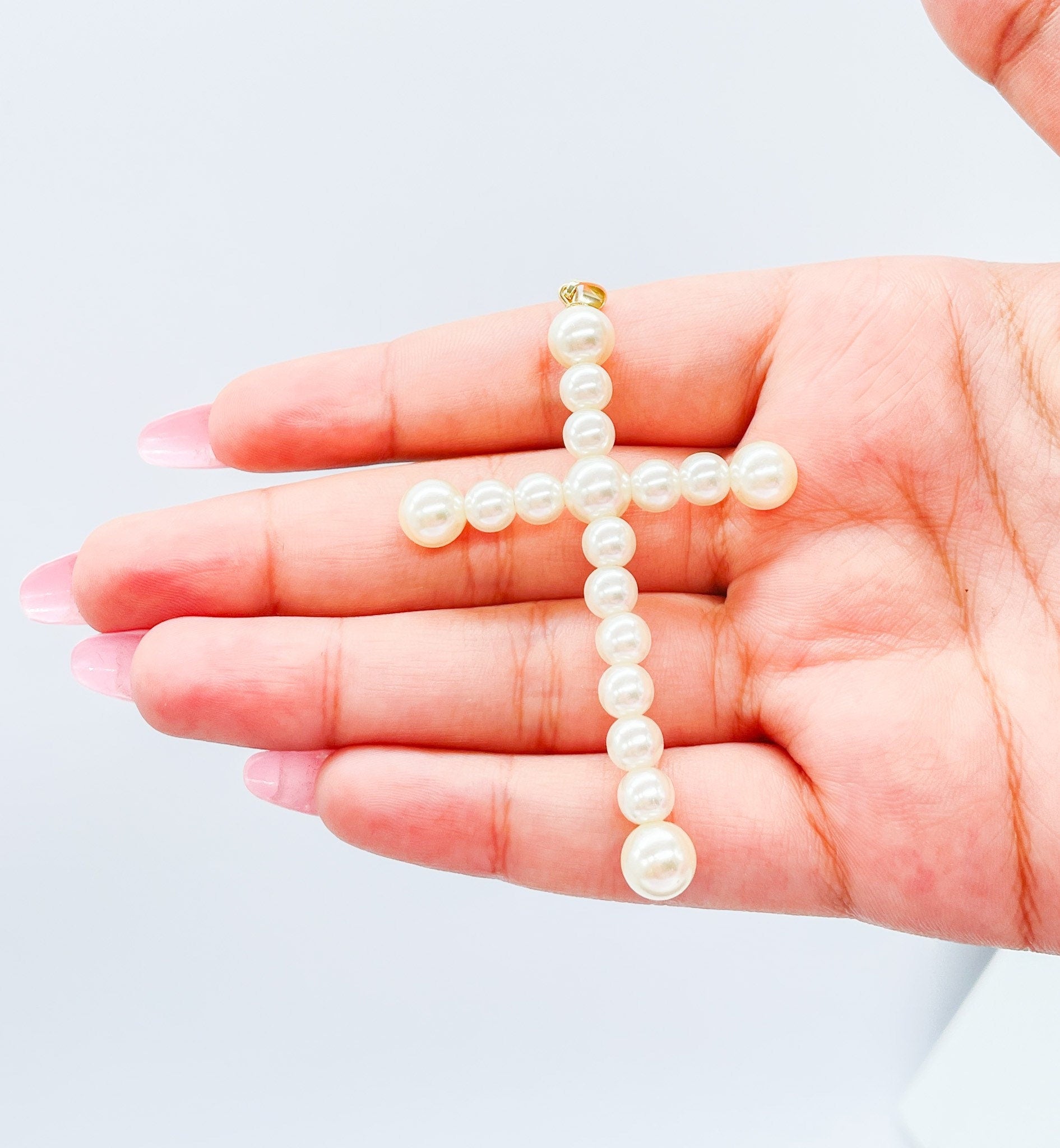 Great quality Korean pearls cross, featuring two sizes to make a statement on your outfit.