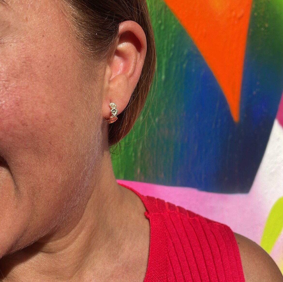 • Load image into Gallery viewer, 18k Gold Filled Flower Engraved Huggie Earrings